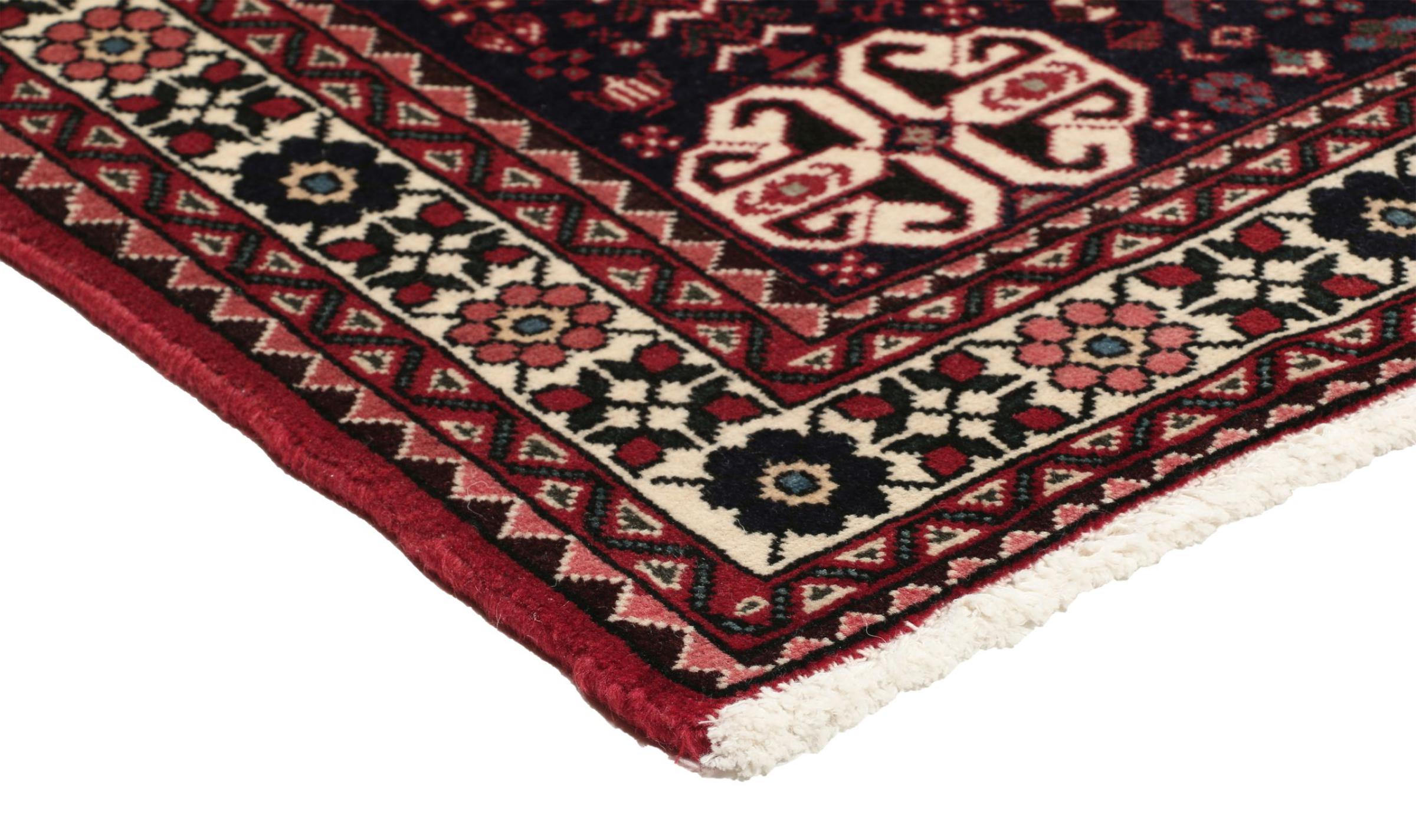 Dit tapijt behoort tot de dorps- en nomadentapijten uit Iran, het vroegere Perzië. Dit type tapijt wordt met de hand geknoopt in kleinere steden en dorpen in de oude traditie. Zelfs nomaden knopen nog steeds Perzische tapijten in de open lucht. De tapijten worden geknoopt zonder patroon en volledig vanaf de kop. Ze worden gekenmerkt door klassieke ornamenten, die in rechte en geometrische patronen zijn gerangschikt. Dankzij hun cultureel-traditionele oorsprong hebben deze tapijten een uniek karakter dat het oude Perzië belichaamt.