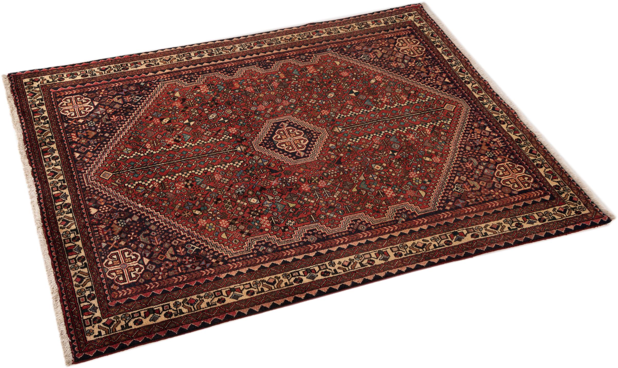 Tapijt ID: 298885005138 Grootte: 166x111 cm Dikte: ap. 8 mm Knoopdichtheid: 200 000 - 250 000 / m² Verwerking: Handgeknoopte Pool: Hand gesponnen wol Schering: Katoen Oorsprong: Perzië / Iran Leeftijd: Nieuw Gewicht: ap. 6 kg Ook wel bekend als Qashqai, Gaschgai, Gashghai, Kashgai Op voorraad: Uniek - Nog maar 1 op voorraad