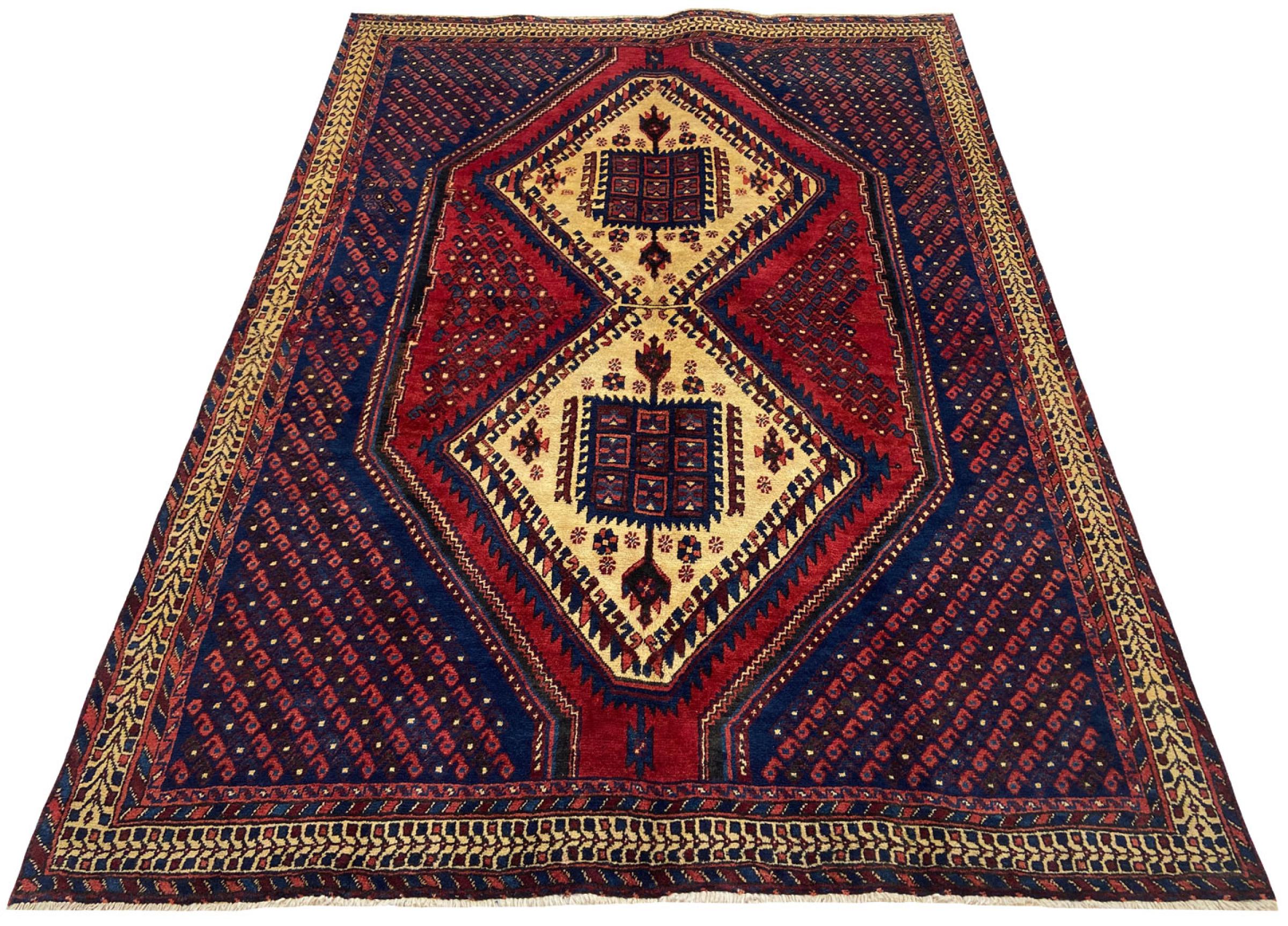 Dit tapijt geknoopt door de Afshar nomaden betovert met rode kleuren. Elke kamer krijgt een heel speciaal oosters tintje door een echt Afshar Perzisch tapijt. Het geometrische ontwerp zal elke liefhebber van Perzische tapijten overtuigen en heeft een tijdloos karakter. De wol die voor de pool is gebruikt, is van hoge kwaliteit. Tot op de dag van vandaag worden Afshar Perzische tapijten geverfd met plantaardige kleurstoffen.