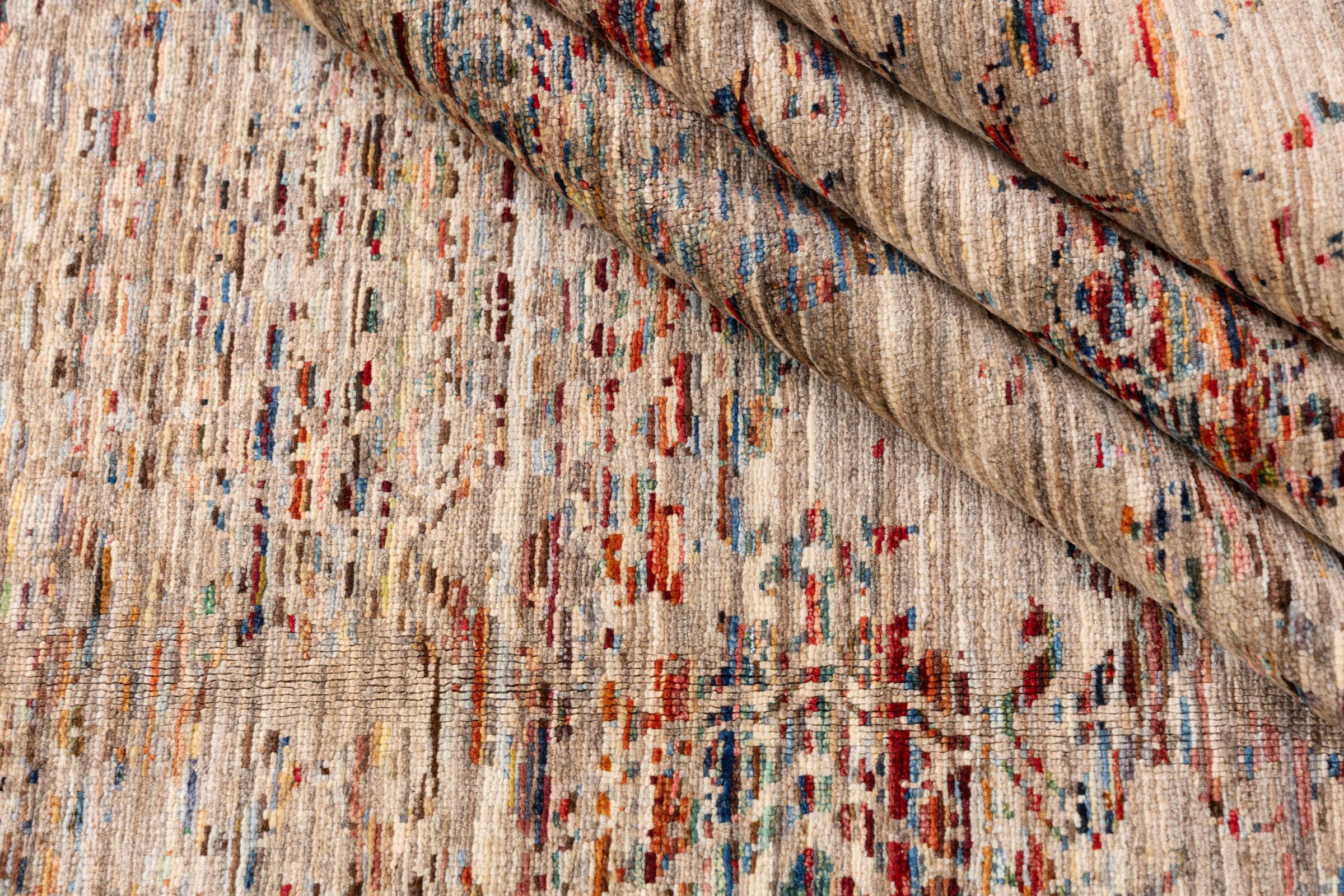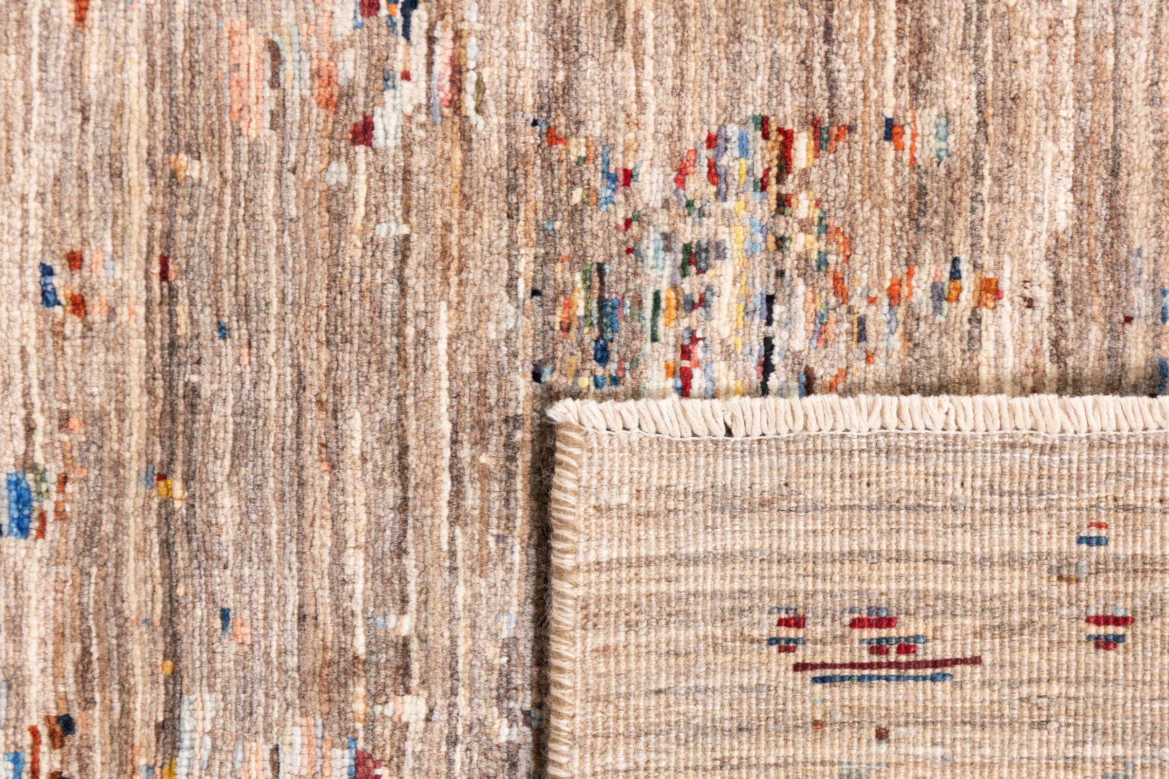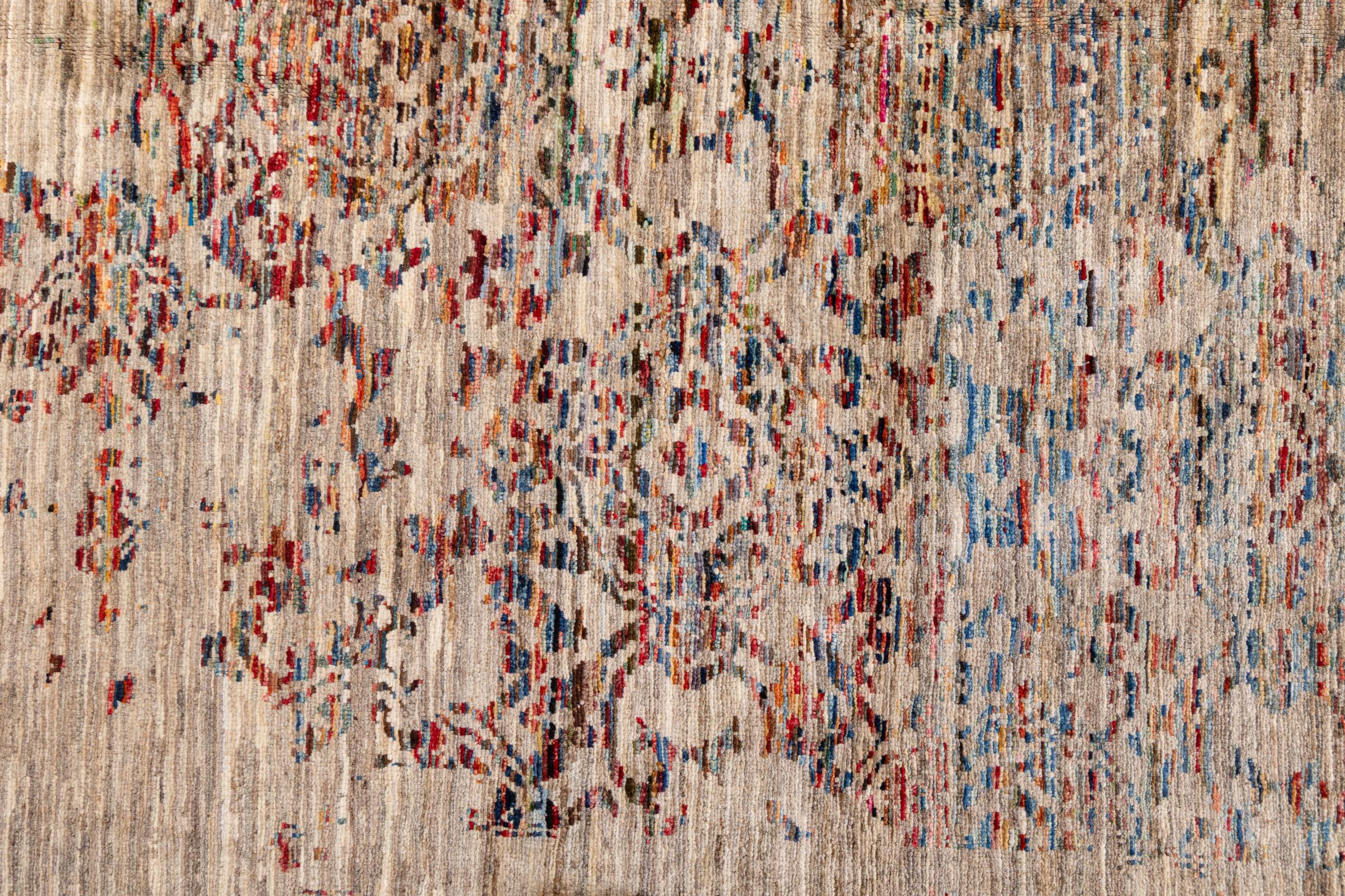 Dit tapijt is gemaakt van handgesponnen schapenwol van de hoogste kwaliteit. Vooral in Iran (voormalig Perzië), Afghanistan en Pakistan wordt de wol nog met de hand gesponnen voordat het eigenlijke knopen van het tapijt begint. Wol heeft zich door de eeuwen heen bewezen als een natuurlijk en extreem slijtvast materiaal. Het heeft onder andere vuilafstotende en warmte-isolerende eigenschappen. Tegelijkertijd is wol onvergelijkbaar zacht en heeft het een natuurlijke glans.