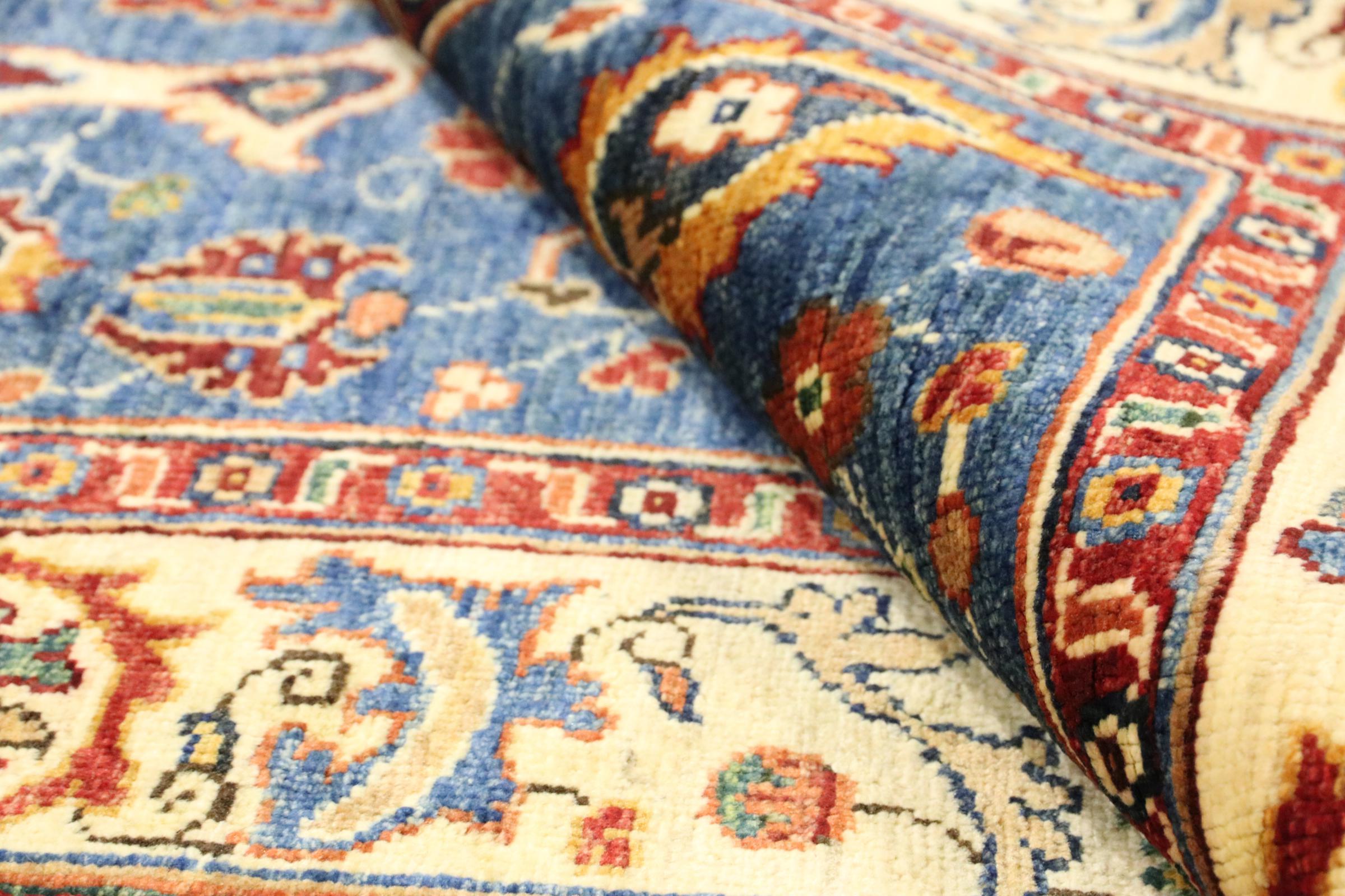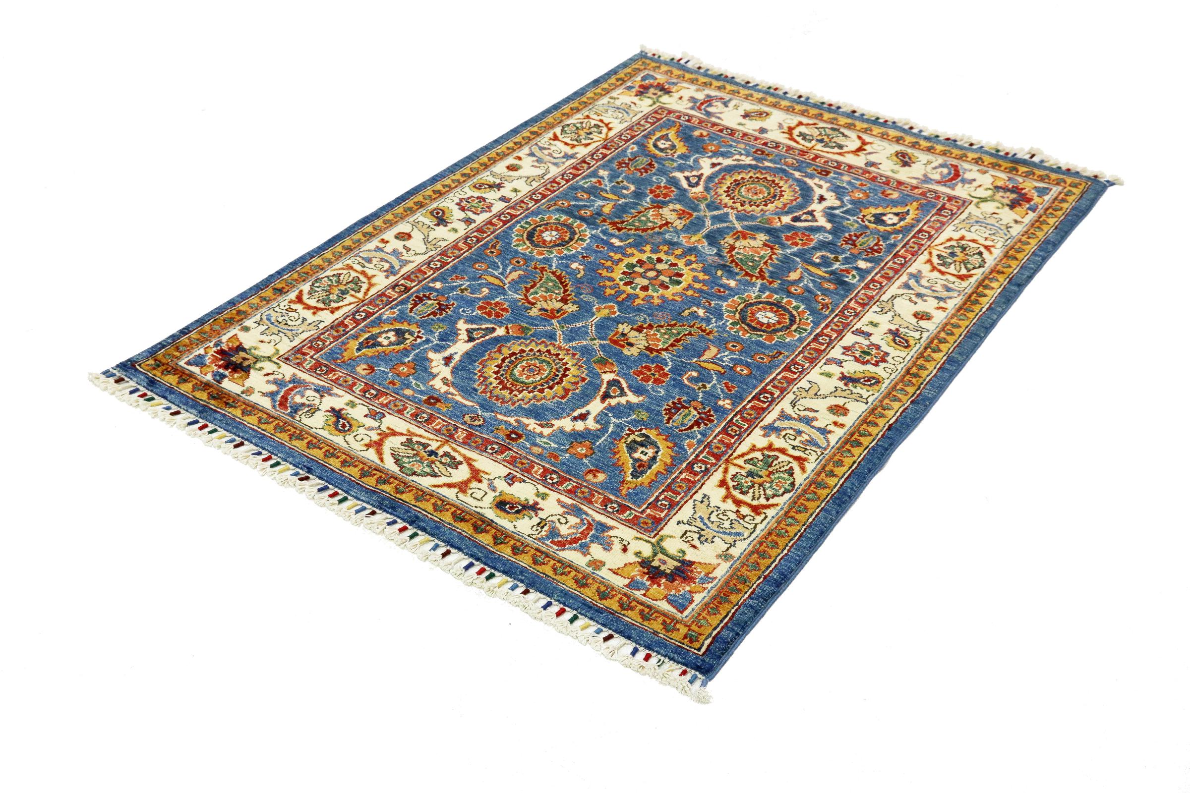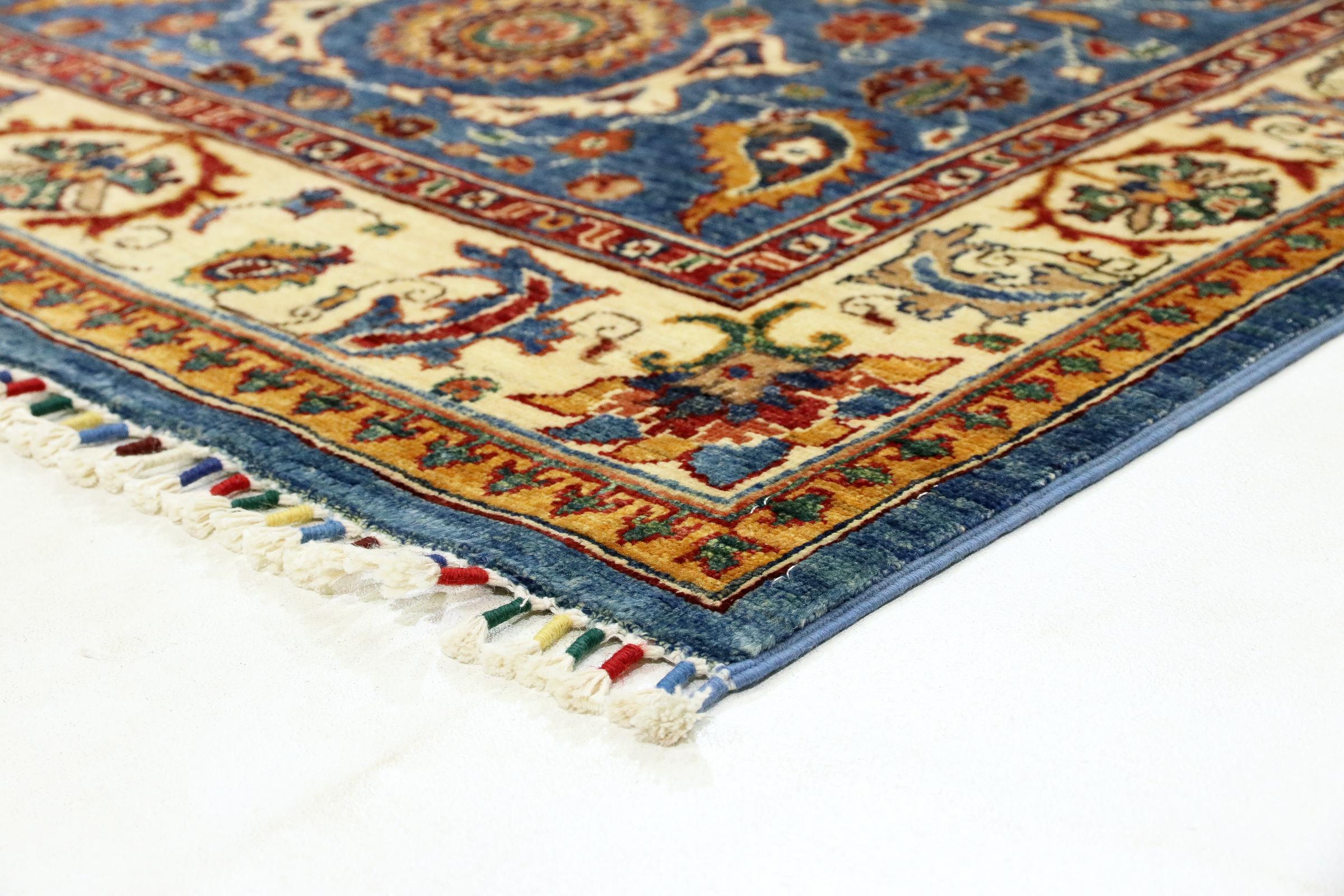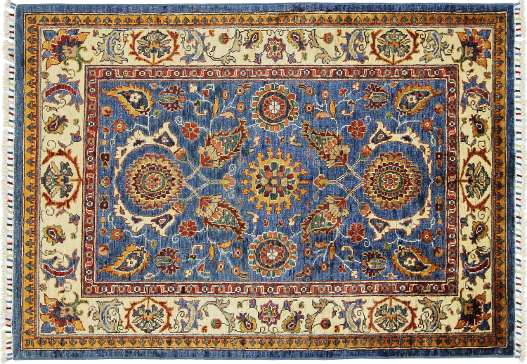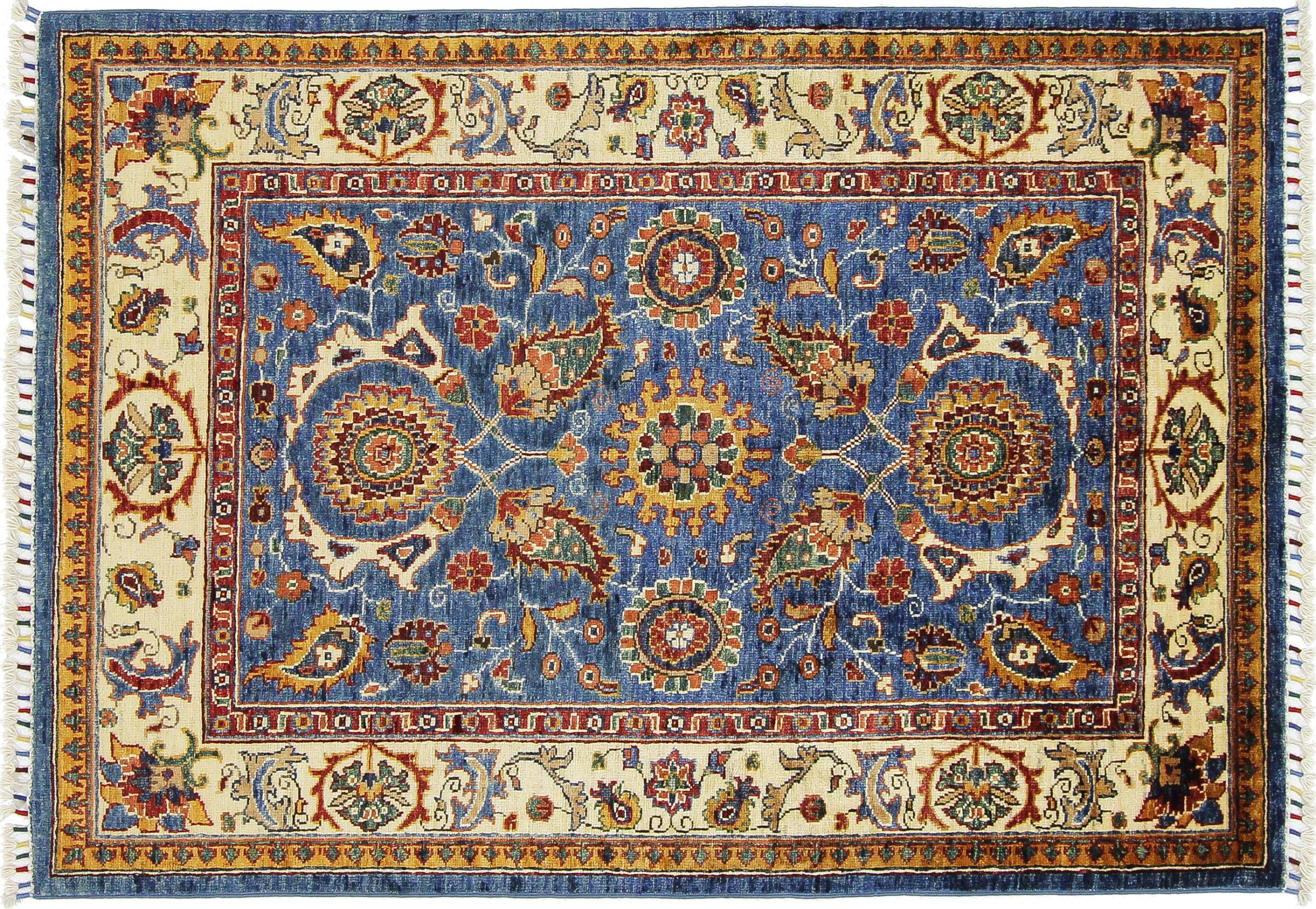Tapijt ID: 7032100118800 Grootte: 142x98 cm Dikte: ap. 5 mm Knoopdichtheid: 200 000 - 250 000 / m² Verwerking: Handgeknoopte Pool: Wol Schering: Katoen Oorsprong: Afghanistan Leeftijd: Nieuw Gewicht: ap. 5 kg Op voorraad: Uniek