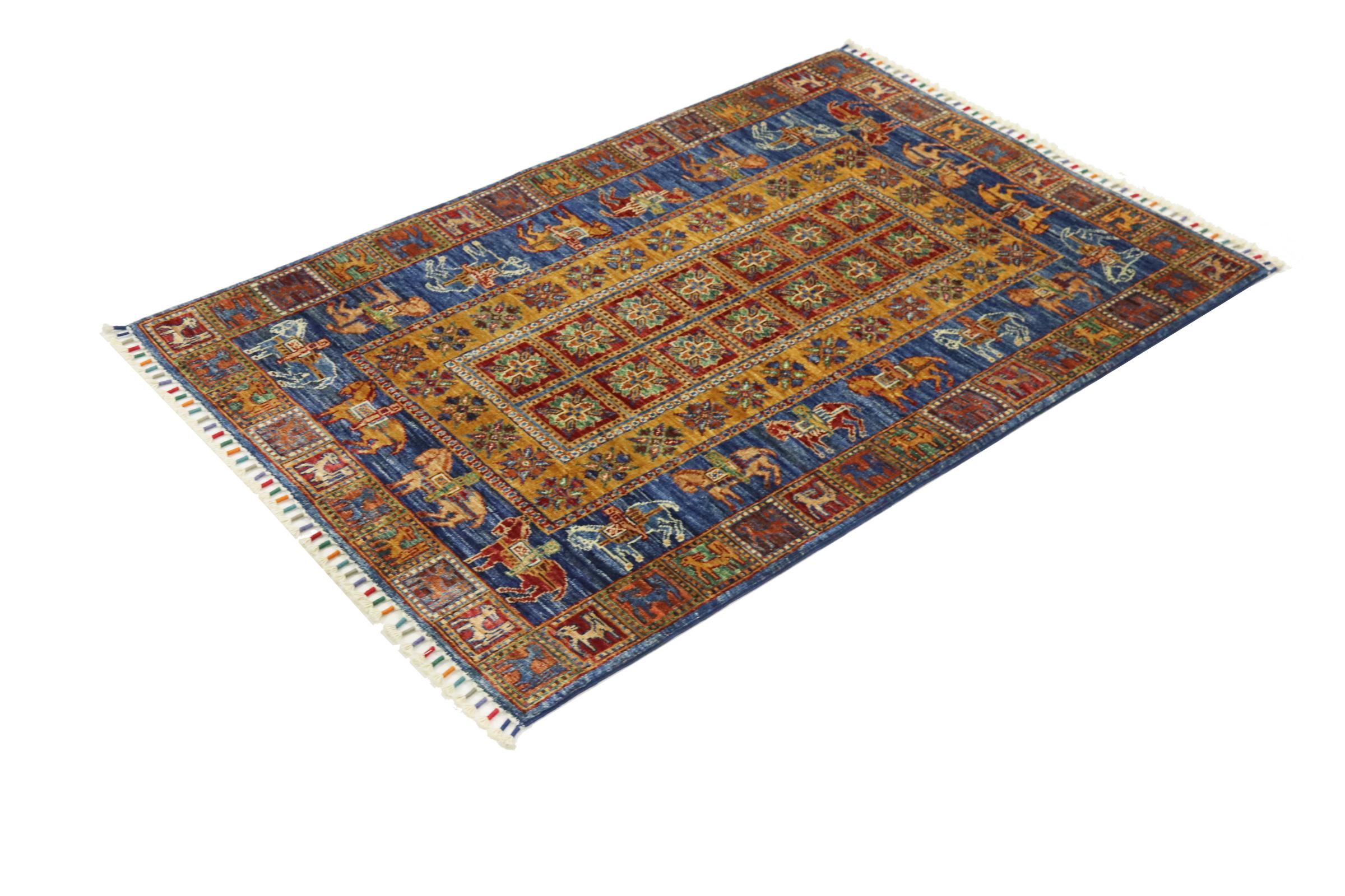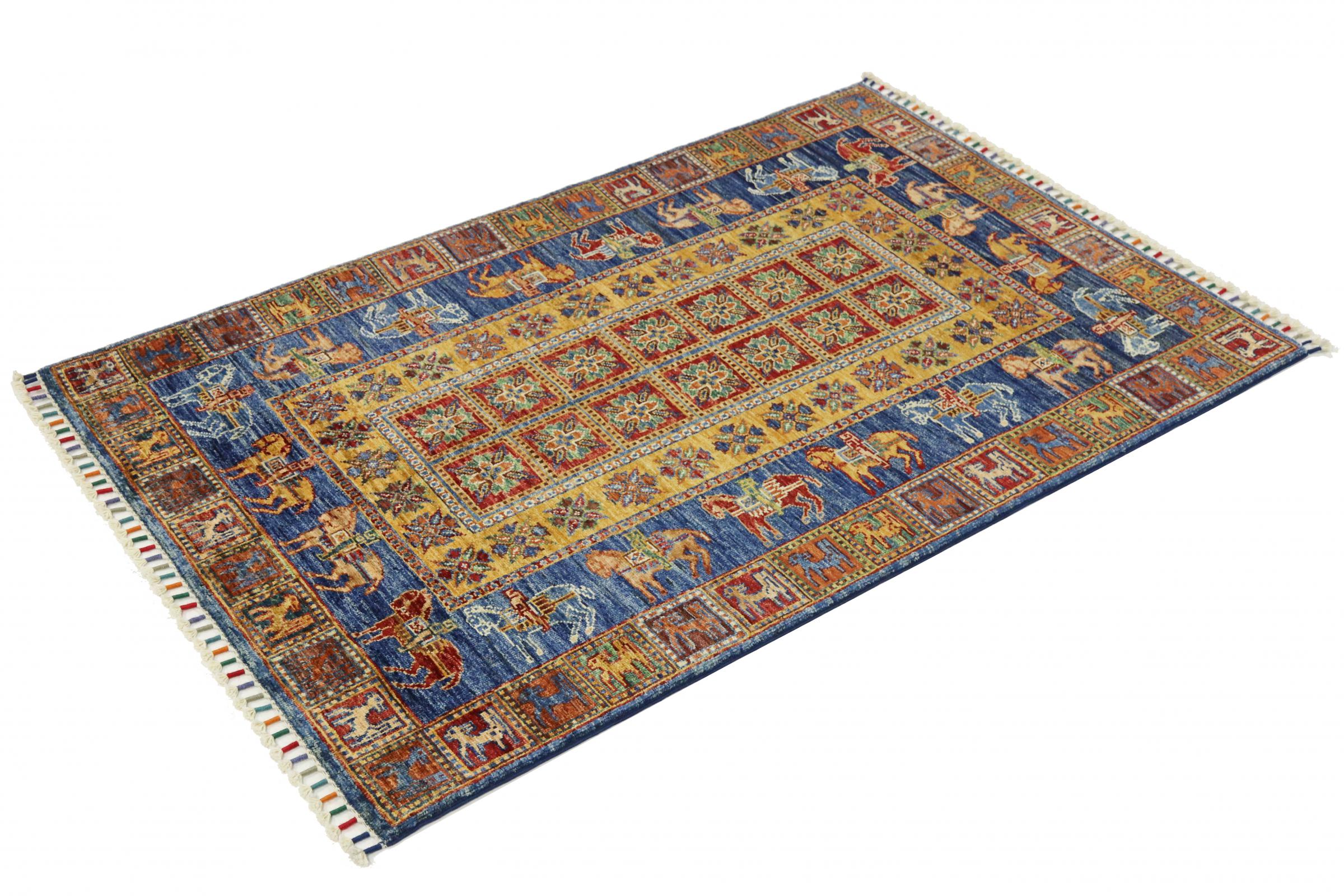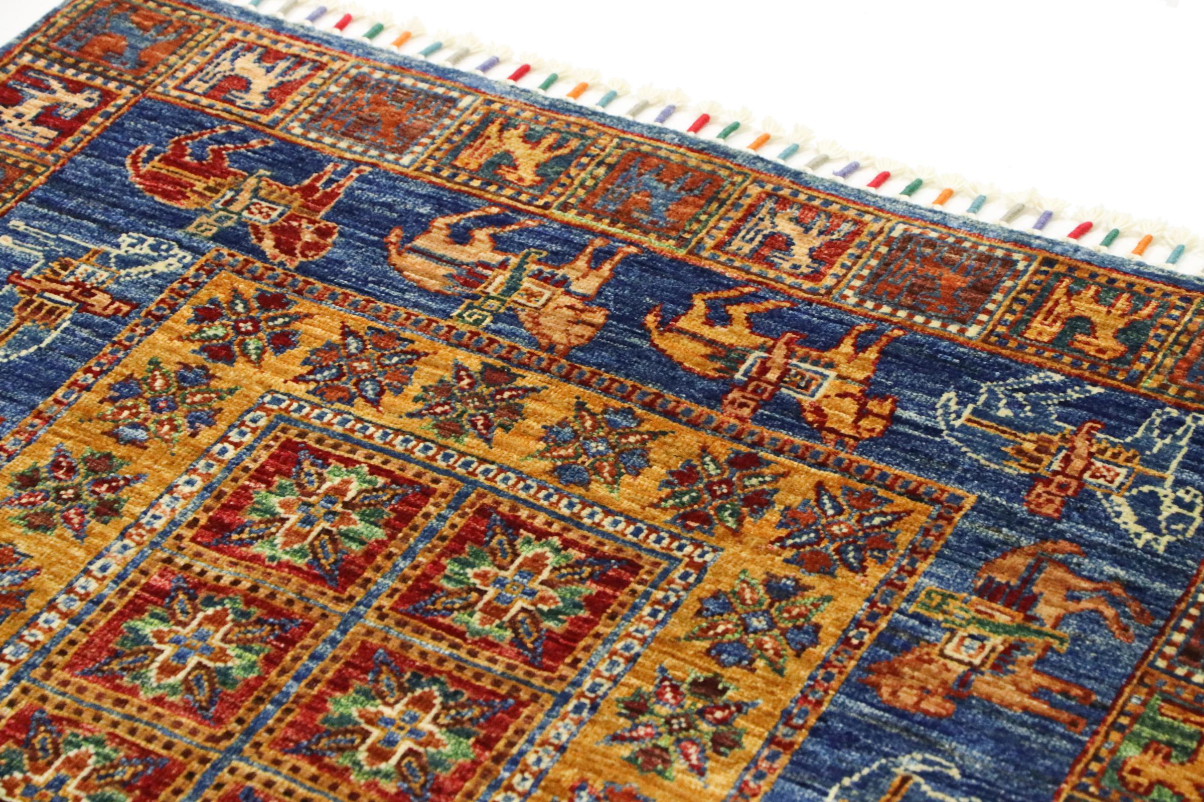 Tapijt ID: 13638000903224 Grootte: 151x97 cm Dikte: ap. 5 mm Knoopdichtheid: 160 000 - 200 000 / m² Verwerking: Handgeknoopte Pool: Wol Schering: Katoen Oorsprong: Pakistan Leeftijd: Nieuw Gewicht: ap. 5 kg Op voorraad: Uniek