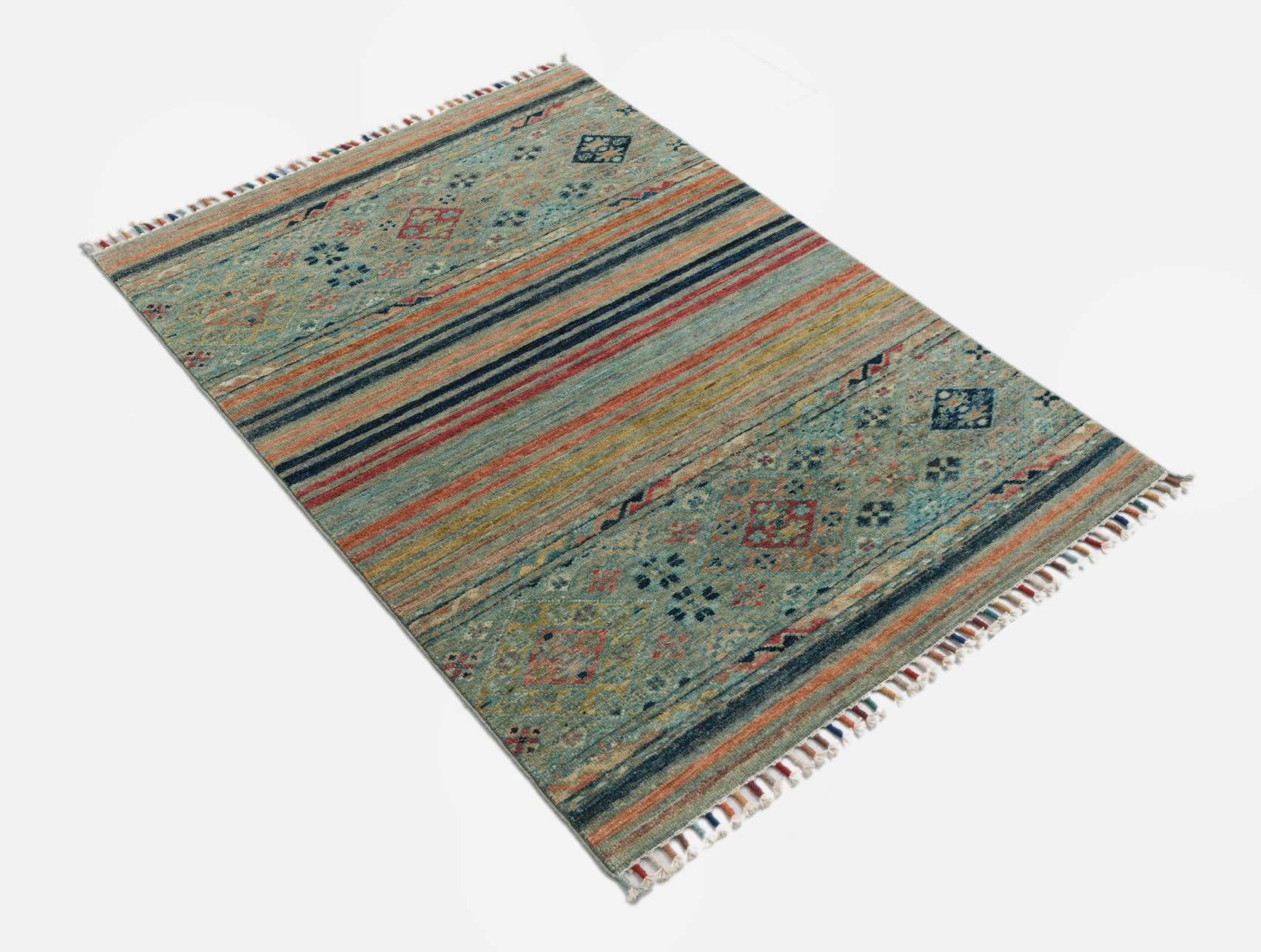 Tapijt ID: 313311006231845 Grootte: 117x84 cm Dikte: ap. 6 mm Knoopdichtheid: 128 000 - 160 000 / m² Verwerking: Handgeknoopte Pool: Hand gesponnen wol Schering: Katoen Oorsprong: Pakistan Leeftijd: Nieuw Gewicht: ap. 3 kg Op voorraad: Uniek - Nog maar 1 op voorraad