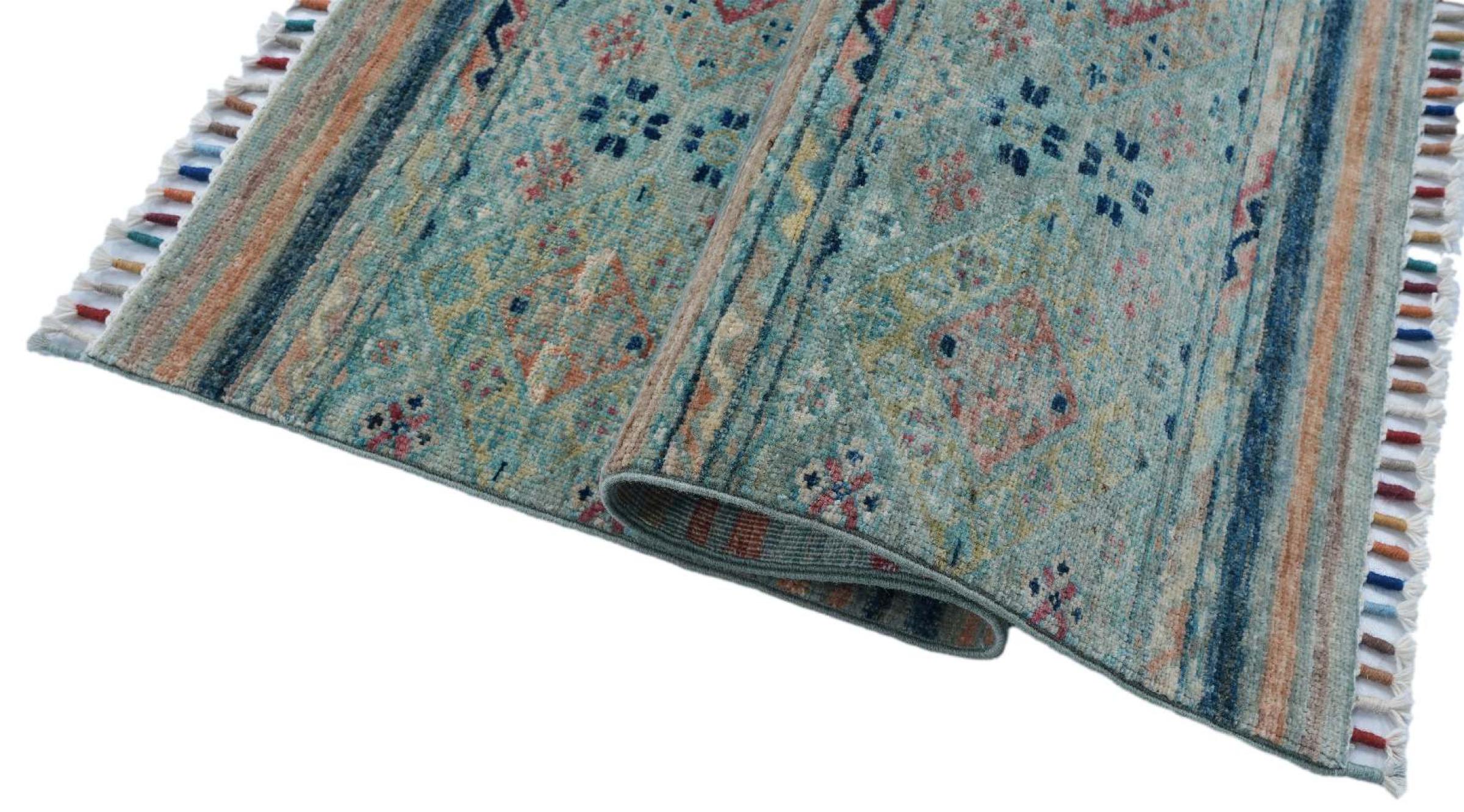 Dit tapijt is gemaakt van handgesponnen schapenwol van de hoogste kwaliteit. Vooral in Iran (voormalig Perzië), Afghanistan en Pakistan wordt de wol nog met de hand gesponnen voordat het eigenlijke knopen van het tapijt begint. Wol heeft zich door de eeuwen heen bewezen als een natuurlijk en extreem slijtvast materiaal. Het heeft onder andere vuilafstotende en warmte-isolerende eigenschappen. Tegelijkertijd is wol onvergelijkbaar zacht en heeft het een natuurlijke glans.