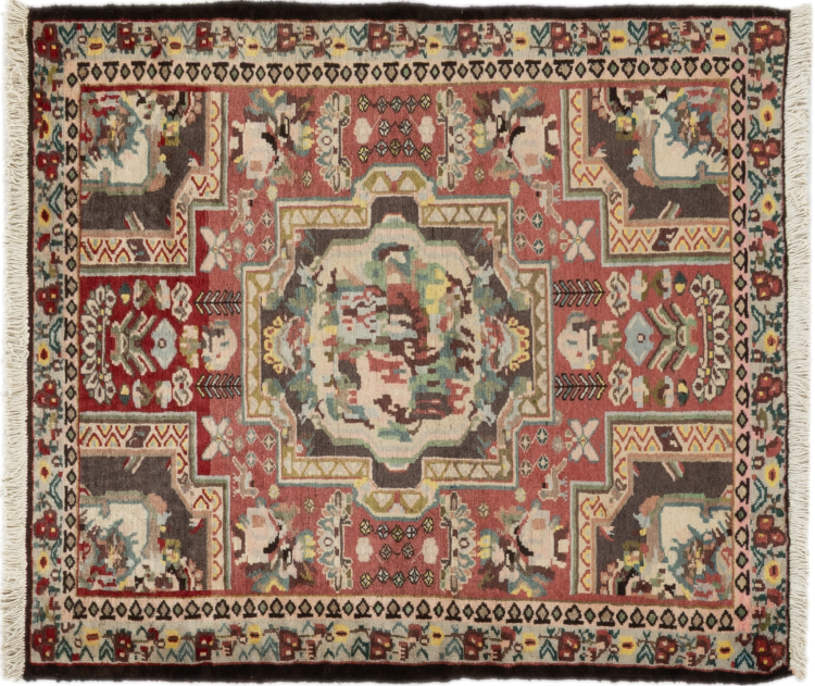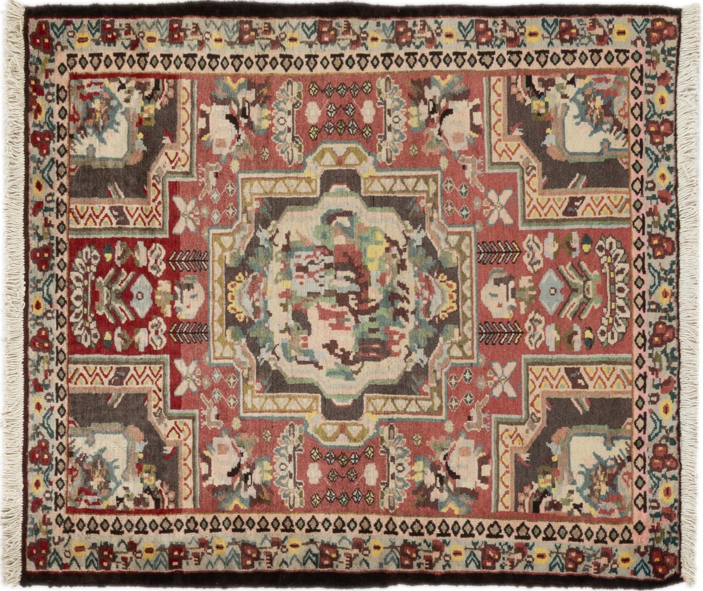 Tapijt ID: 296901002300508 Grootte: 136x113 cm Dikte: ap. 12 mm Knoopdichtheid: 128 000 - 160 000 / m² Verwerking: Handgeknoopte Pool: Wol Schering: Katoen Oorsprong: Perzië / Iran Leeftijd: 20-30 jaar (Nieuw) Gewicht: ap. 5 kg Ook wel bekend als Baktjar Op voorraad: Uniek - Nog maar 1 op voorraad