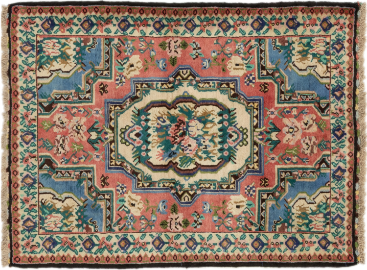 Tapijt ID: 296885008121882 Grootte: 145x112 cm Dikte: ap. 12 mm Knoopdichtheid: 128 000 - 160 000 / m² Verwerking: Handgeknoopte Pool: Wol Schering: Katoen Oorsprong: Perzië / Iran Leeftijd: 30-50 jaar (New) Gewicht: ap. 6 kg Ook wel bekend als Baktjar Op voorraad: Uniek - Nog maar 1 op voorraad