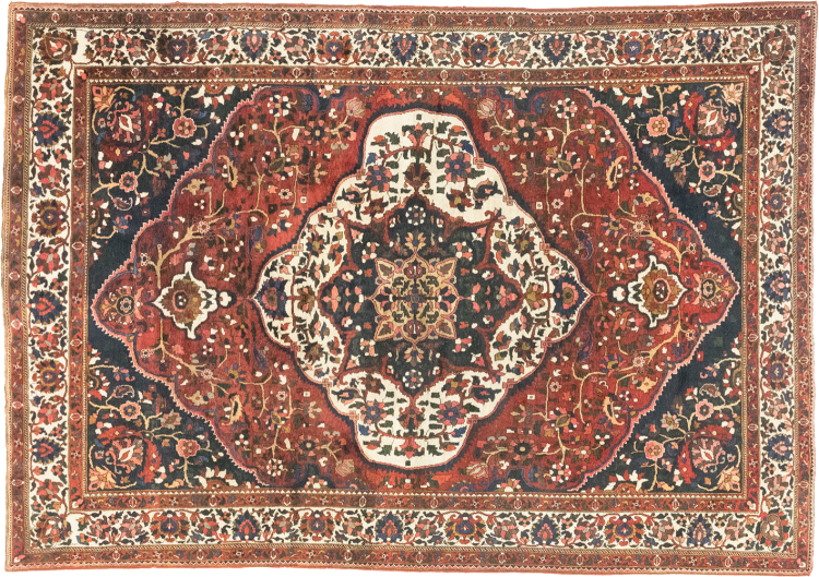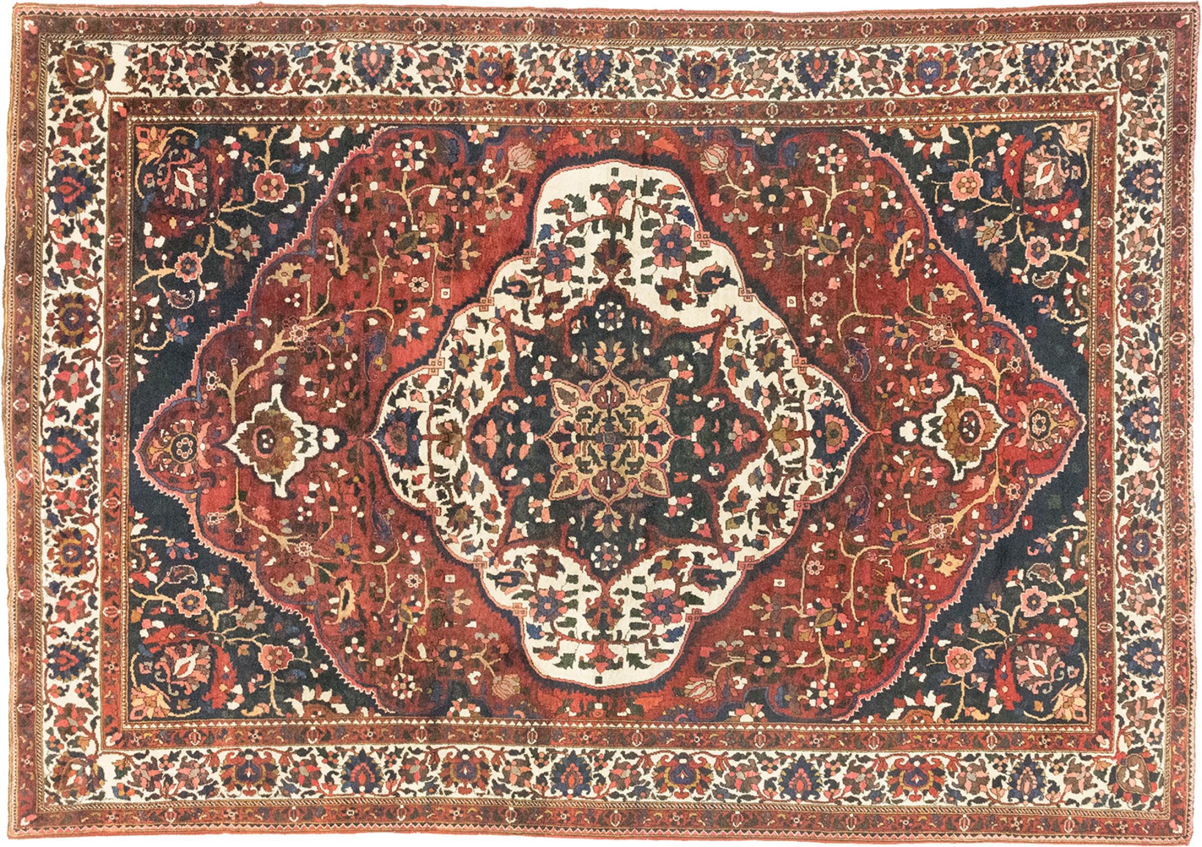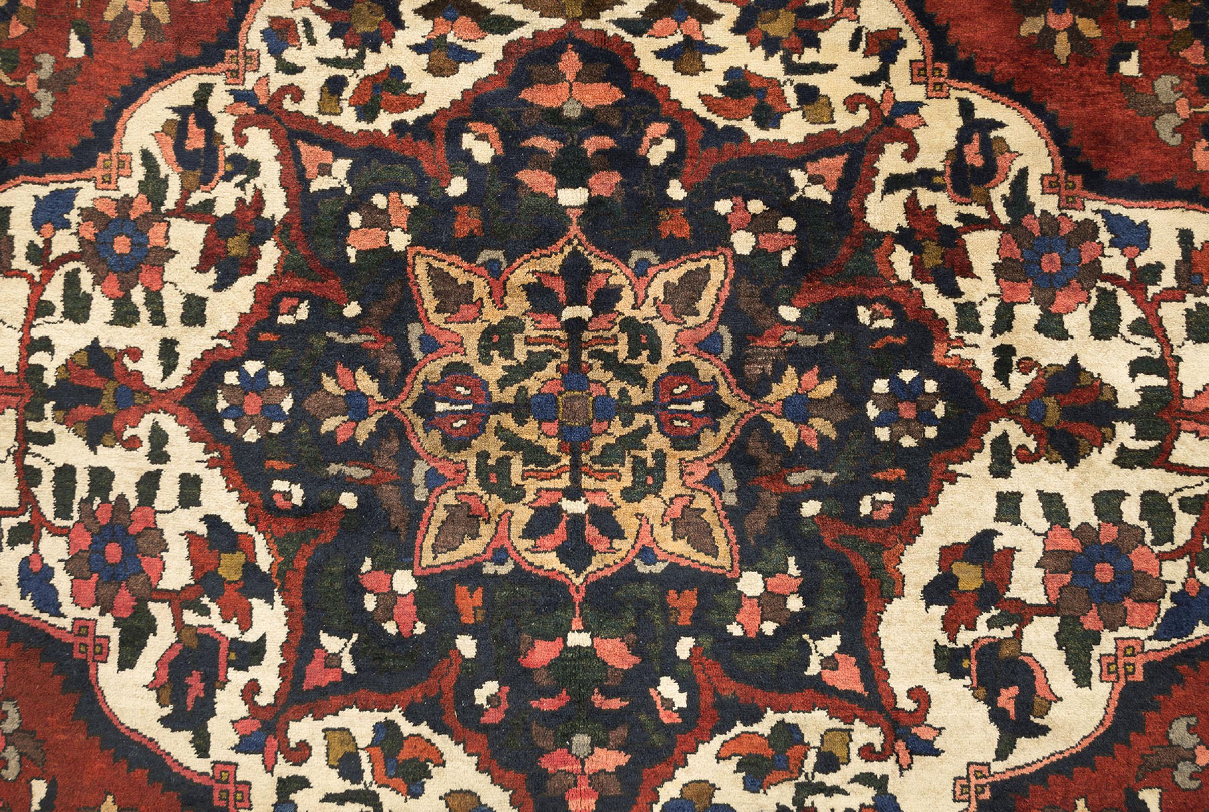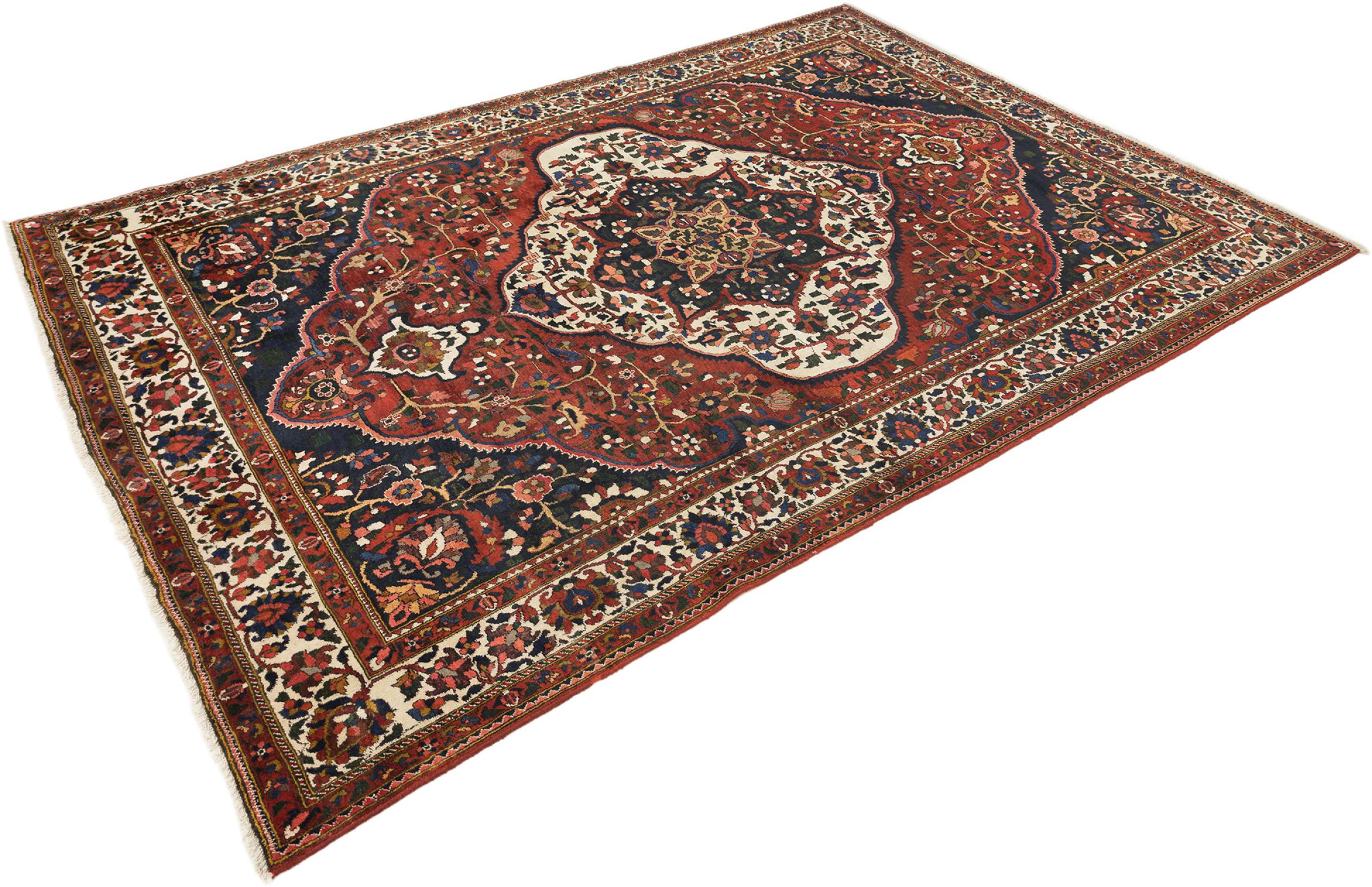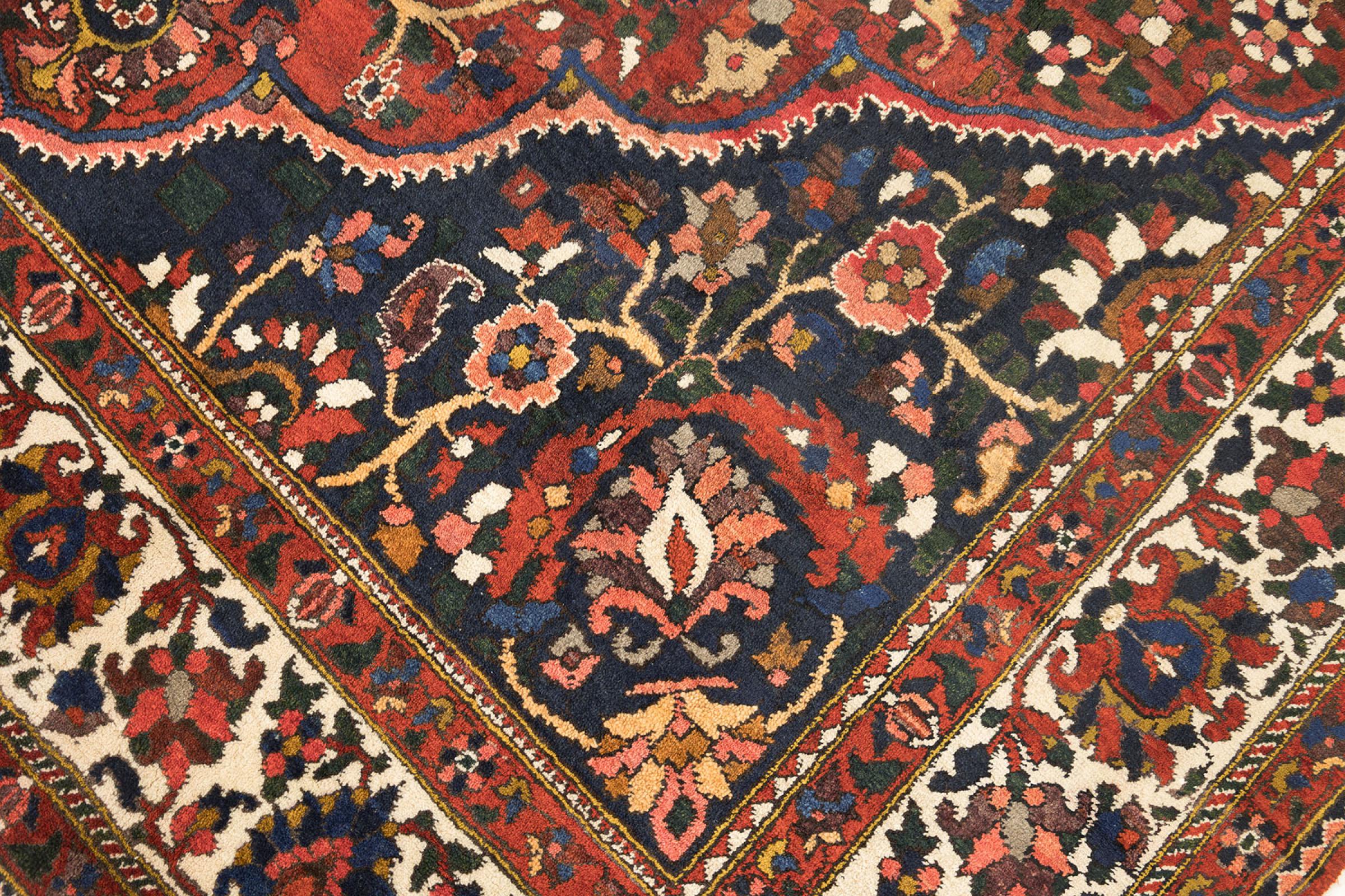Tapijt ID: 316593006120807 Grootte: 359x251 cm Dikte: ap. 12 mm Knoopdichtheid: 160 000 - 200 000 / m² Verwerking: Handgeknoopte Pool: Hand gesponnen wol Schering: Katoen Conditie / Conservering Perfect Oorsprong: Perzië / Iran Leeftijd: Antiek, boven 80 jaar Gewicht: ap. 36 kg Ook wel bekend als Baktjar Op voorraad: Uniek - Nog maar 1 op voorraad