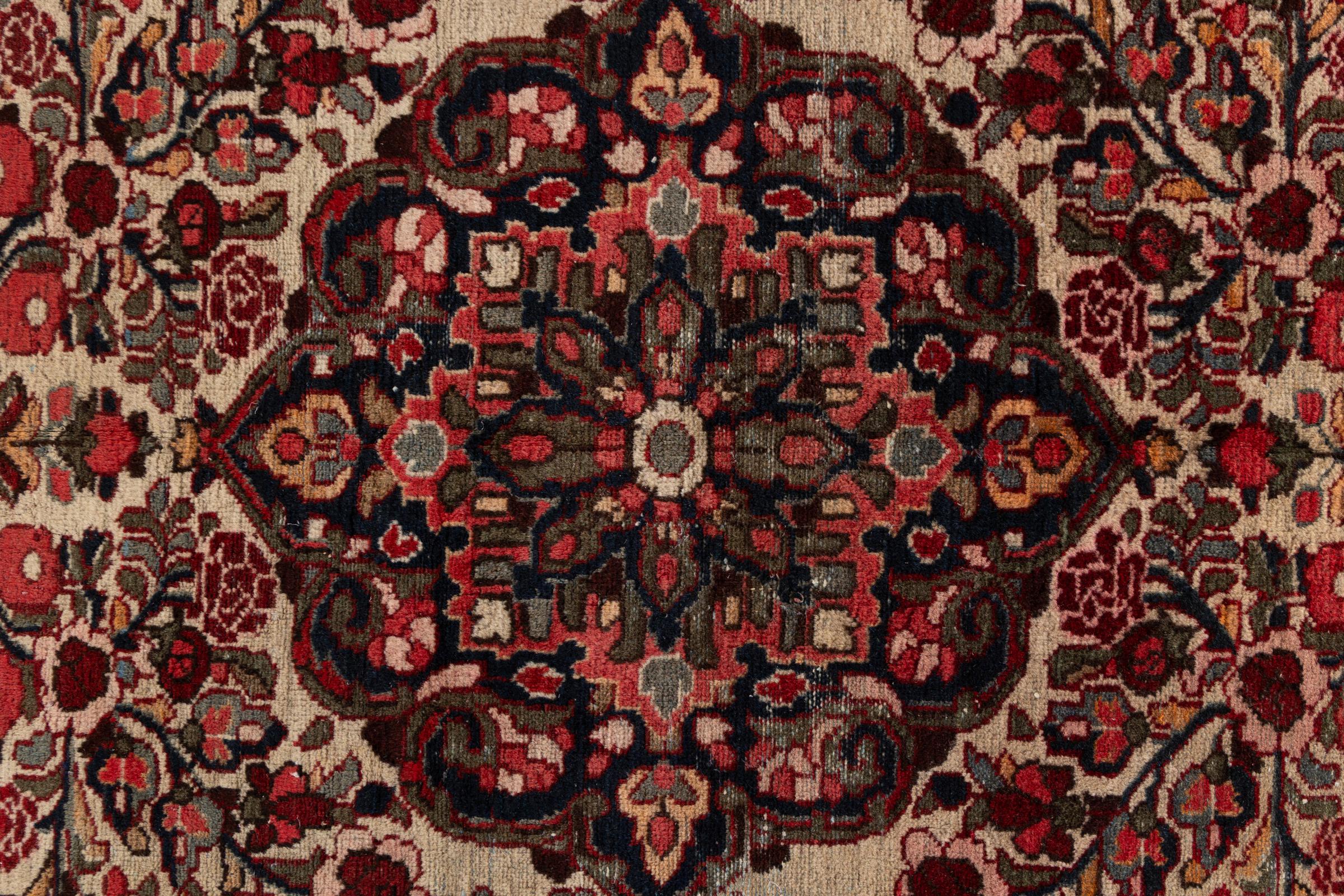 Tapijt ID: 2975420010343 Grootte: 191x152 cm Dikte: ap. 12 mm Knoopdichtheid: 128 000 - 160 000 / m² Verwerking: Handgeknoopte Pool: Hand gesponnen wol Schering: Katoen Conditie / Conservering Tapijt is zwaar en onregelmatig gerafeld Oorsprong: Perzië / Iran Leeftijd: Antiek, boven 80 jaar Gewicht: ap. 10 kg Ook wel bekend als Huseinabad Op voorraad: Uniek - Nog maar 1 op voorraad