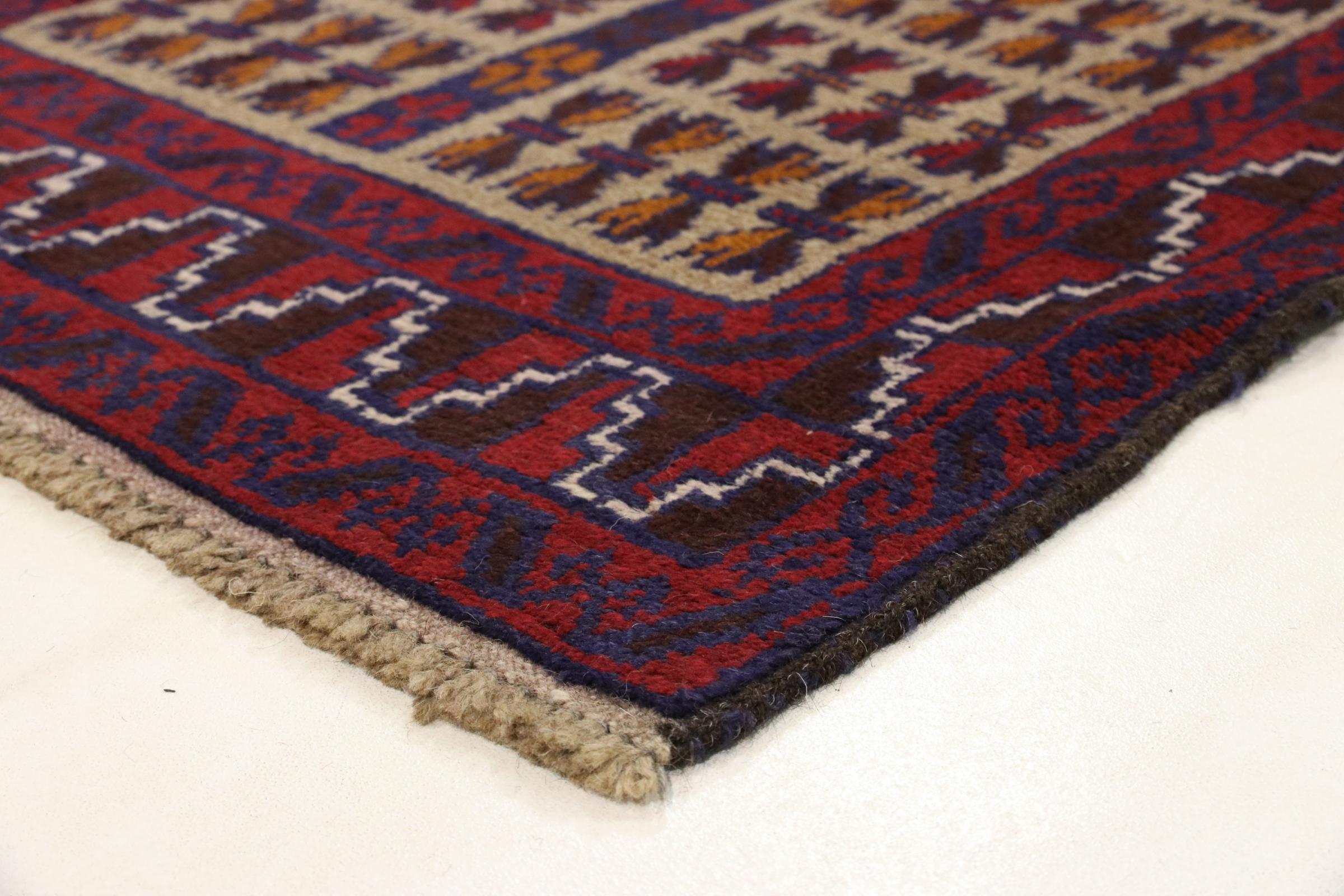 Dit Beluch tapijt is een prachtig voorbeeld van echte nomadische kunst. Dit Perzische tapijt is gemaakt in het grensgebied tussen Iran en Afghanistan en weet indruk te maken dankzij het dichte, asymmetrische weefsel. De levendige patronen maken het een lust voor het oog. De donkere tinten zijn typisch en verspreiden een aangename warmte. Het mooie natuurlijke garen straalt kwaliteit uit en maakt het extreem duurzaam. Typisch voor dit tapijt zijn de rechte patronen die het een karakteristiek nomadisch tapijt maken.