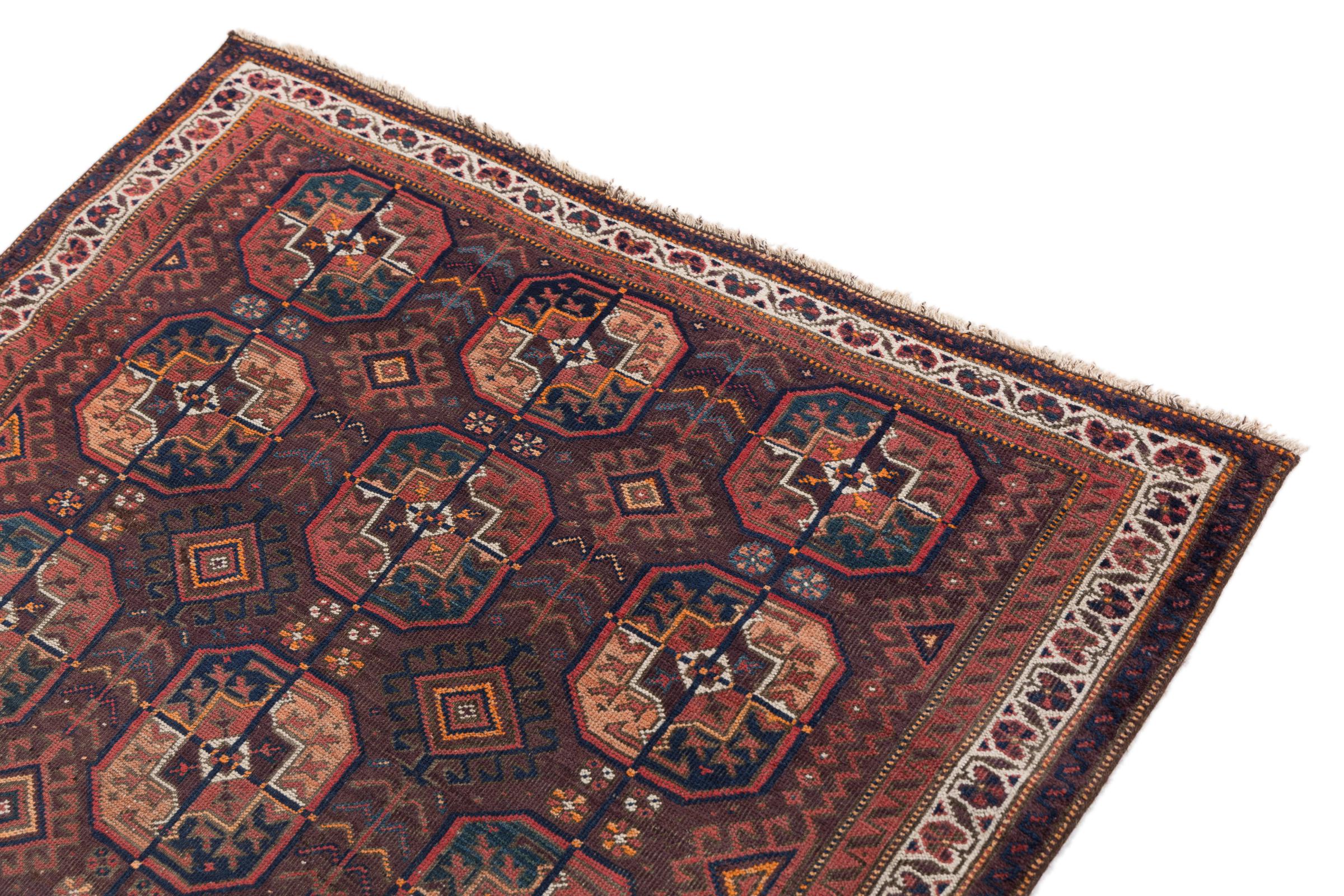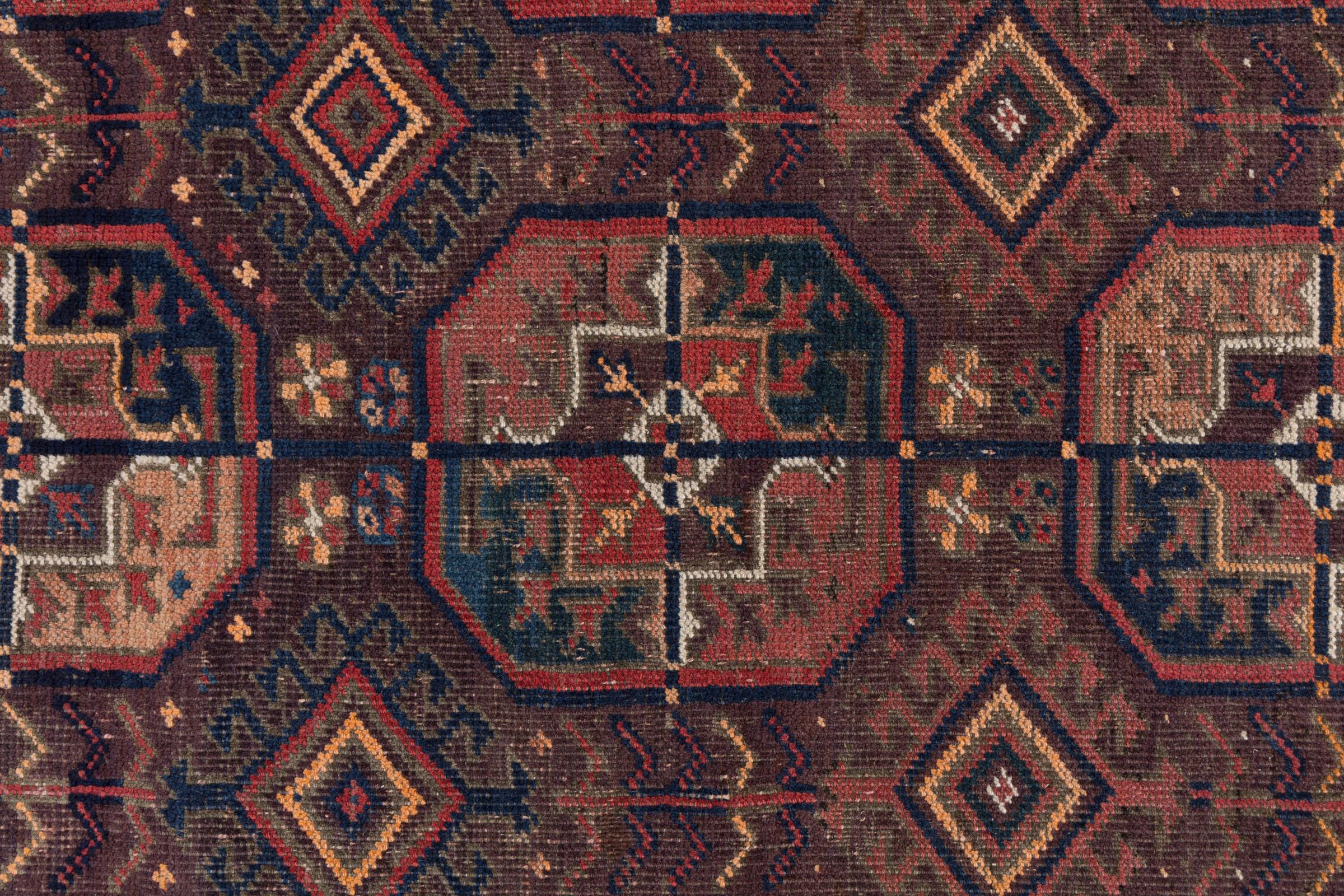 Dit Beluch tapijt is een prachtig voorbeeld van echte nomadische kunst. Dit Perzische tapijt is gemaakt in het grensgebied tussen Iran en Afghanistan en weet indruk te maken dankzij het dichte, asymmetrische weefsel. De levendige patronen maken het een lust voor het oog. De donkere tinten zijn typisch en verspreiden een aangename warmte. Het mooie natuurlijke garen straalt kwaliteit uit en maakt het extreem duurzaam. Typisch voor dit tapijt zijn de rechte patronen die het een karakteristiek nomadisch tapijt maken.