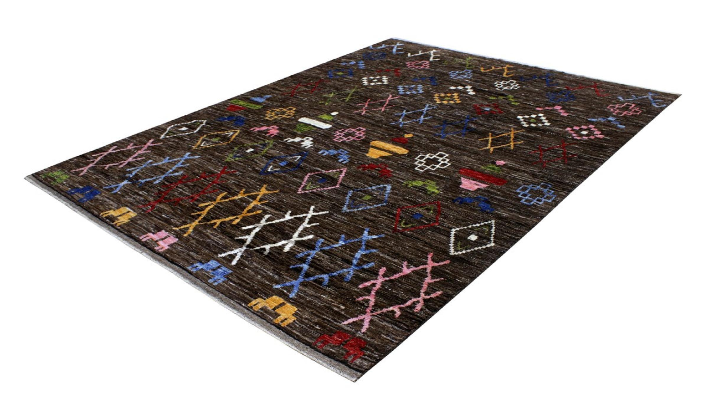 Dit Berber Ghashghai tapijt kenmerkt zich door zijn hoogwaardige wol en een dicht en bijzonder nauwkeurig weefsel. Het is daarom uitzonderlijk duurzaam en heeft een consistent stevige en toch heerlijk zachte pool. Het ontwerp inspireert elke dag met kleur en symbolische patronen.