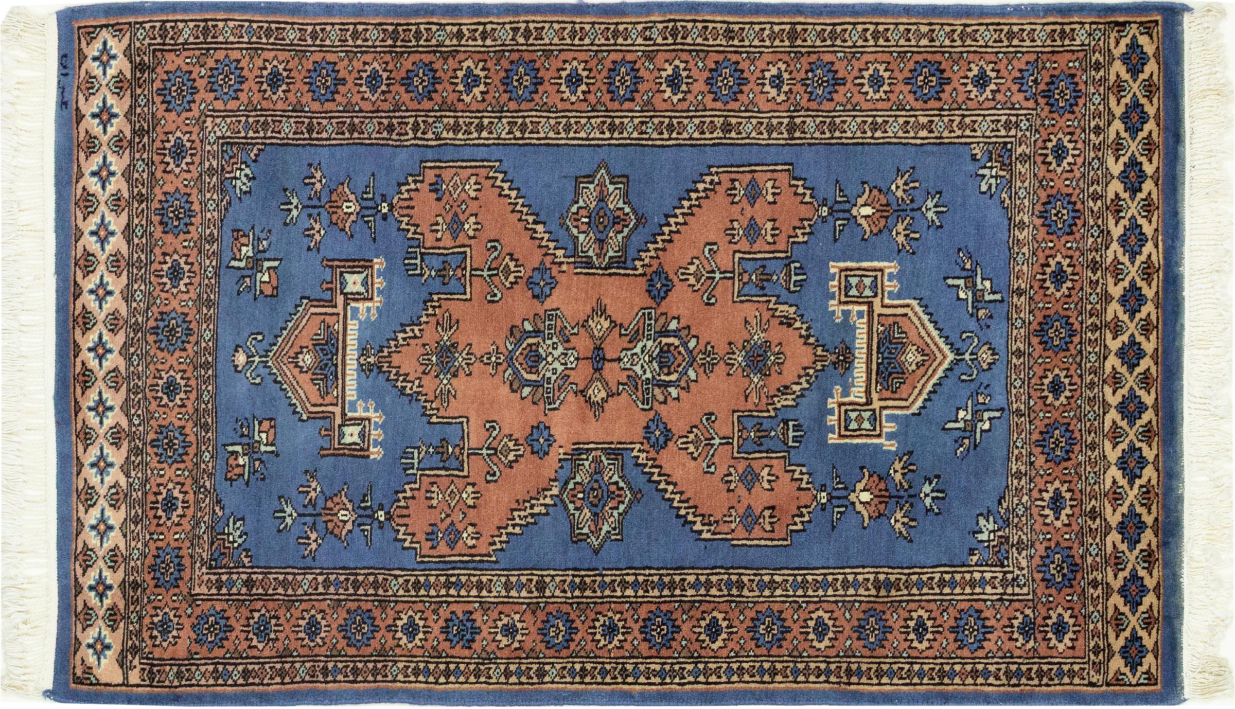 Dit tapijt is gemaakt van handgesponnen schapenwol van de hoogste kwaliteit. Vooral in Iran (voormalig Perzië), Afghanistan en Pakistan wordt de wol nog met de hand gesponnen voordat het eigenlijke knopen van het tapijt begint. Wol heeft zich door de eeuwen heen bewezen als een natuurlijk en extreem slijtvast materiaal. Het heeft onder andere vuilafstotende en warmte-isolerende eigenschappen. Tegelijkertijd is wol onvergelijkbaar zacht en heeft het een natuurlijke glans.
