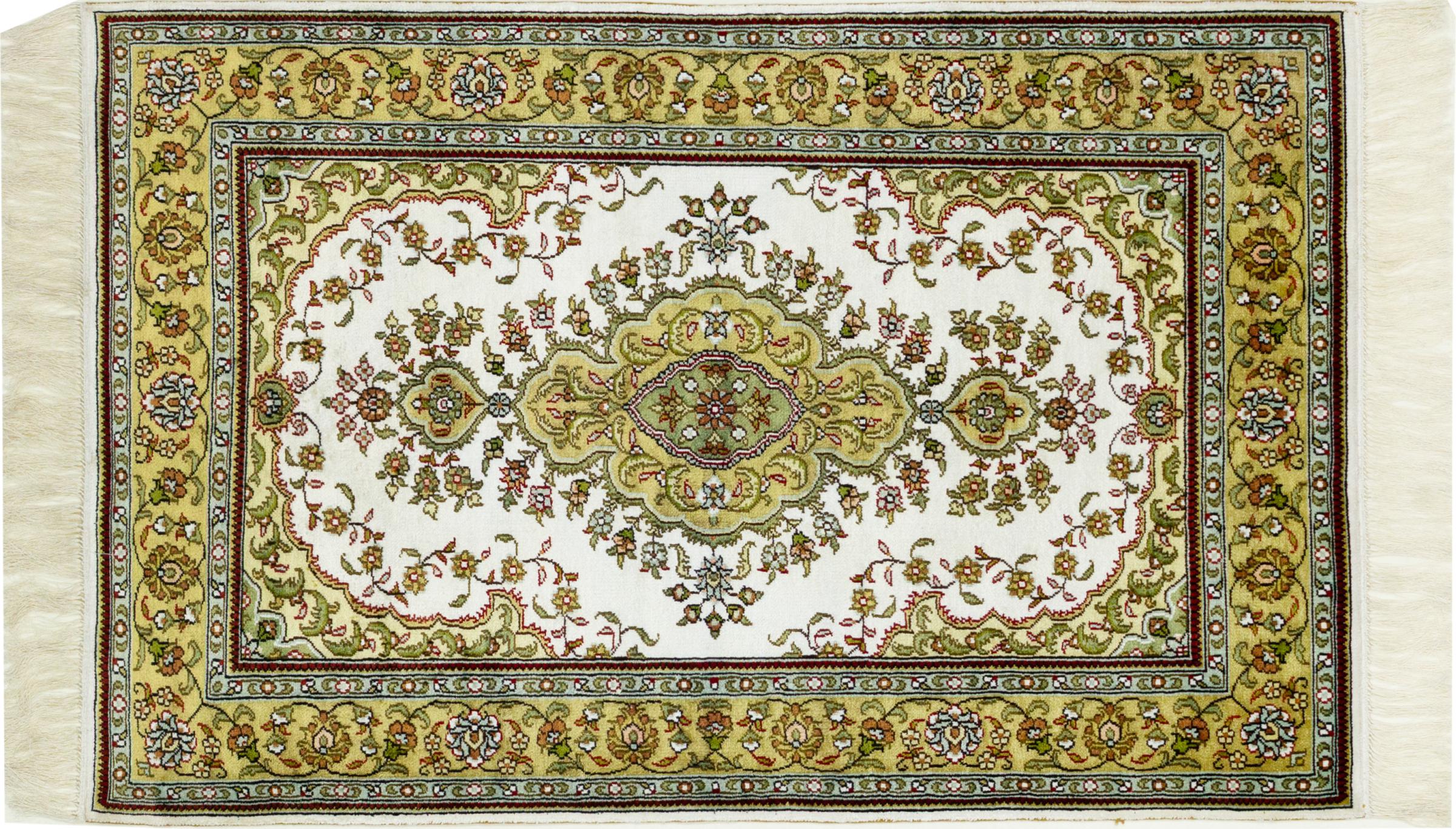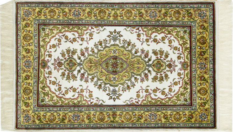 Tapijt ID: 303430002416916 Grootte: 121x77 cm Dikte: ap. 5 mm Knoopdichtheid: 440 000 - 490 000 / m² Verwerking: Handgeknoopte Pool: Zijde Schering: Zijde Oorsprong: China Leeftijd: Nieuw Gewicht: ap. 3 kg Op voorraad: Uniek - Nog maar 1 op voorraad