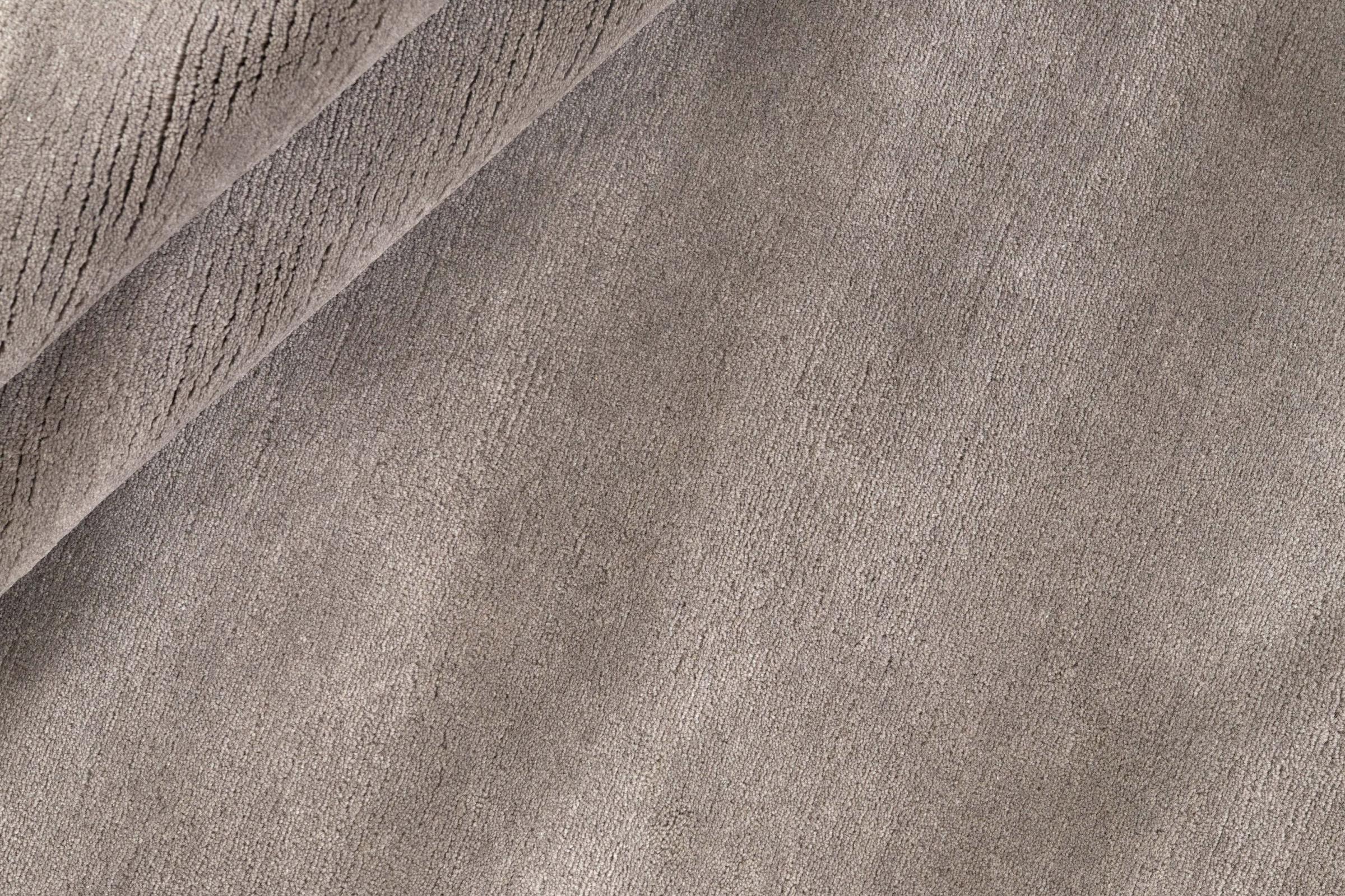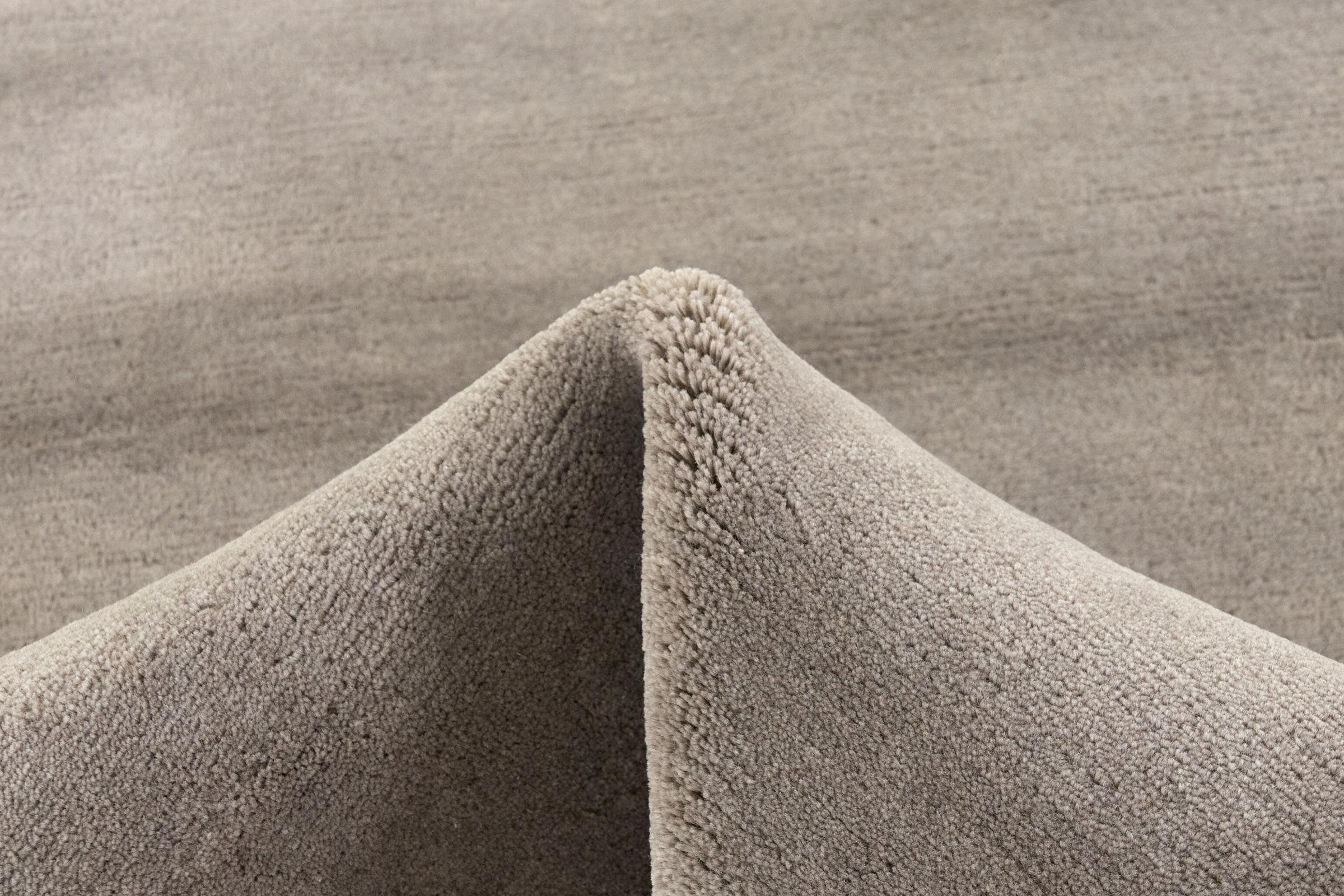 Dit originele handgeknoopte oosterse tapijt in Scandinavisch design van zuivere wol/100% hoogwaardige viscose belichaamt op prachtige wijze functionaliteit in een eenvoudige, zeer elegante vorm. Het oppervlak glinstert niet alleen deels als zijde, maar de kleur past altijd vloeiend in de kamer.