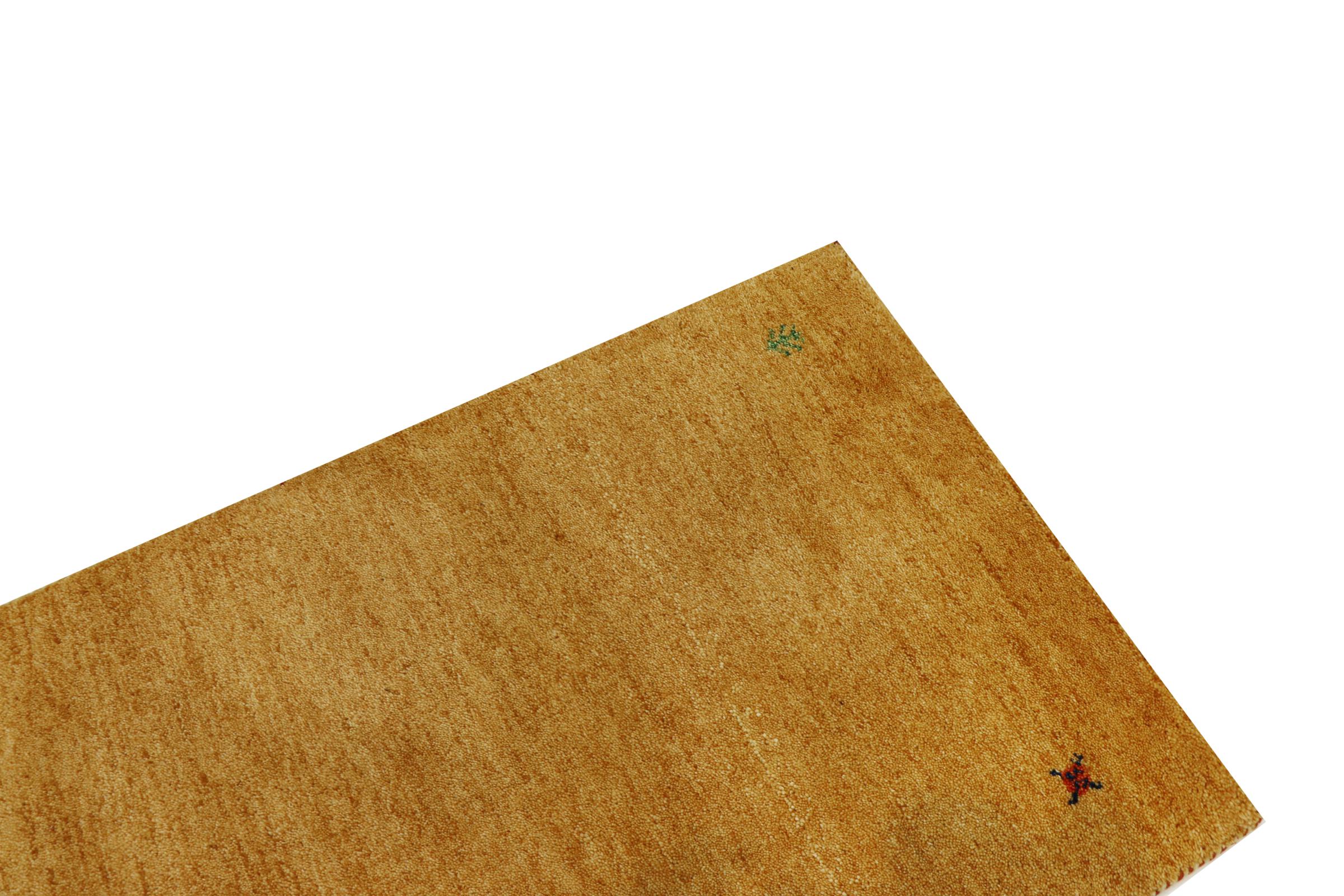 Dit prachtige Gabbeh tapijt werd met de hand geknoopt in India. Indiase Gabbeh tapijten zijn gemaakt van zachte schapenwol, zijn comfortabel aan de voeten en hebben een warmte-isolerende werking. Meestal zijn hun ontwerpen eenvoudig en tijdloos modern. Ze werden geïnspireerd door nomadische volkeren, die zeer eenvoudige motieven uit hun omgeving in de tapijten lieten vloeien. Indiase Gabbeh-tapijten komen niet helemaal in de buurt van de kwaliteit van een Perzische Gabbeh, maar hebben een zeer goede prijs-kwaliteitverhouding. Daarom zijn ze perfect geschikt als handgeknoopte beginnerstapijten.