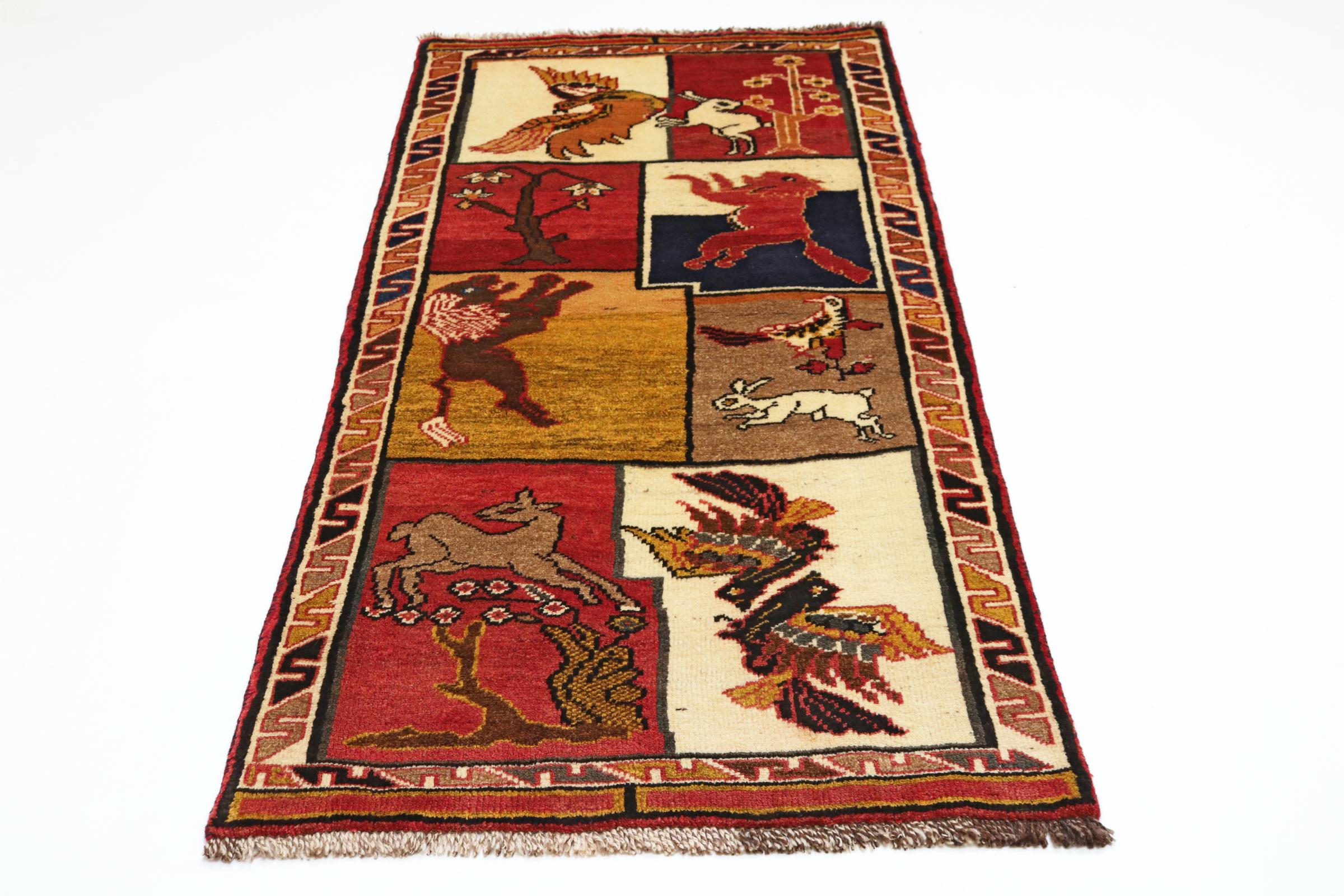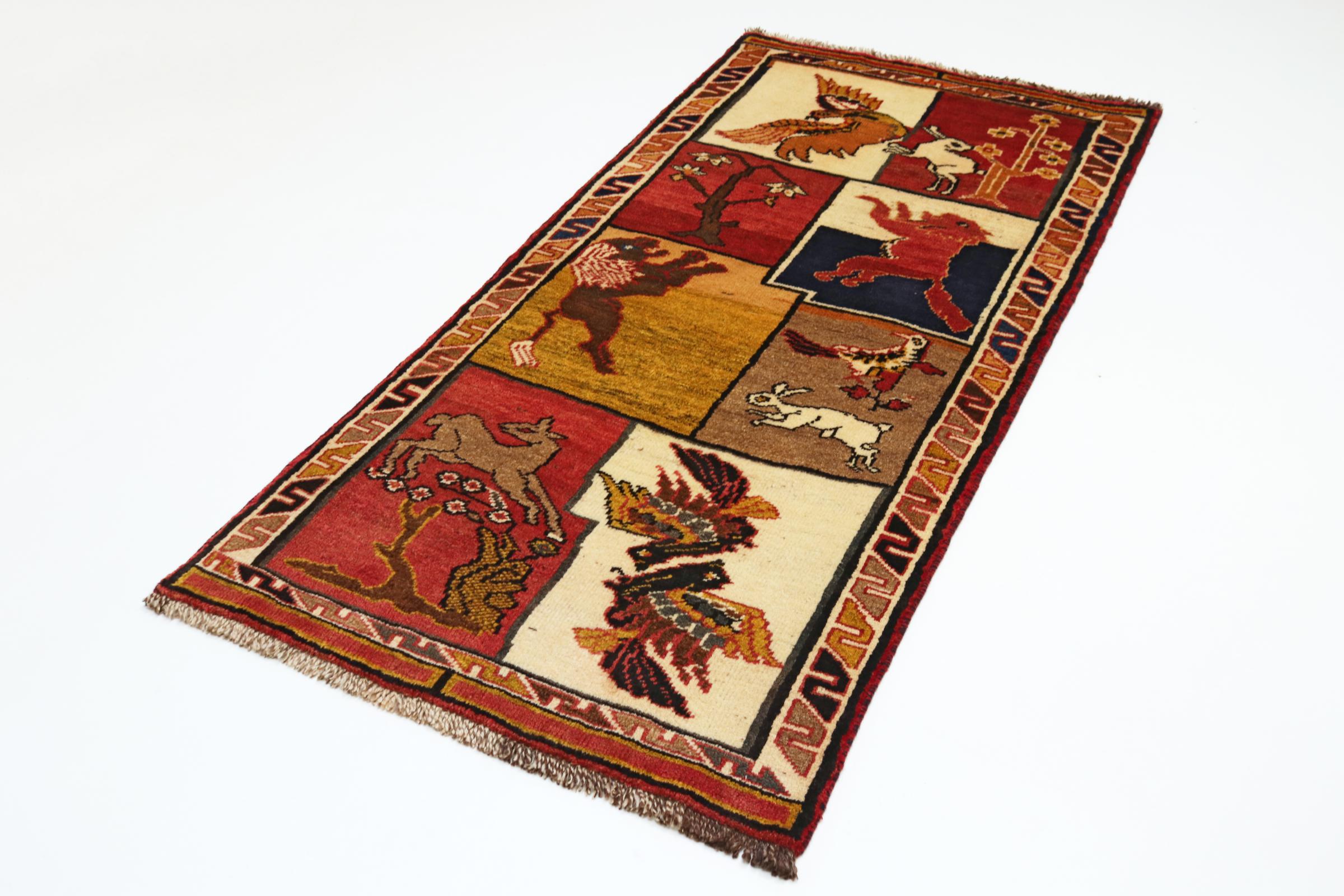 Tapijt ID: 55252002451132 Grootte: 190x91 cm Dikte: ap. 12 mm Knoopdichtheid: 160 000 - 200 000 / m² Verwerking: Handgeknoopte Pool: Hand gesponnen wol Schering: Katoen Oorsprong: Perzië / Iran Leeftijd: Nieuw Gewicht: ap. 6 kg Ook wel bekend als Qashqai, Gaschgai, Gashghai, Kashgai Op voorraad: Uniek - Nog maar 1 op voorraad