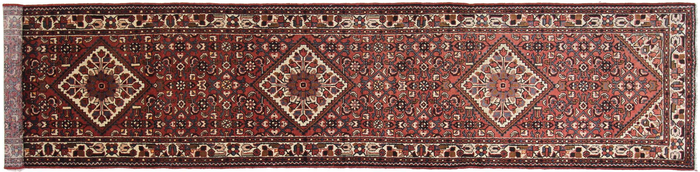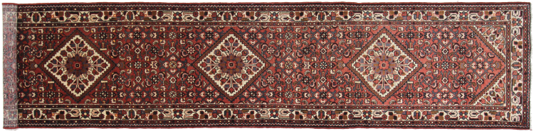 Tapijt ID: 111277003450743 Grootte: 395x84 cm Dikte: ap. 8 mm Knoopdichtheid: 200 000 - 250 000 / m² Verwerking: Handgeknoopte Pool: Hand gesponnen wol Schering: Katoen Oorsprong: Perzië / Iran Leeftijd: Nieuw Gewicht: ap. 12 kg Ook wel bekend als Huseinabad Op voorraad: Uniek - Nog maar 1 op voorraad