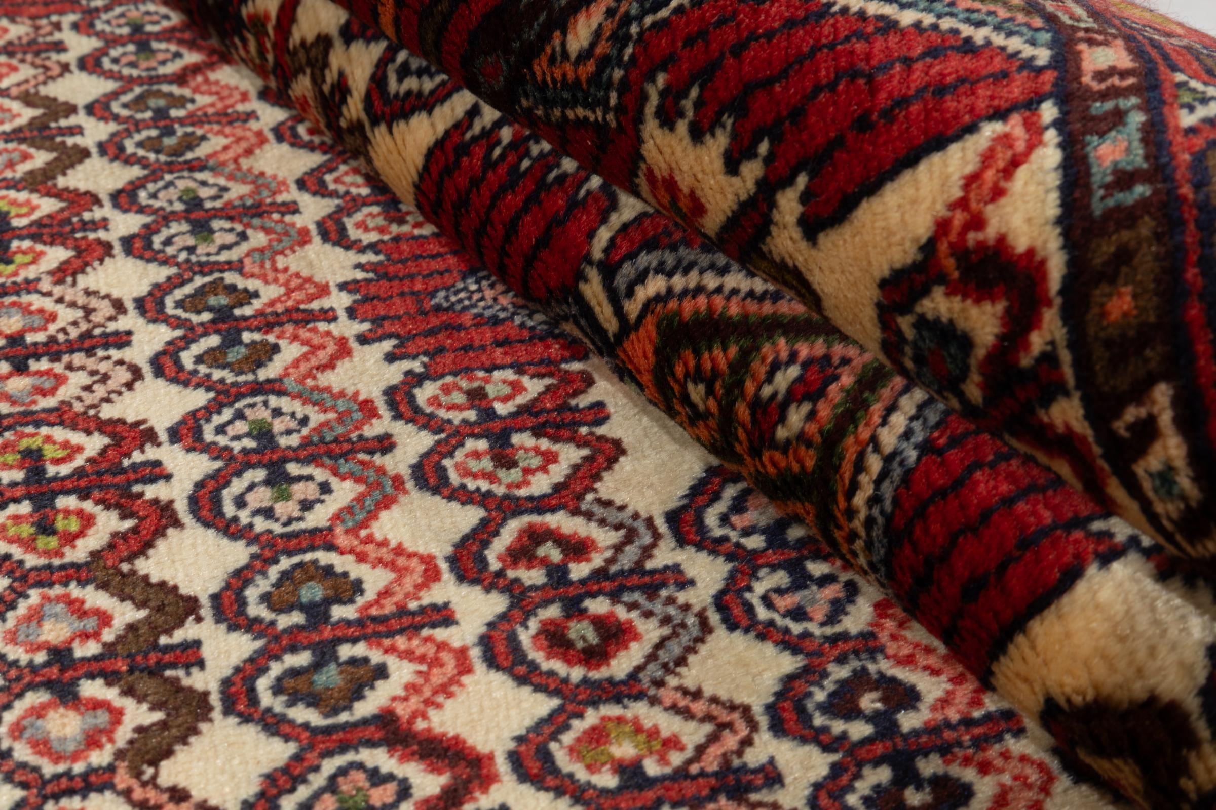 Dit tapijt behoort tot de dorps- en nomadentapijten uit Iran, het vroegere Perzië. Dit type tapijt wordt met de hand geknoopt in kleinere steden en dorpen in de oude traditie. Zelfs nomaden knopen nog steeds Perzische tapijten in de open lucht. De tapijten worden geknoopt zonder patroon en volledig vanaf de kop. Ze worden gekenmerkt door klassieke ornamenten, die in rechte en geometrische patronen zijn gerangschikt. Dankzij hun cultureel-traditionele oorsprong hebben deze tapijten een uniek karakter dat het oude Perzië belichaamt.