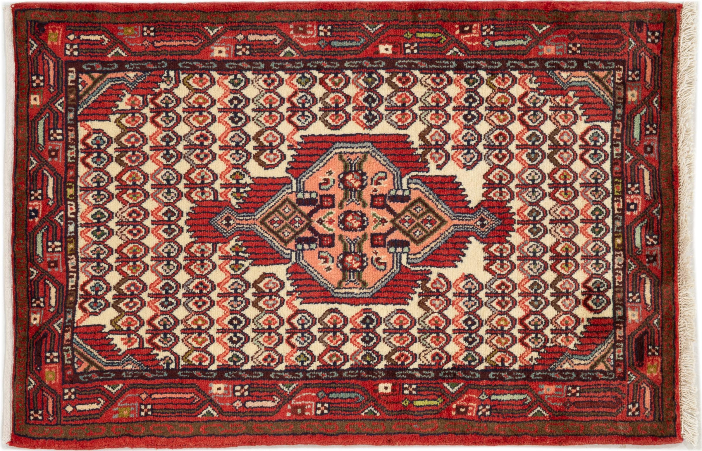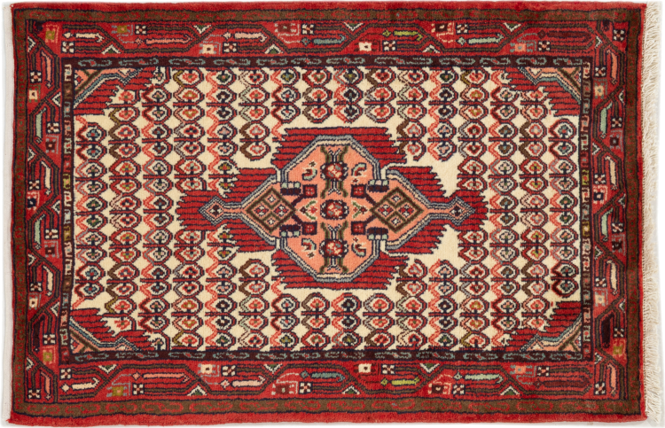 Tapijt ID: 297189005040127 Grootte: 129x77 cm Dikte: ap. 8 mm Knoopdichtheid: 128 000 - 160 000 / m² Verwerking: Handgeknoopte Pool: Wol Schering: Katoen Oorsprong: Perzië / Iran Leeftijd: 20-30 jaar (Nieuw) Gewicht: ap. 3 kg Ook wel bekend als Huseinabad Op voorraad: Uniek - Nog maar 1 op voorraad
