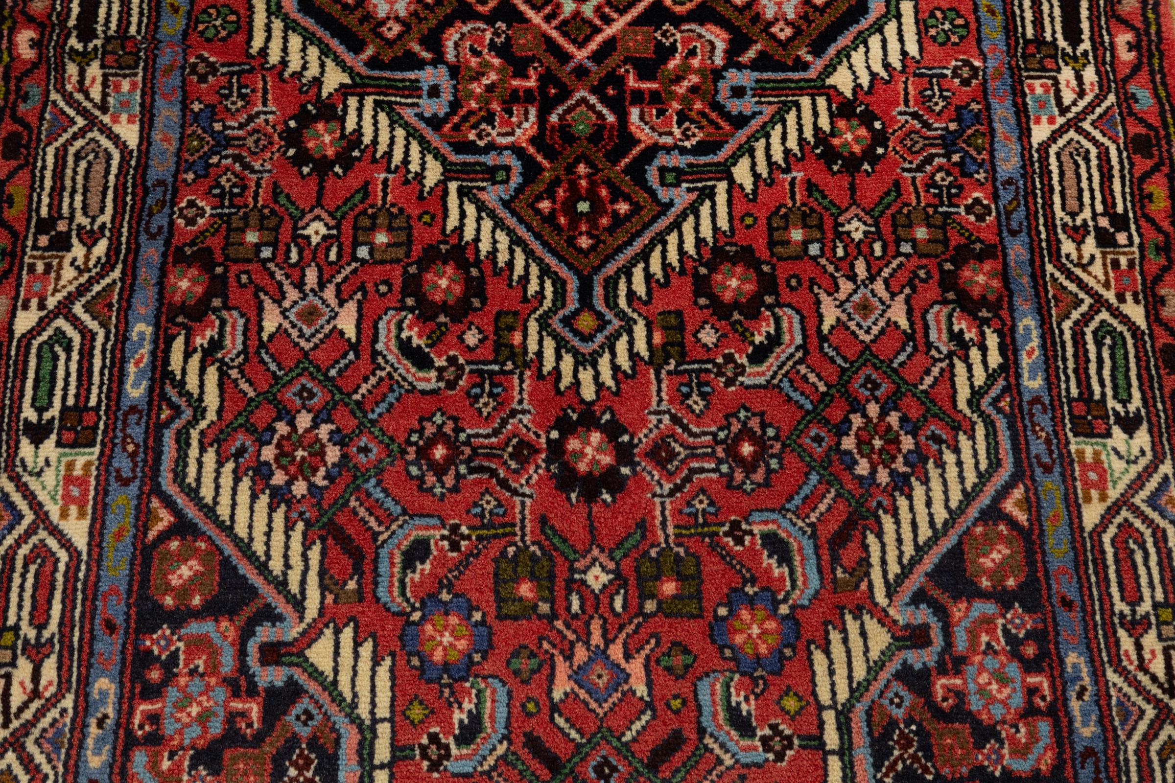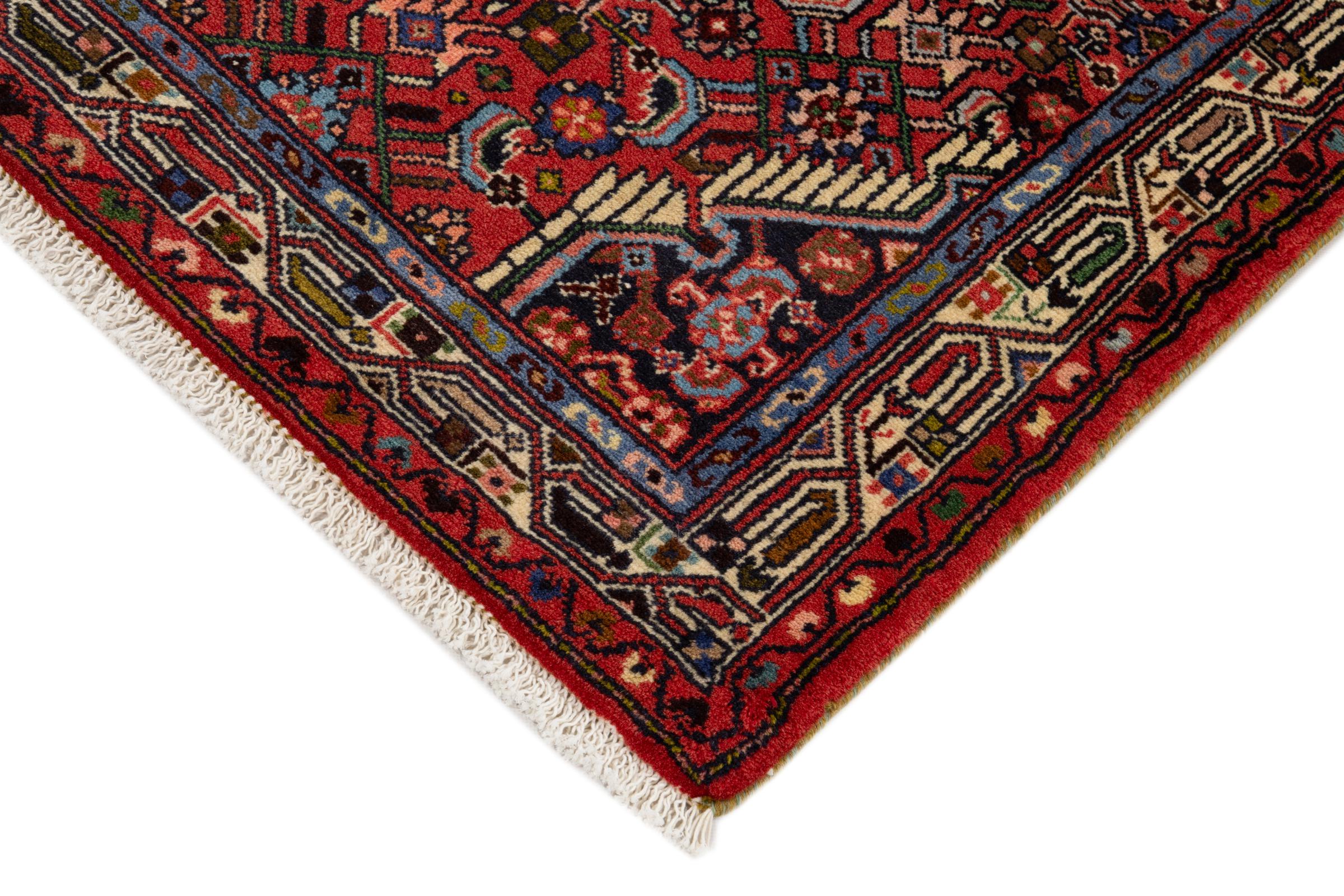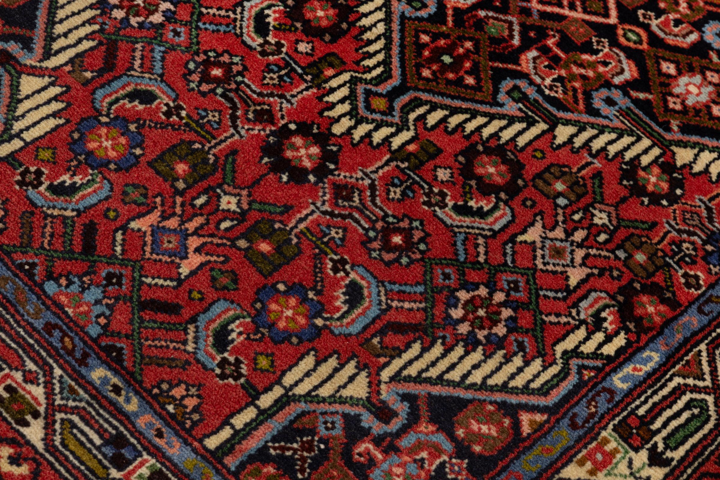 Er is een reden waarom dit Hamadan tapijt zo populair is in nieuwe interieurconcepten. Het combineert een onklopbare prijs met uitzonderlijke kwaliteit. Dankzij de sterke garens die worden gebruikt bij de vervaardiging van Hamadan tapijten, is dit Perzische tapijt bijzonder duurzaam. Het is met de hand geknoopt in de stad Hamadan. De vaak geometrische patronen en ornamenten zijn tijdloos en daarom ook erg populair in Scandinavische interieurs. De gedurfde kleuren brengen gezelligheid en warmte in je kamer.