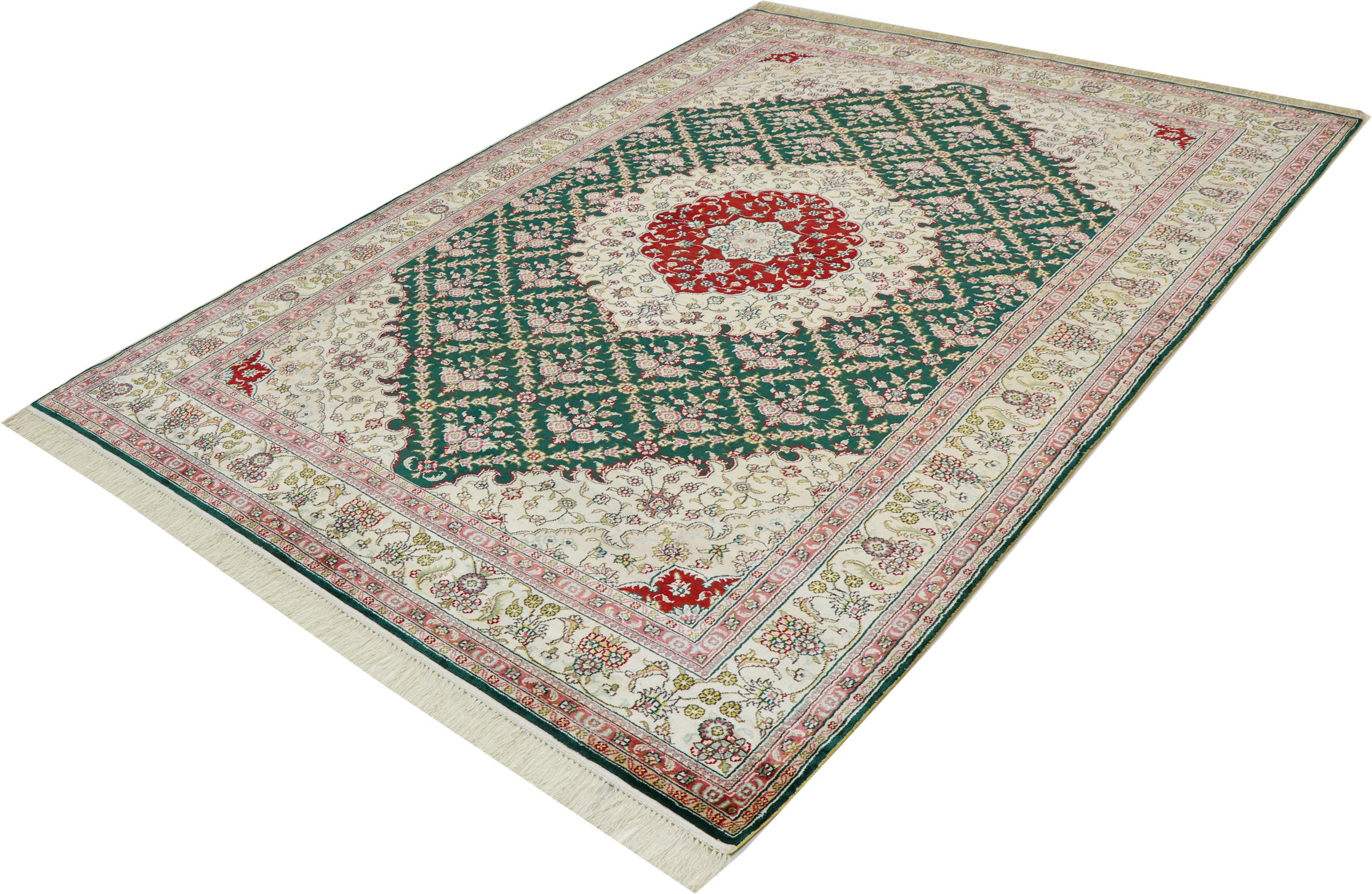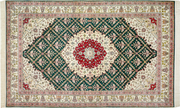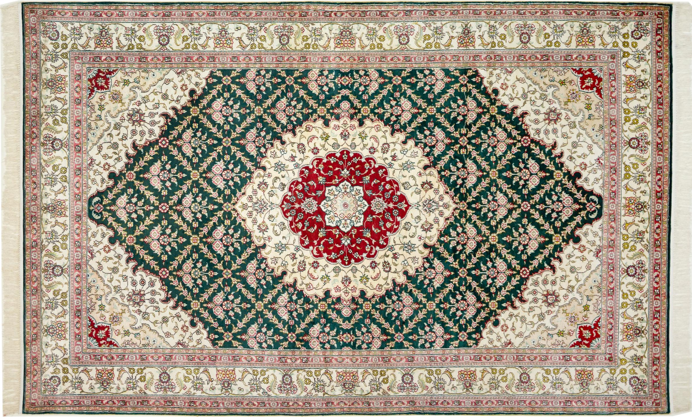 Tapijt ID: 303514003715509 Grootte: 246x150 cm Dikte: ap. 5 mm Knoopdichtheid: 640 000 / m² Verwerking: Handgeknoopte Pool: Zijde Schering: Zijde Oorsprong: Turkije Leeftijd: Nieuw Gewicht: ap. 13 kg Op voorraad: Uniek - Nog maar 1 op voorraad