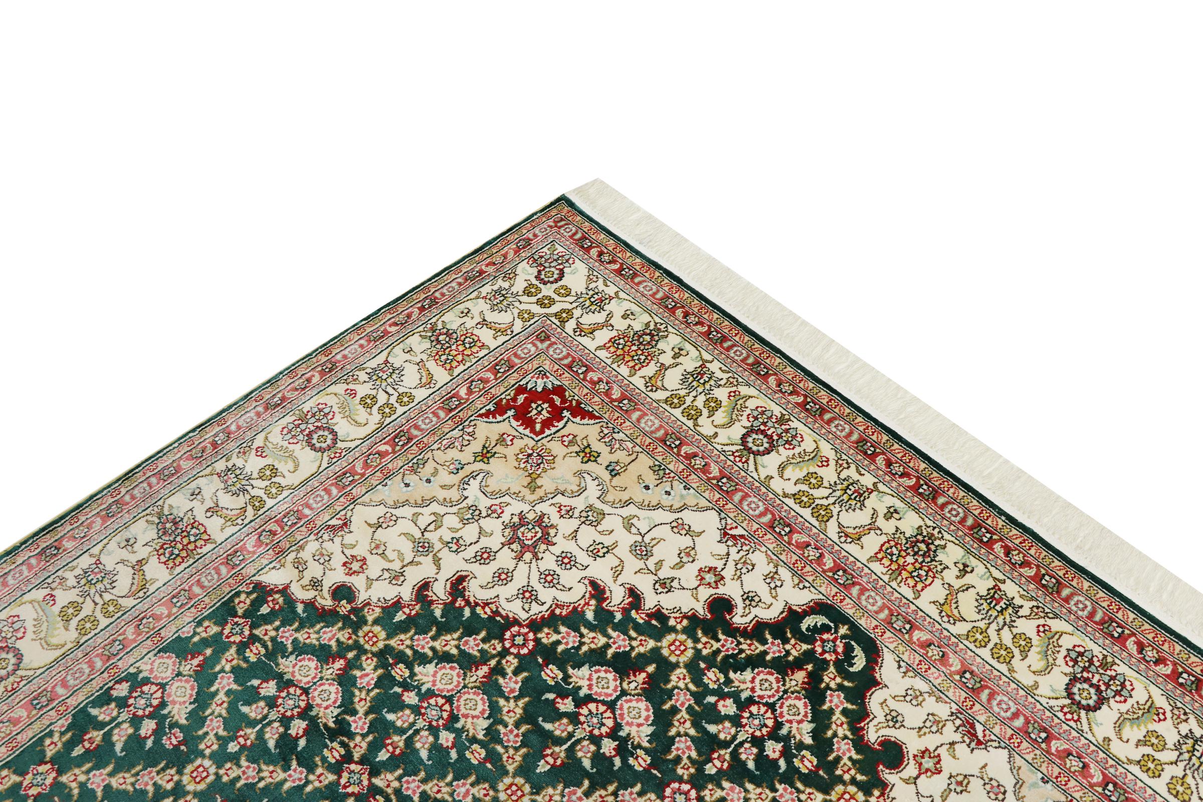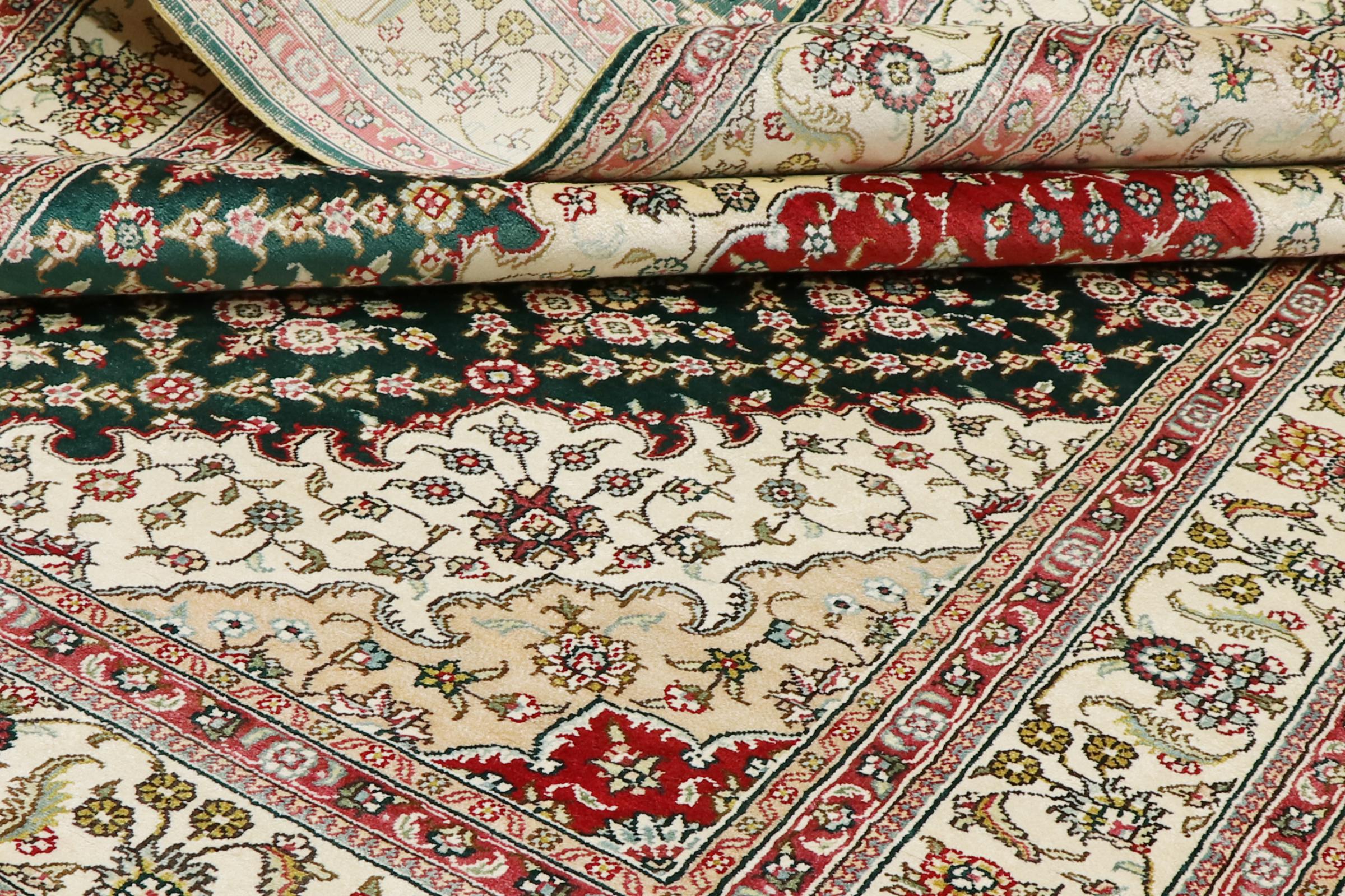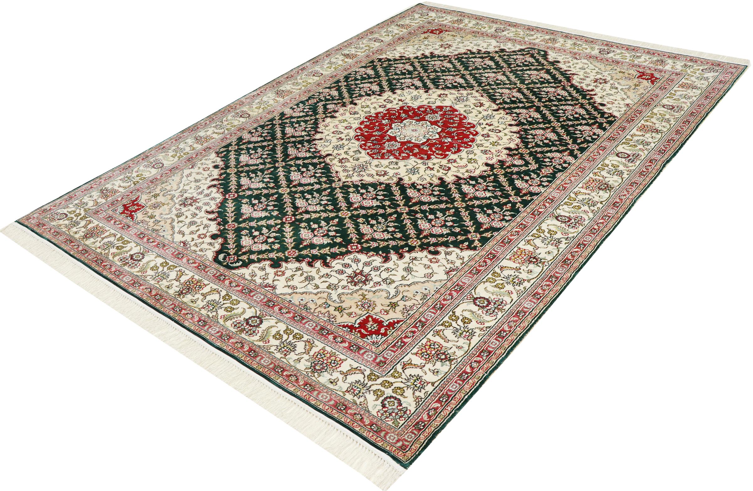 Tapijt ID: 303514003715509 Grootte: 246x150 cm Dikte: ap. 5 mm Knoopdichtheid: 640 000 / m² Verwerking: Handgeknoopte Pool: Zijde Schering: Zijde Oorsprong: Turkije Leeftijd: Nieuw Gewicht: ap. 13 kg Op voorraad: Uniek - Nog maar 1 op voorraad