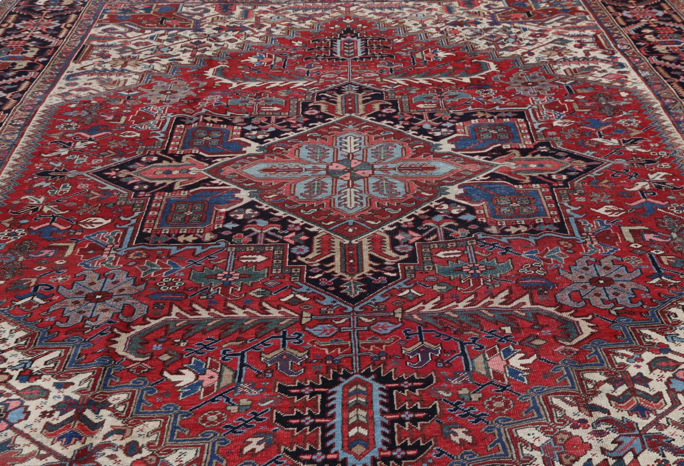Dit Heriz-tapijt is een prachtig voorbeeld van Perzisch tapijtvakmanschap. De rustieke afwerking getuigt van duurzaamheid. Het tapijt werd met de hand geknoopt in de stad Heriz, vlakbij Tabriz in het noordwesten van Iran. Als je op zoek bent naar een Perzisch tapijt waar je lang plezier van zult hebben en dat zeer modern is, dan zal deze Heriz je zeker bevallen. De ornamenten van Heriz tapijten zijn vandaag de dag erg populair en worden als zeer modern ervaren. Een tapijt als dit geef je nooit meer weg.