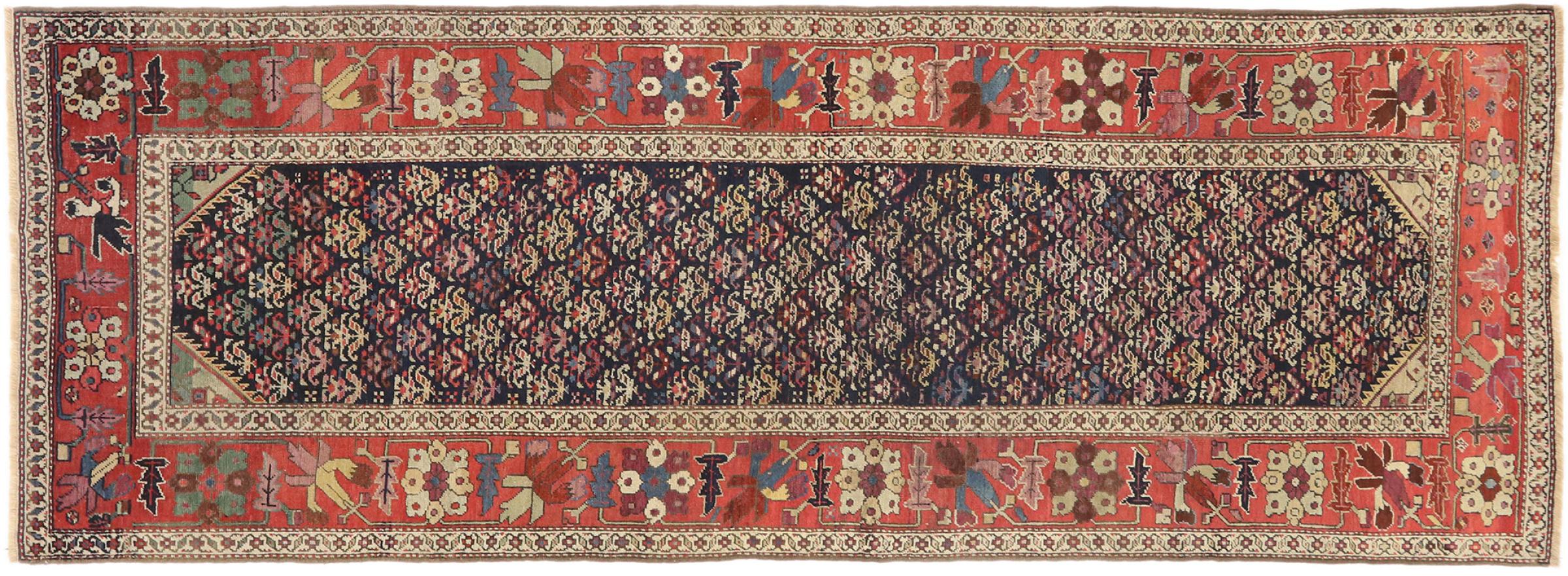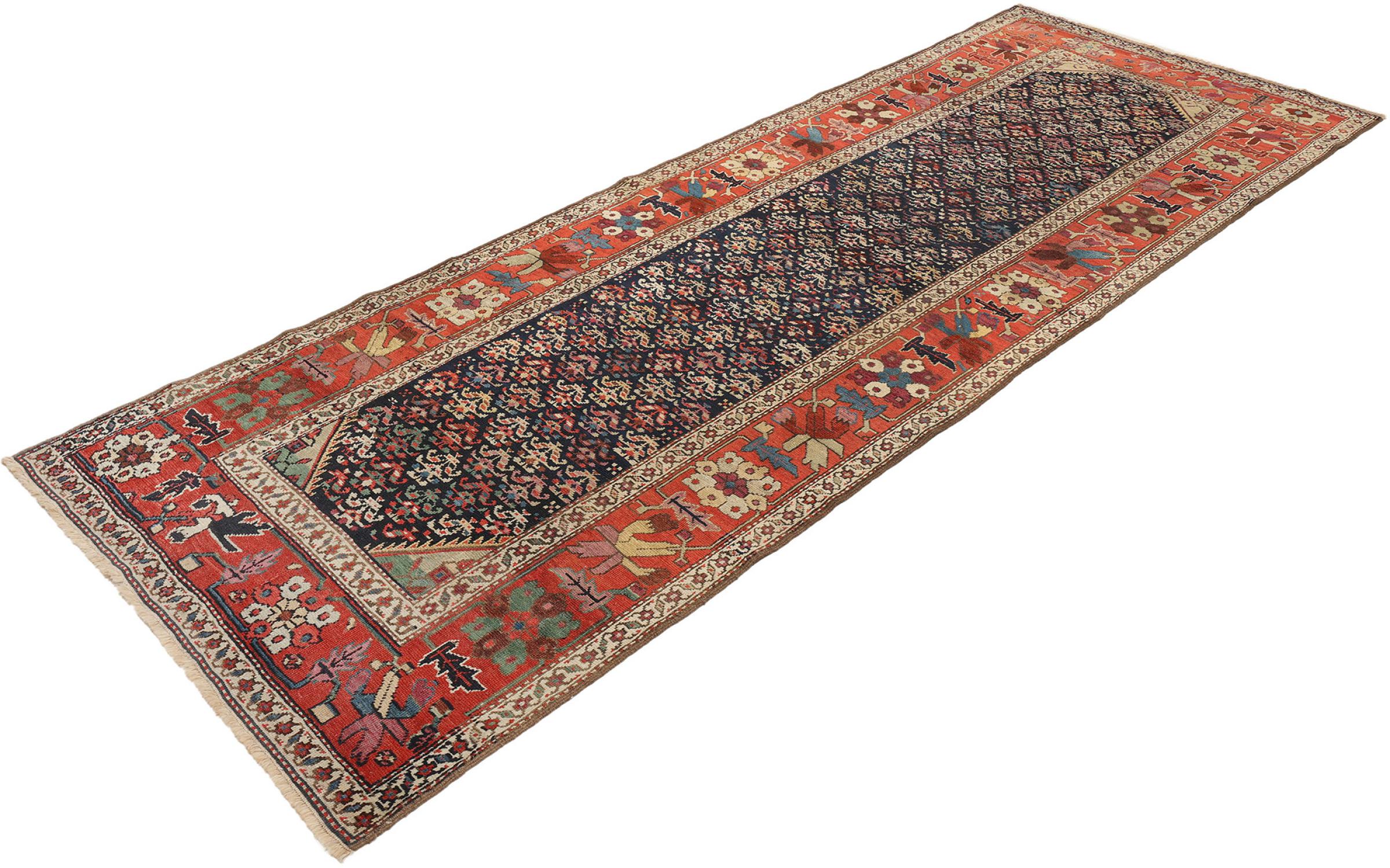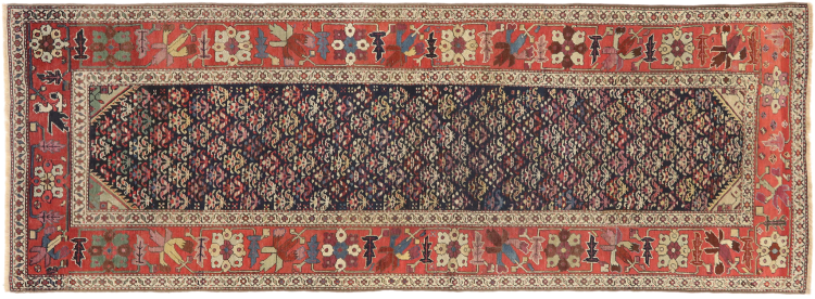 Tapijt ID: 316282007979360 Grootte: 319x116 cm Dikte: ap. 12 mm Knoopdichtheid: 290 000 - 320 000 / m² Verwerking: Handgeknoopte Pool: Hand gesponnen wol Schering: Wol Conditie / Conservering Perfect Oorsprong: Perzië / Iran Leeftijd: Antiek, boven 80 jaar Gewicht: ap. 15 kg Op voorraad: Uniek - Nog maar 1 op voorraad