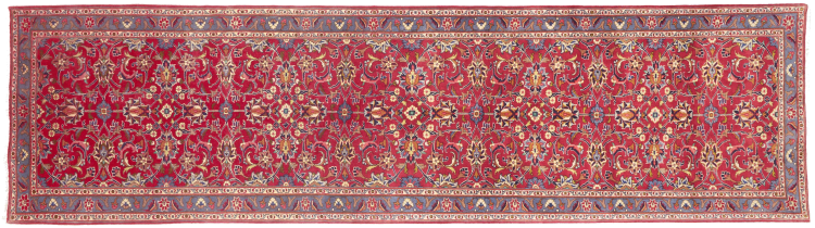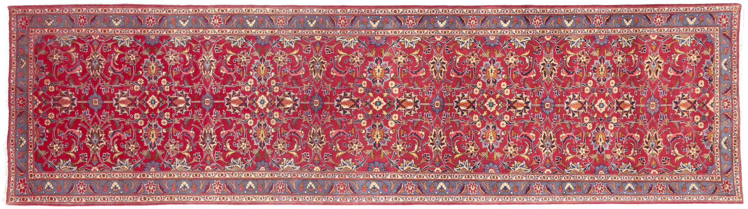 Tapijt ID: 306218003876965 Grootte: 391x101 cm Dikte: ap. 12 mm Knoopdichtheid: 128 000 - 160 000 / m² Verwerking: Handgeknoopte Pool: Hand gesponnen wol Schering: Katoen Oorsprong: Perzië / Iran Leeftijd: Nieuw Gewicht: ap. 14 kg Op voorraad: Uniek - Nog maar 1 op voorraad