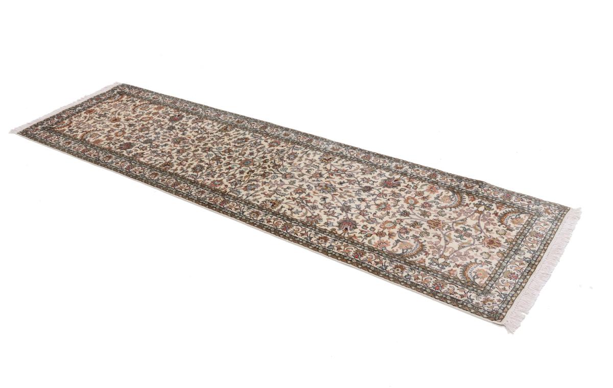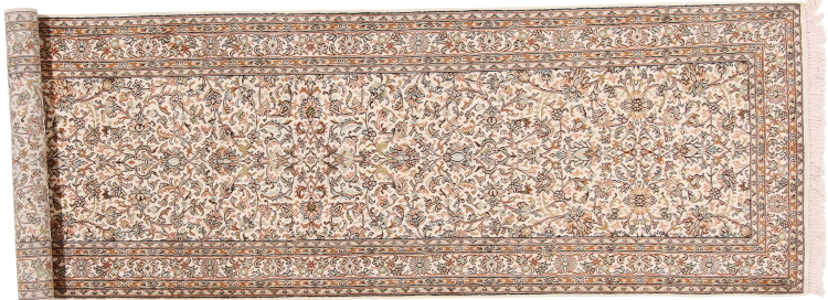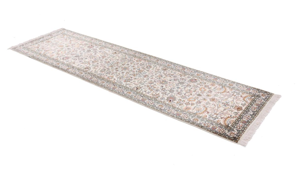 Tapijt ID: 174020056371 Grootte: 271x76 cm Dikte: ap. 4 mm Knoopdichtheid: 700 000 / m² Verwerking: Handgeknoopte Pool: Zijde Schering: Katoen Oorsprong: India Leeftijd: Nieuw Gewicht: ap. 4 kg Op voorraad: Uniek - Nog maar 1 op voorraad