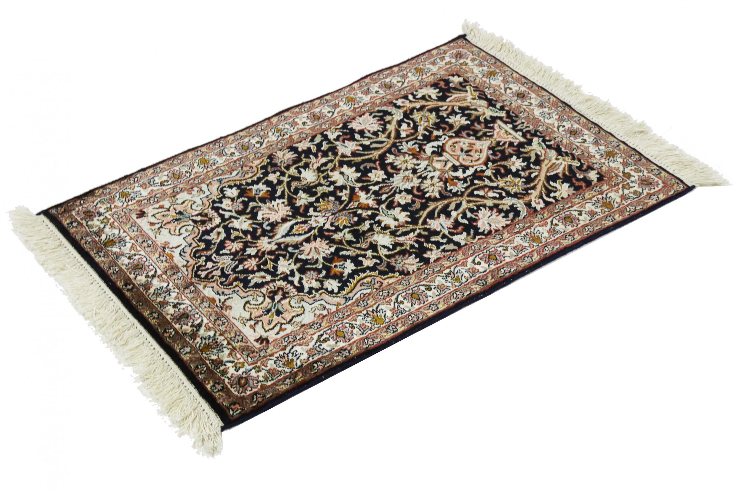 Tapijt ID: 136520003639102 Grootte: 96x63 cm Dikte: ap. 4 mm Knoopdichtheid: 440 000 - 490 000 / m² Verwerking: Handgeknoopte Pool: Zijde Schering: Katoen Oorsprong: India Leeftijd: Nieuw Gewicht: ap. 1 kg Op voorraad: Uniek