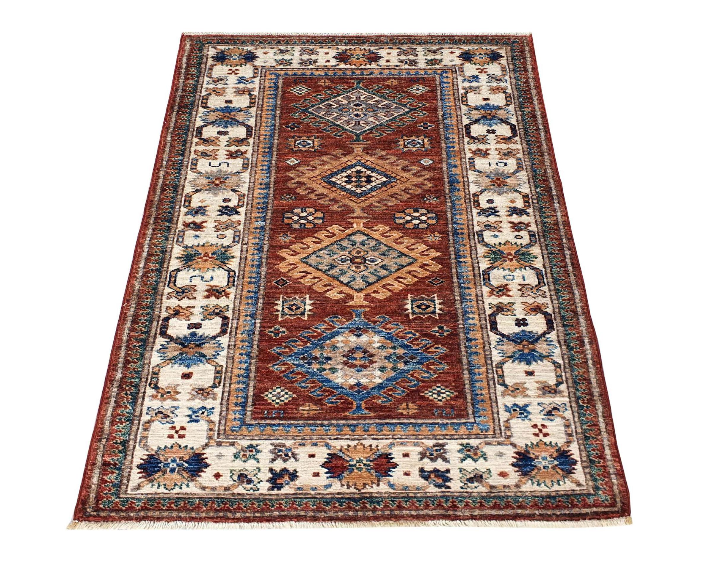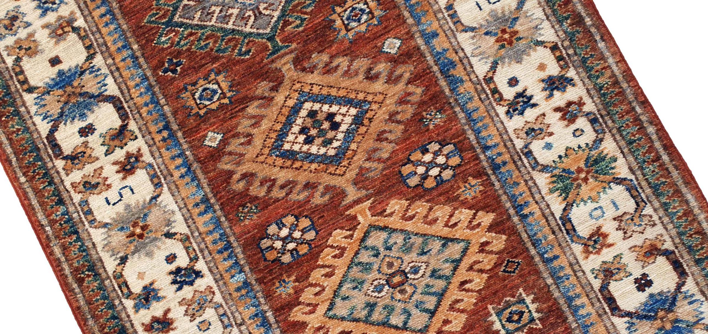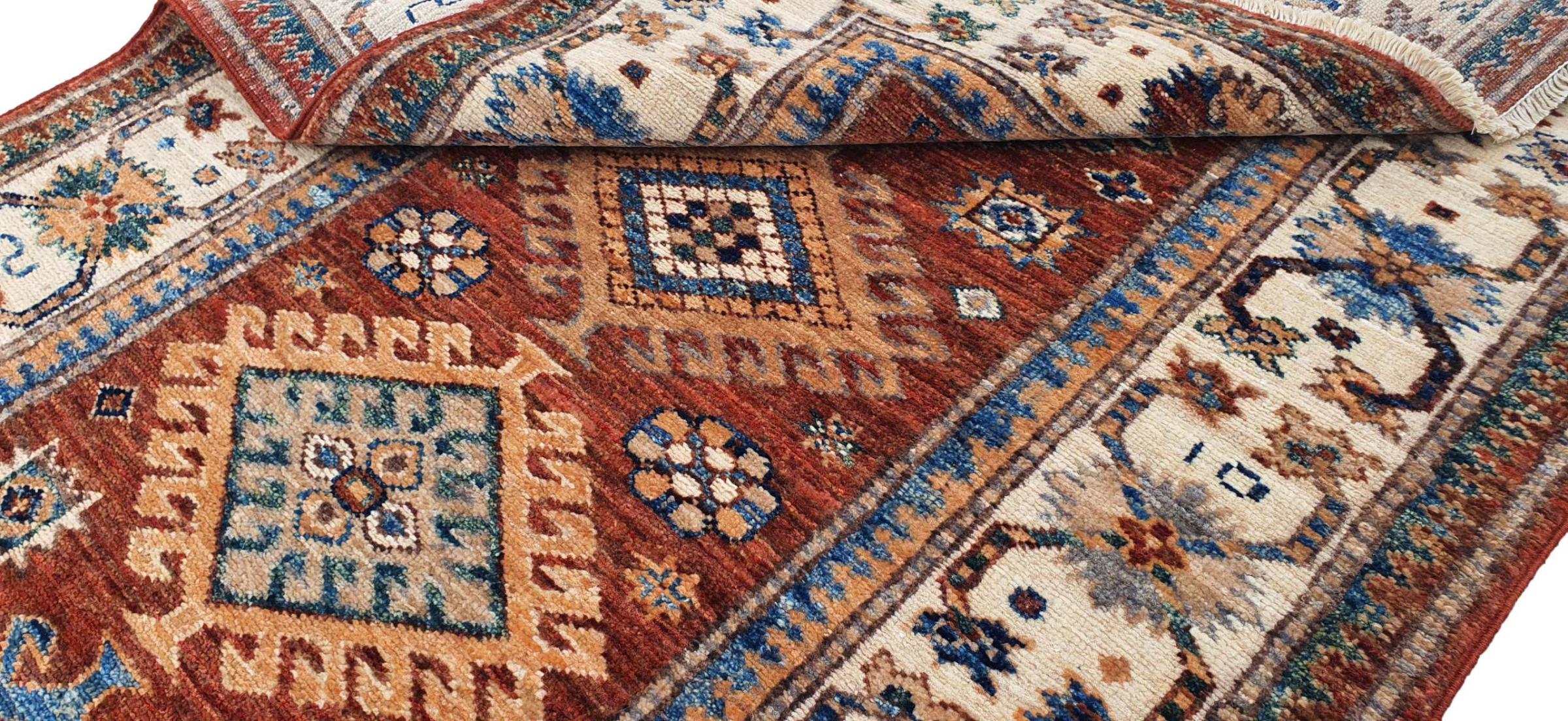 Kazak-vloerkleden zijn duurzame, levendige wollen vloerkleden die bekend staan om hun unieke geometrische patronen, uitgebalanceerde kleuren en uitzonderlijk vakmanschap. Ze zullen een boeiende en cultureel rijke sfeer in uw ruimte creëren. Oorspronkelijk afkomstig uit de Kaukasus en een van de oudste soorten tapijten, worden ze nu voornamelijk gemaakt door Kazachen in Afghanistan en Pakistan. Een antiek Kazachs tapijt kan zeer waardevol zijn voor verzamelaars.