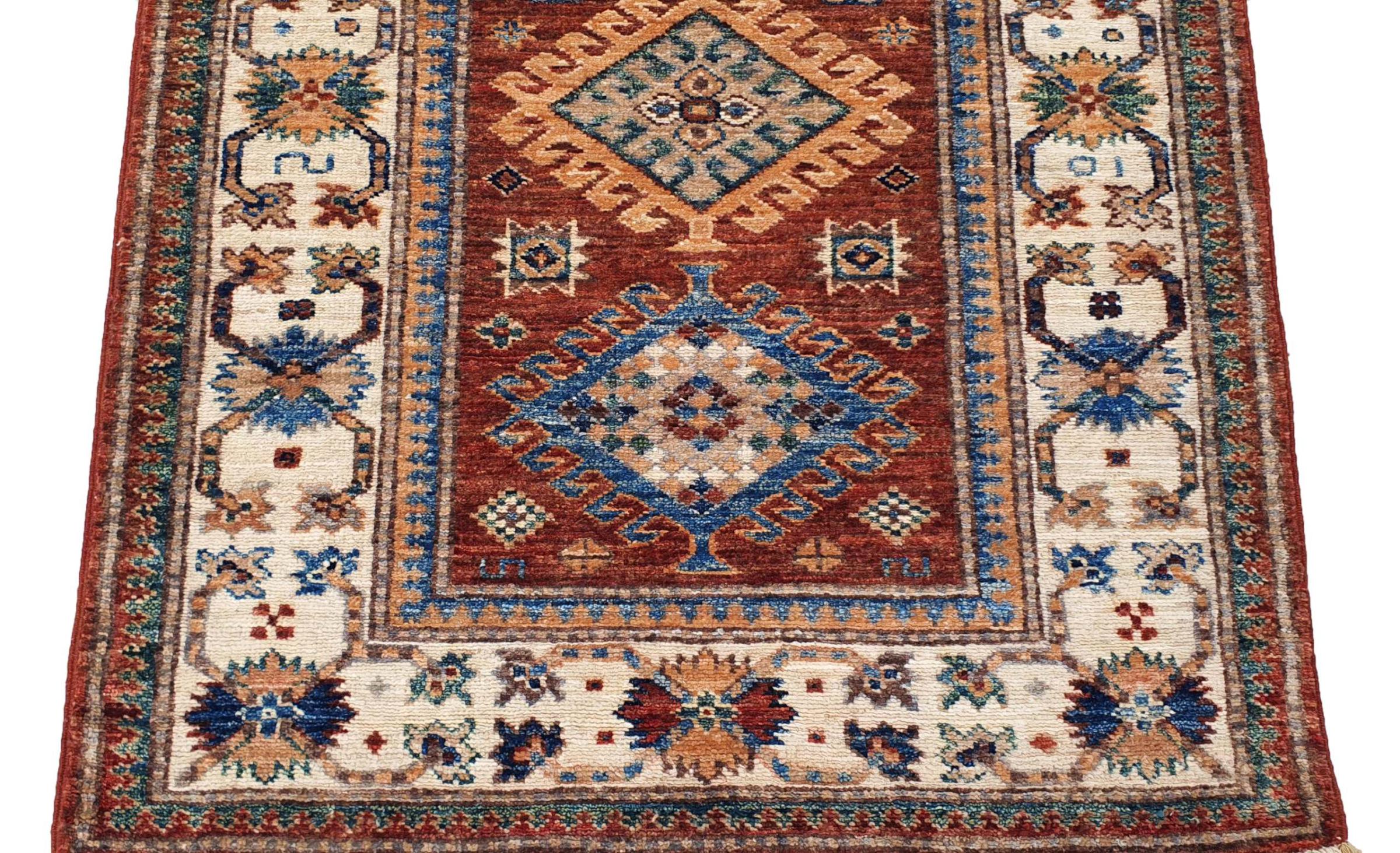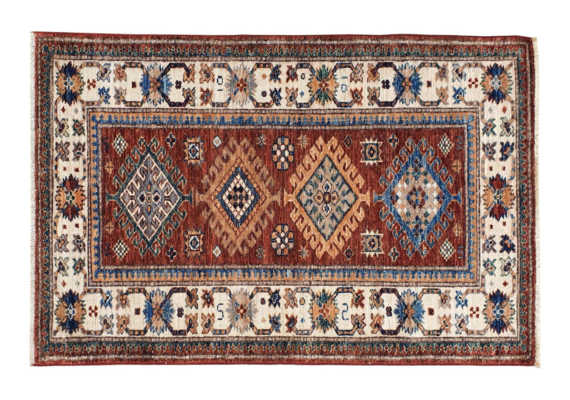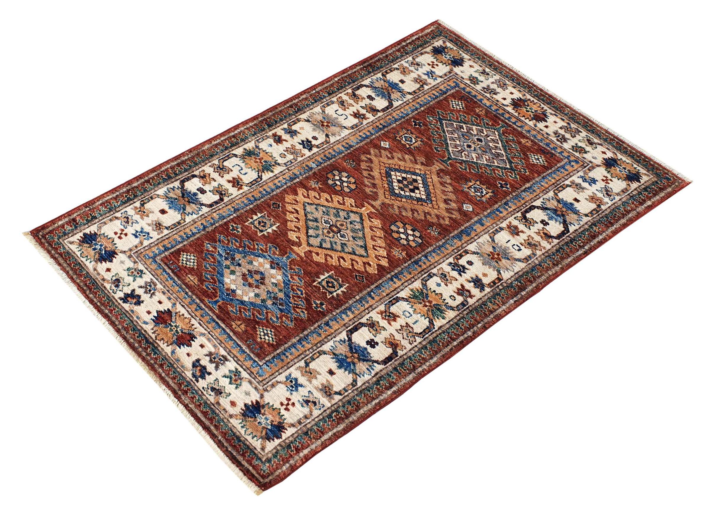 Kazak-vloerkleden zijn duurzame, levendige wollen vloerkleden die bekend staan om hun unieke geometrische patronen, uitgebalanceerde kleuren en uitzonderlijk vakmanschap. Ze zullen een boeiende en cultureel rijke sfeer in uw ruimte creëren. Oorspronkelijk afkomstig uit de Kaukasus en een van de oudste soorten tapijten, worden ze nu voornamelijk gemaakt door Kazachen in Afghanistan en Pakistan. Een antiek Kazachs tapijt kan zeer waardevol zijn voor verzamelaars.