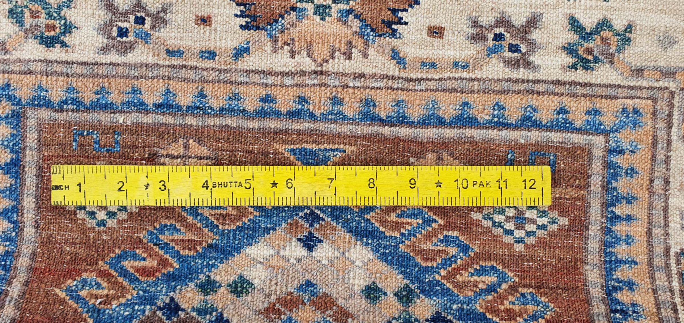 Tapijt ID: 300096009903984 Grootte: 129x82 cm Dikte: ap. 5 mm Knoopdichtheid: 96 000 - 120 000 / m² Verwerking: Handgeknoopte Pool: Hand gesponnen wol Schering: Katoen Oorsprong: Pakistan Leeftijd: Nieuw Gewicht: ap. 3 kg Op voorraad: Uniek - Nog maar 1 op voorraad