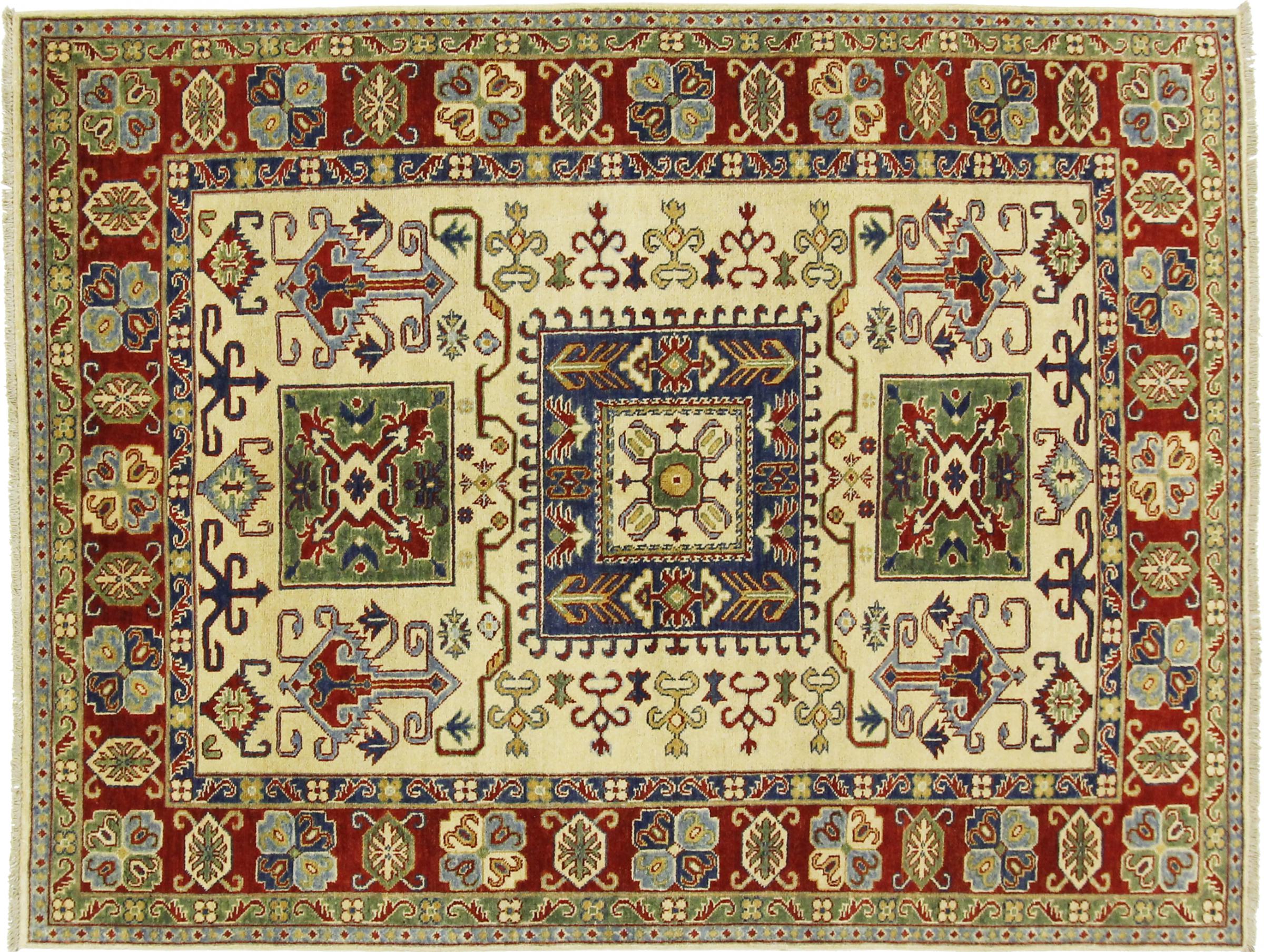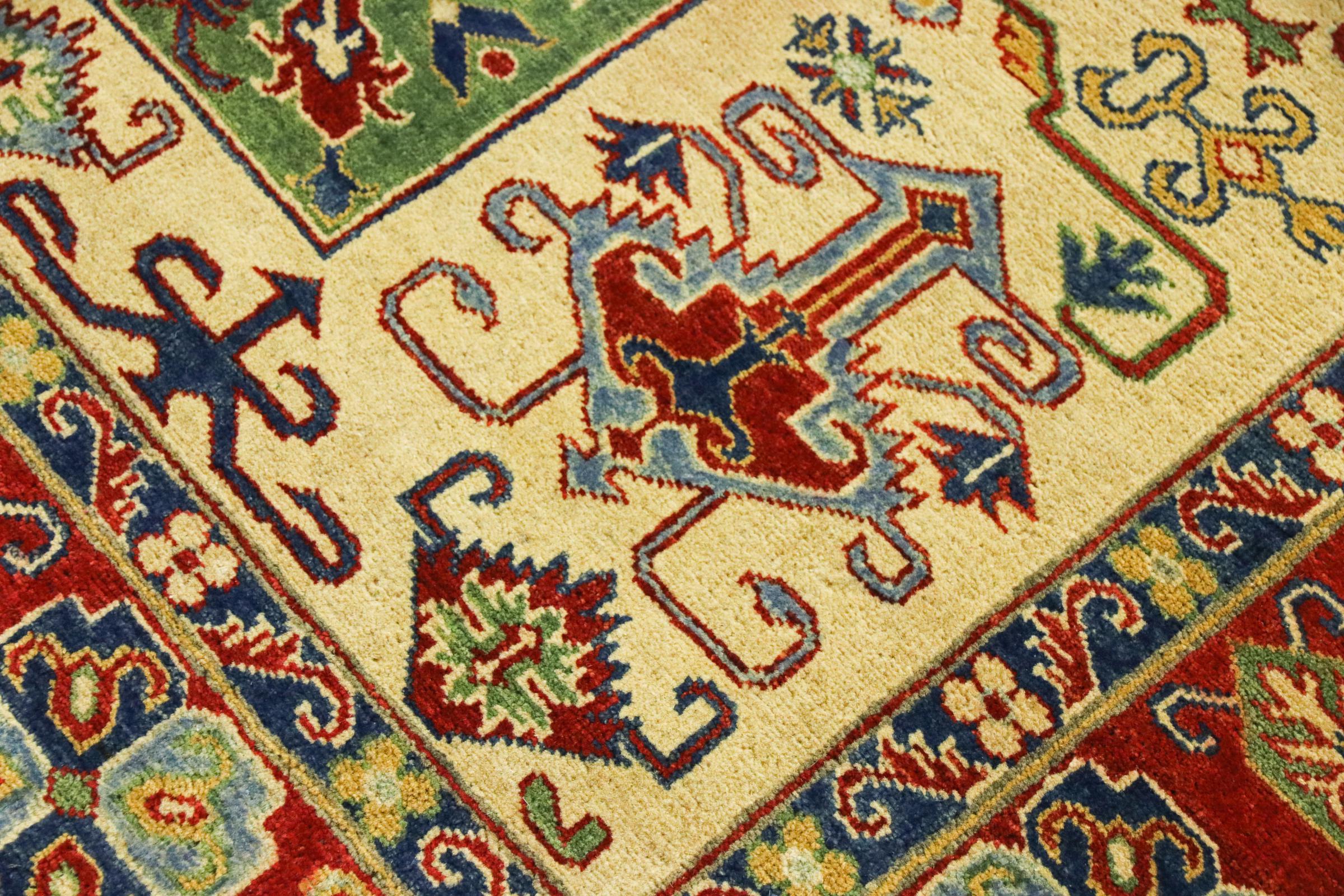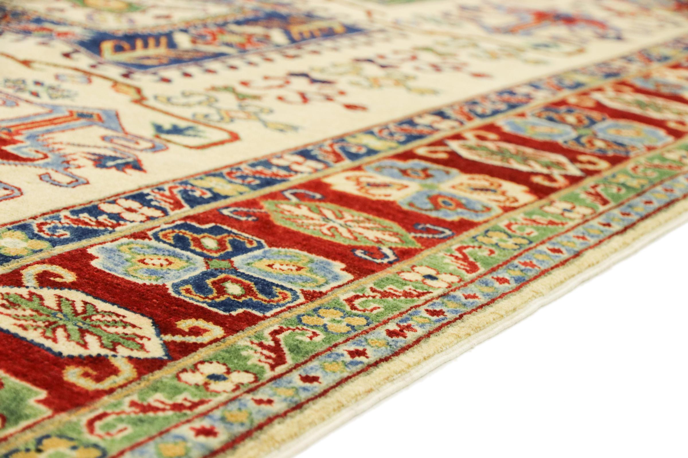 Kazak-vloerkleden zijn duurzame, levendige wollen vloerkleden die bekend staan om hun unieke geometrische patronen, uitgebalanceerde kleuren en uitzonderlijk vakmanschap. Ze zullen een boeiende en cultureel rijke sfeer in uw ruimte creëren. Oorspronkelijk afkomstig uit de Kaukasus en een van de oudste soorten tapijten, worden ze nu voornamelijk gemaakt door Kazachen in Afghanistan en Pakistan. Een antiek Kazachs tapijt kan zeer waardevol zijn voor verzamelaars.