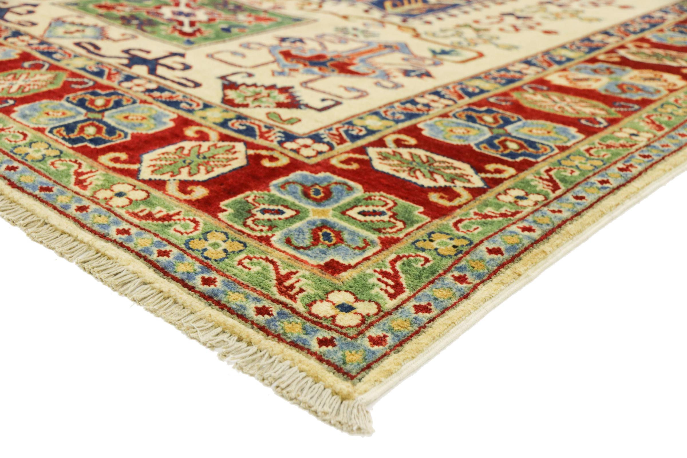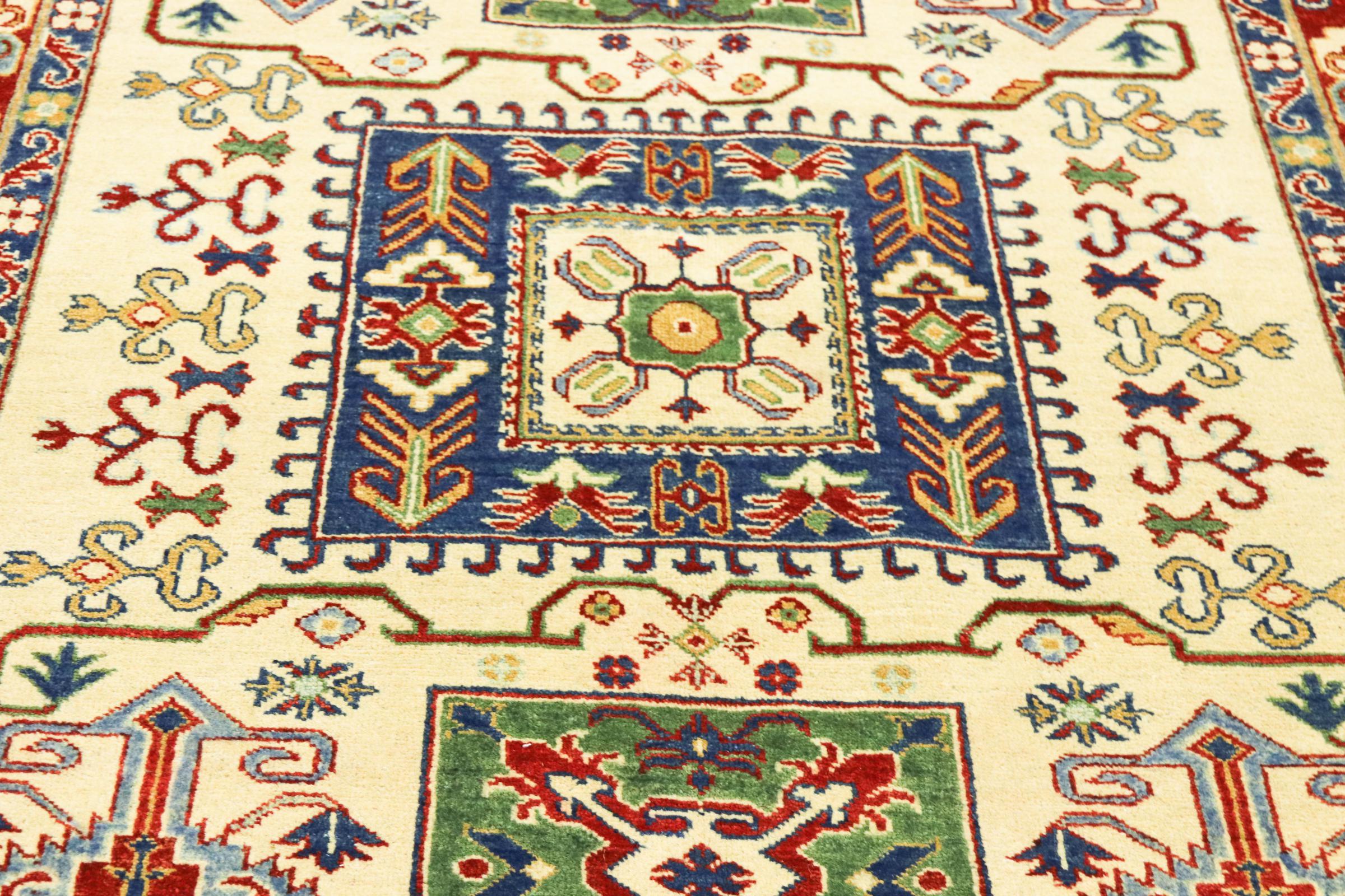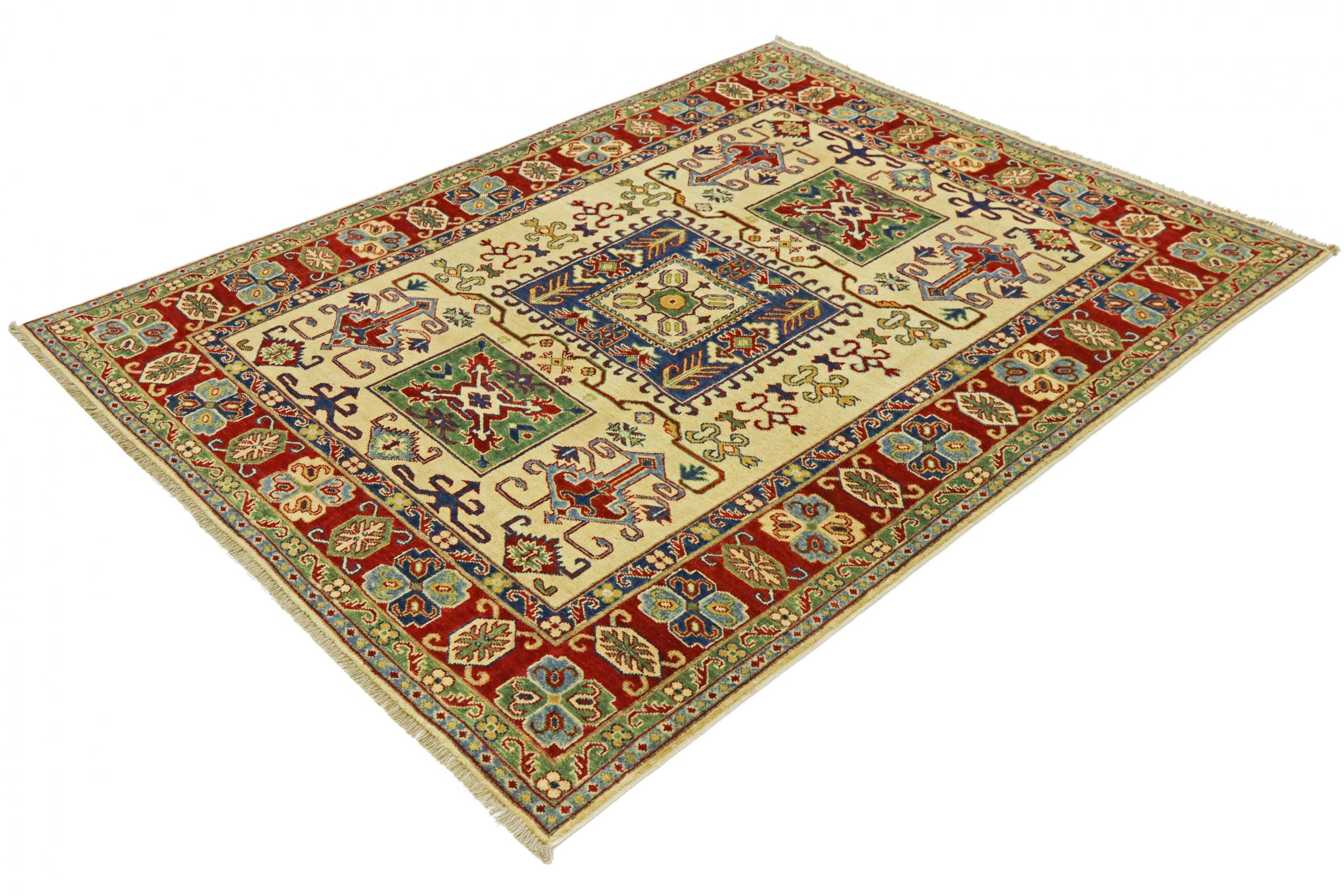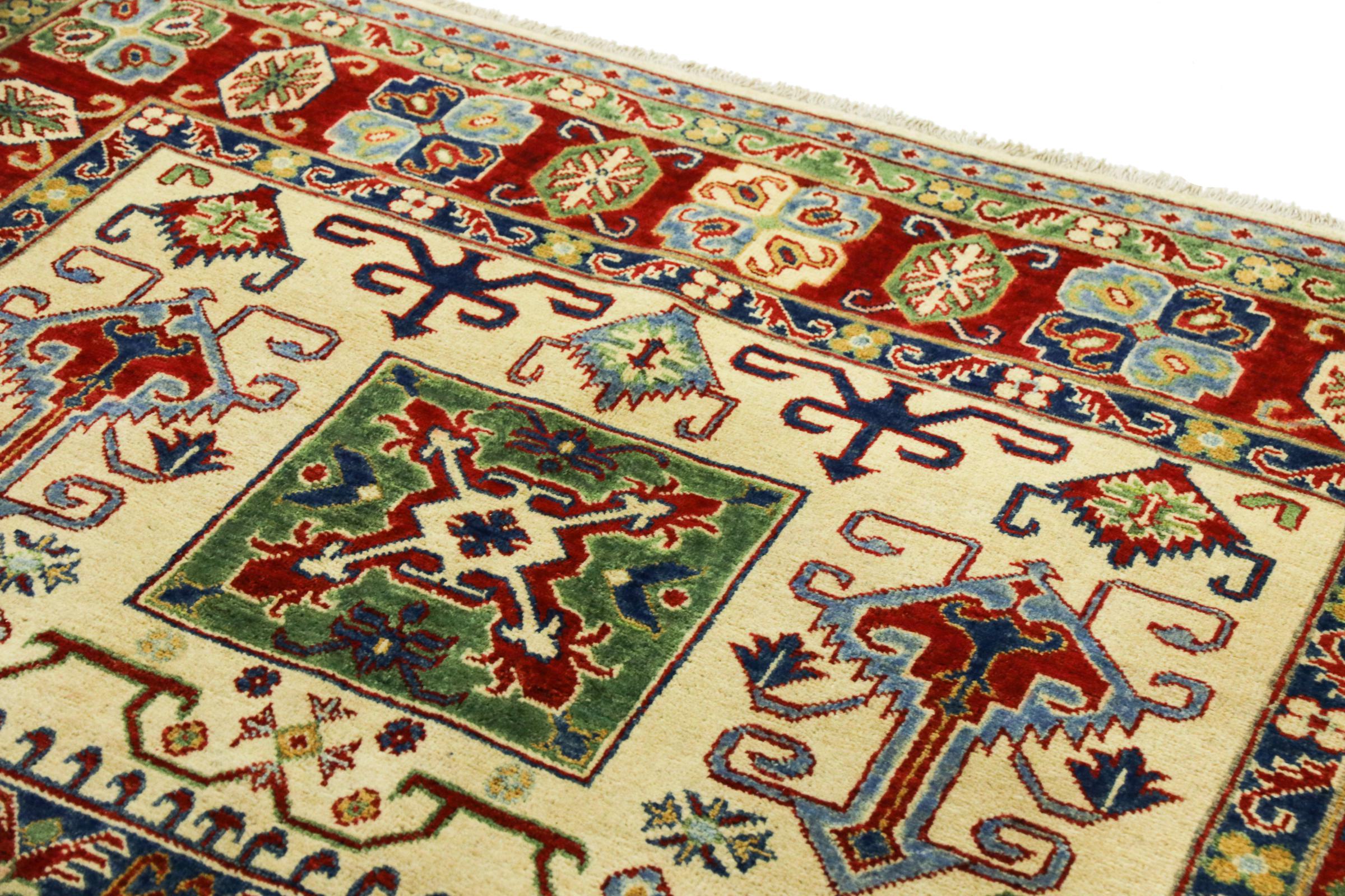 Kazak-vloerkleden zijn duurzame, levendige wollen vloerkleden die bekend staan om hun unieke geometrische patronen, uitgebalanceerde kleuren en uitzonderlijk vakmanschap. Ze zullen een boeiende en cultureel rijke sfeer in uw ruimte creëren. Oorspronkelijk afkomstig uit de Kaukasus en een van de oudste soorten tapijten, worden ze nu voornamelijk gemaakt door Kazachen in Afghanistan en Pakistan. Een antiek Kazachs tapijt kan zeer waardevol zijn voor verzamelaars.