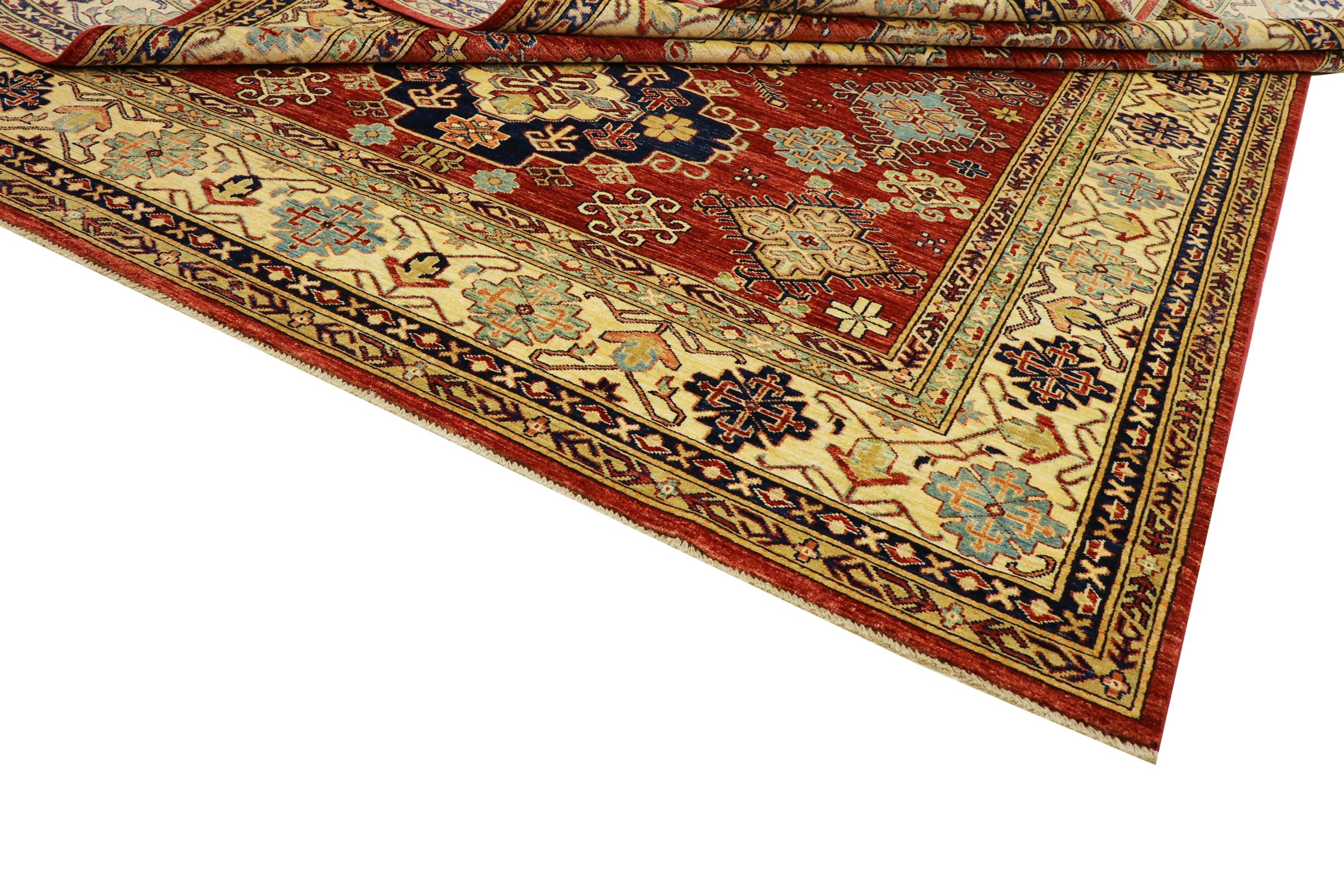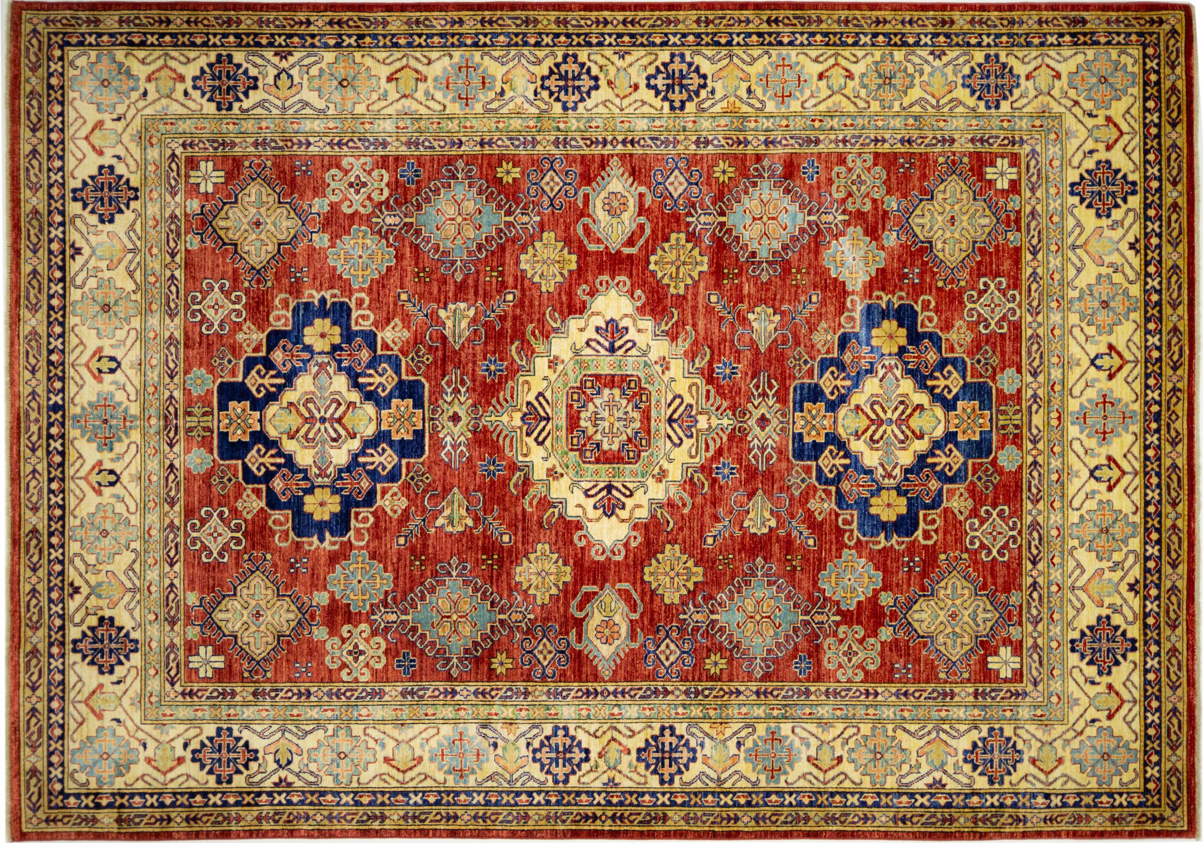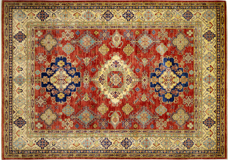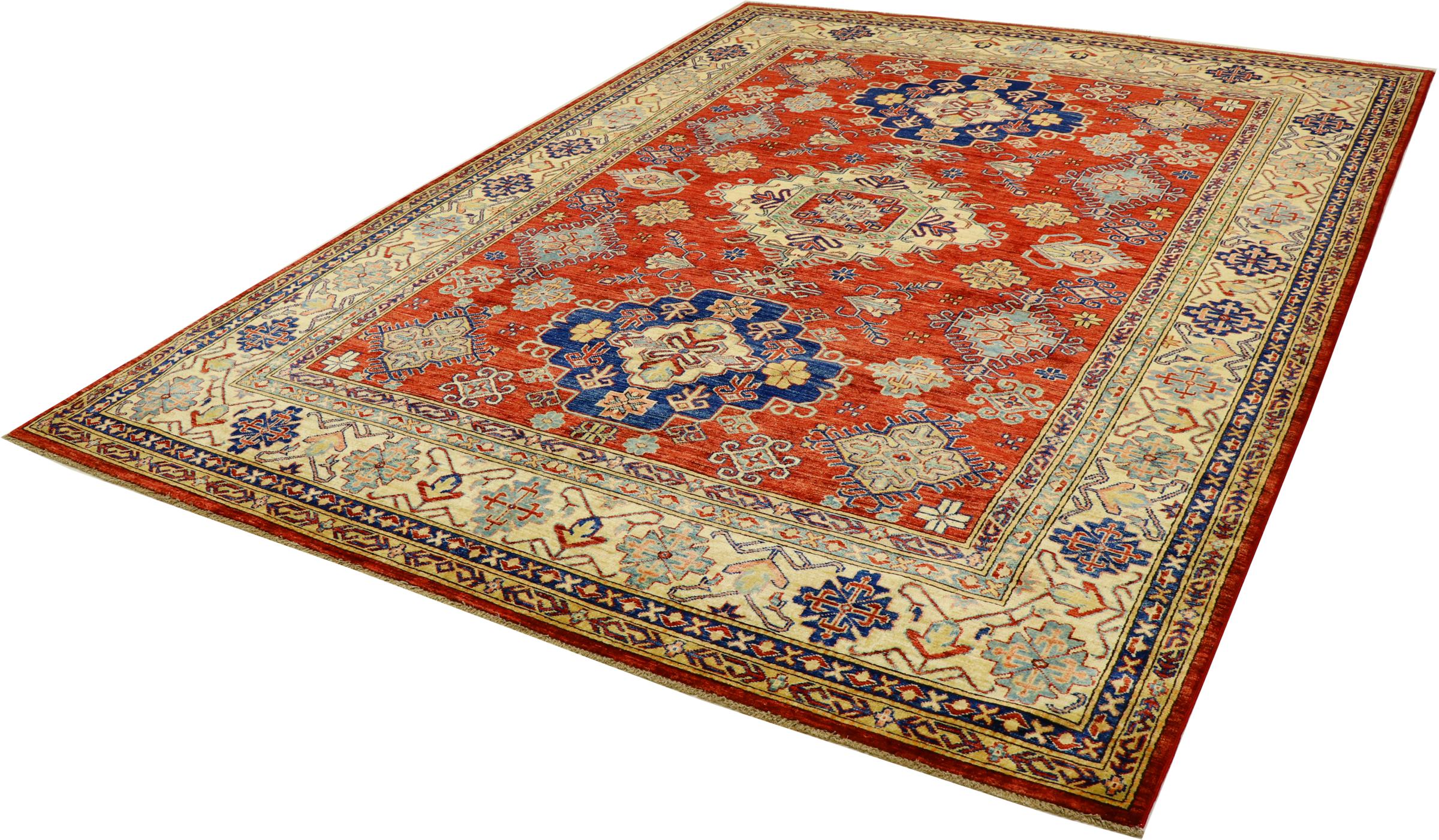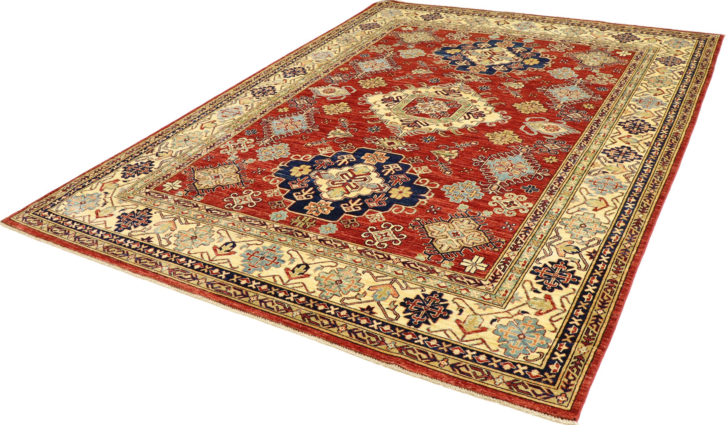 Kazak-vloerkleden zijn duurzame, levendige wollen vloerkleden die bekend staan om hun unieke geometrische patronen, uitgebalanceerde kleuren en uitzonderlijk vakmanschap. Ze zullen een boeiende en cultureel rijke sfeer in uw ruimte creëren. Oorspronkelijk afkomstig uit de Kaukasus en een van de oudste soorten tapijten, worden ze nu voornamelijk gemaakt door Kazachen in Afghanistan en Pakistan. Een antiek Kazachs tapijt kan zeer waardevol zijn voor verzamelaars.