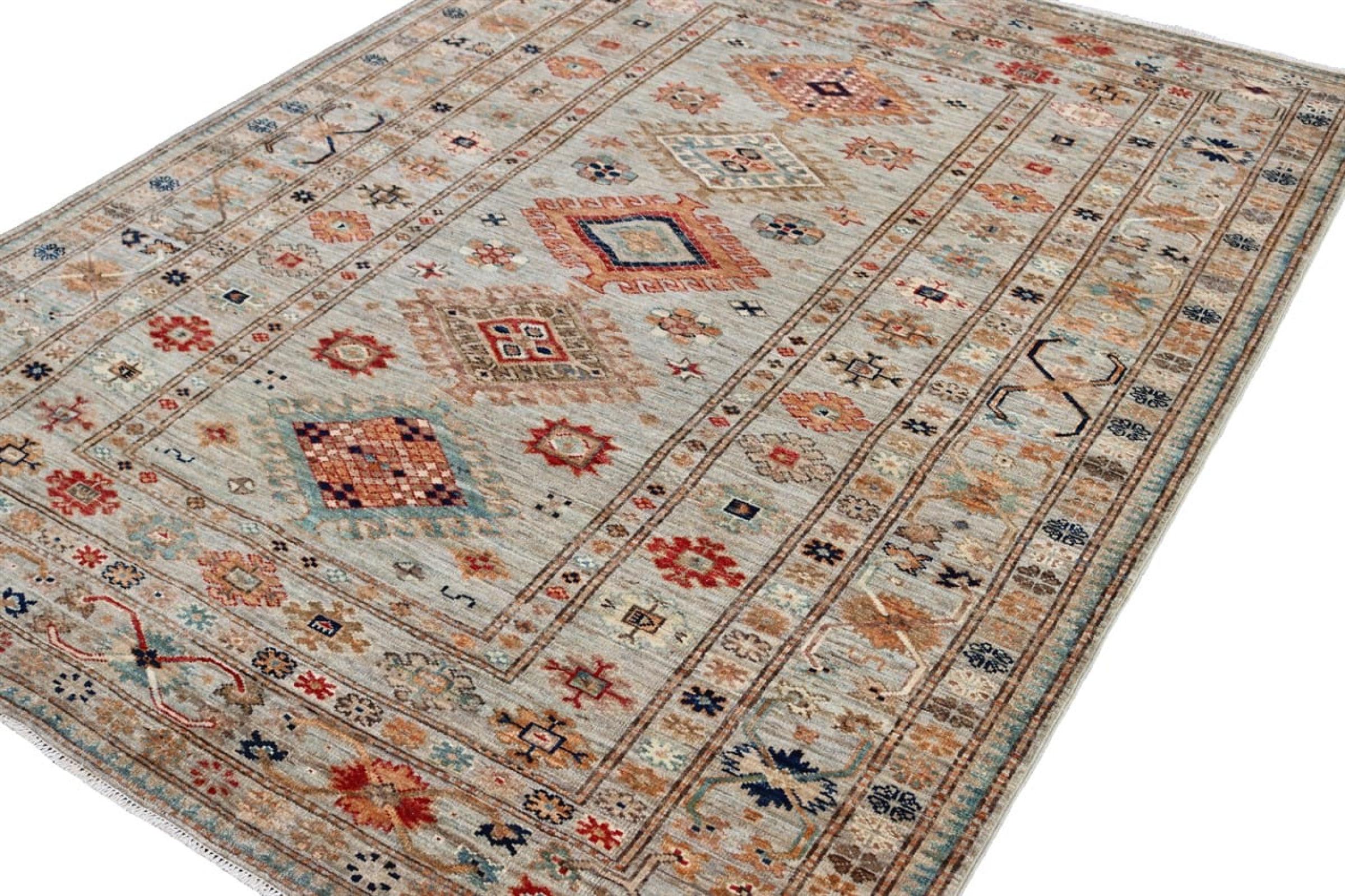 Kazak-vloerkleden zijn duurzame, levendige wollen vloerkleden die bekend staan om hun unieke geometrische patronen, uitgebalanceerde kleuren en uitzonderlijk vakmanschap. Ze zullen een boeiende en cultureel rijke sfeer in uw ruimte creëren. Oorspronkelijk afkomstig uit de Kaukasus en een van de oudste soorten tapijten, worden ze nu voornamelijk gemaakt door Kazachen in Afghanistan en Pakistan. Een antiek Kazachs tapijt kan zeer waardevol zijn voor verzamelaars.