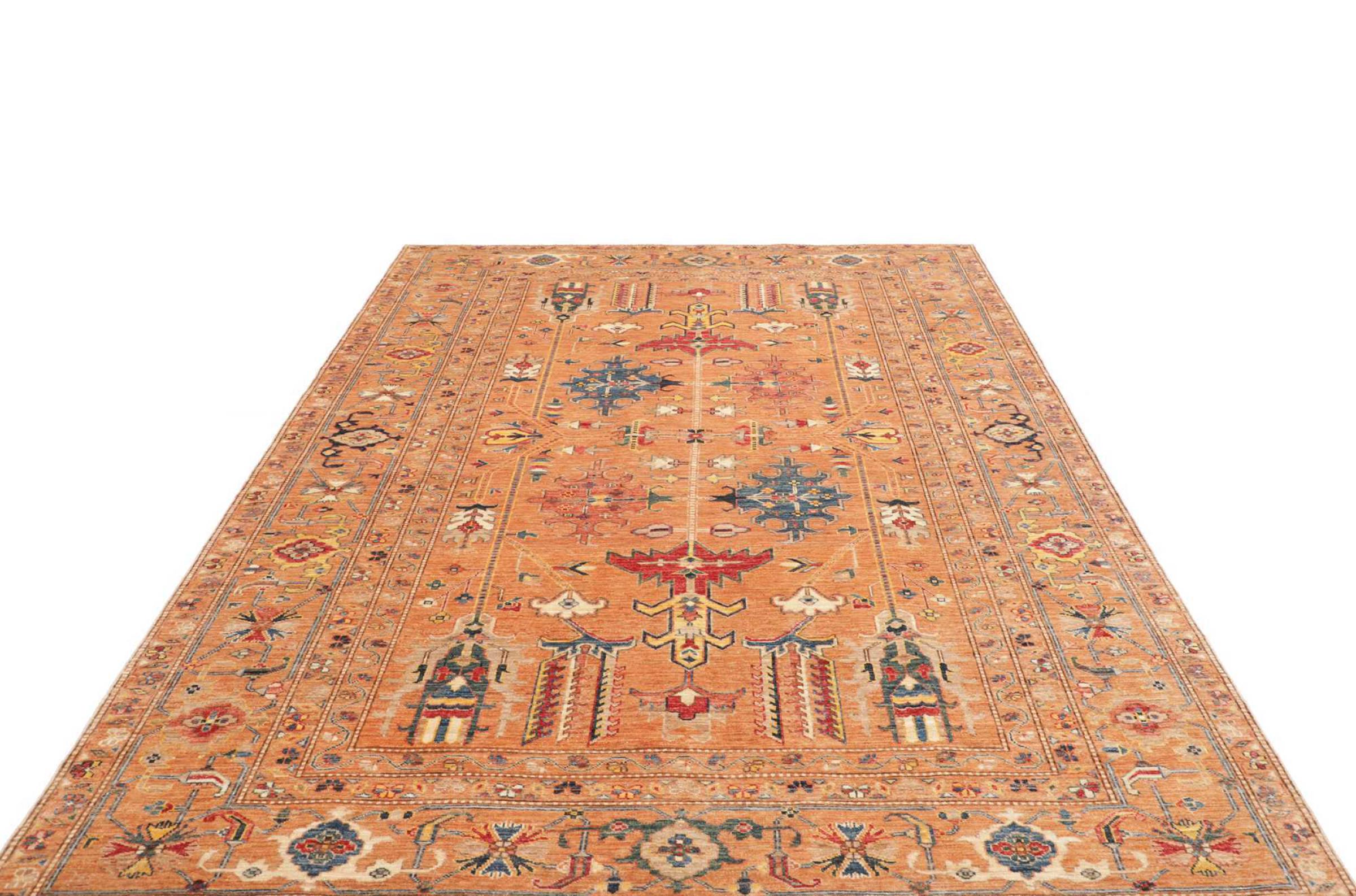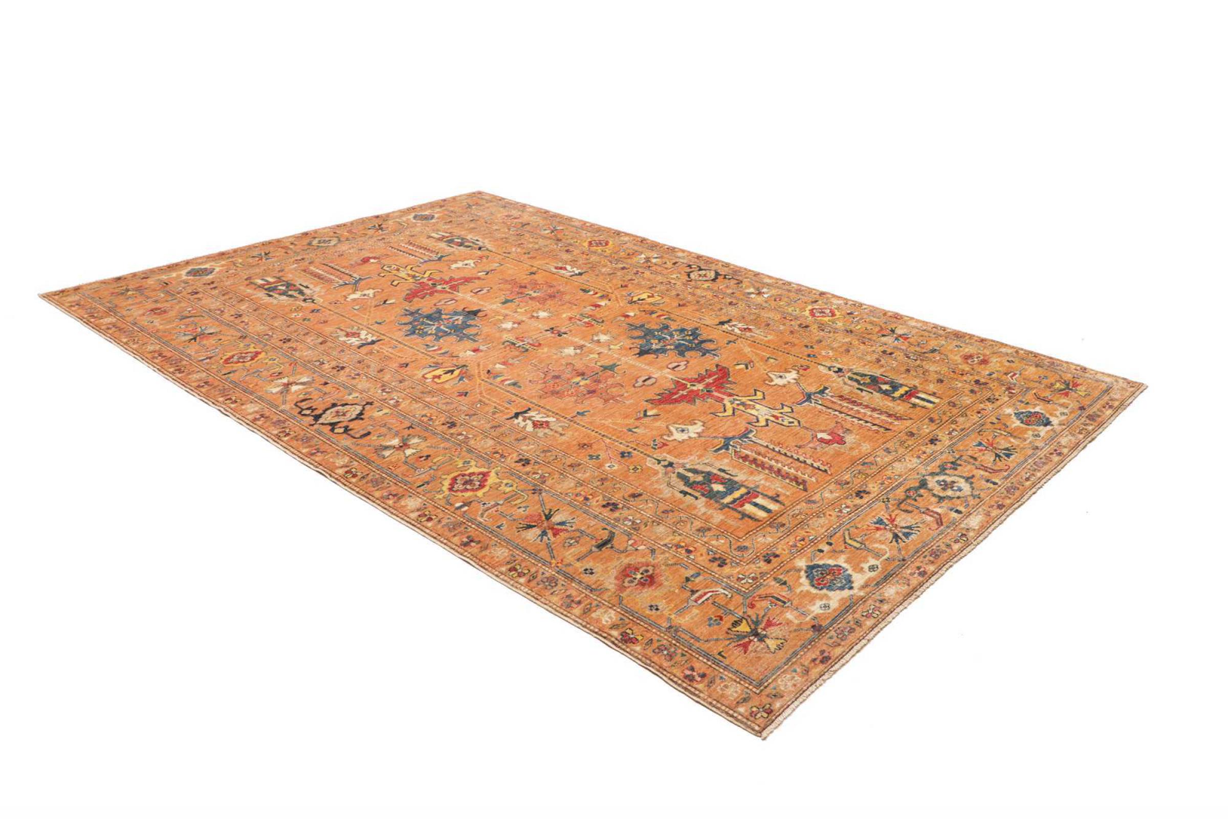 Tapijt ID: 306415001018906 Grootte: 306x210 cm Dikte: ap. 5 mm Knoopdichtheid: 128 000 - 160 000 / m² Verwerking: Handgeknoopte Pool: Hand gesponnen wol Schering: Katoen Oorsprong: Pakistan Leeftijd: Nieuw Gewicht: ap. 16 kg Op voorraad: Uniek - Nog maar 1 op voorraad
