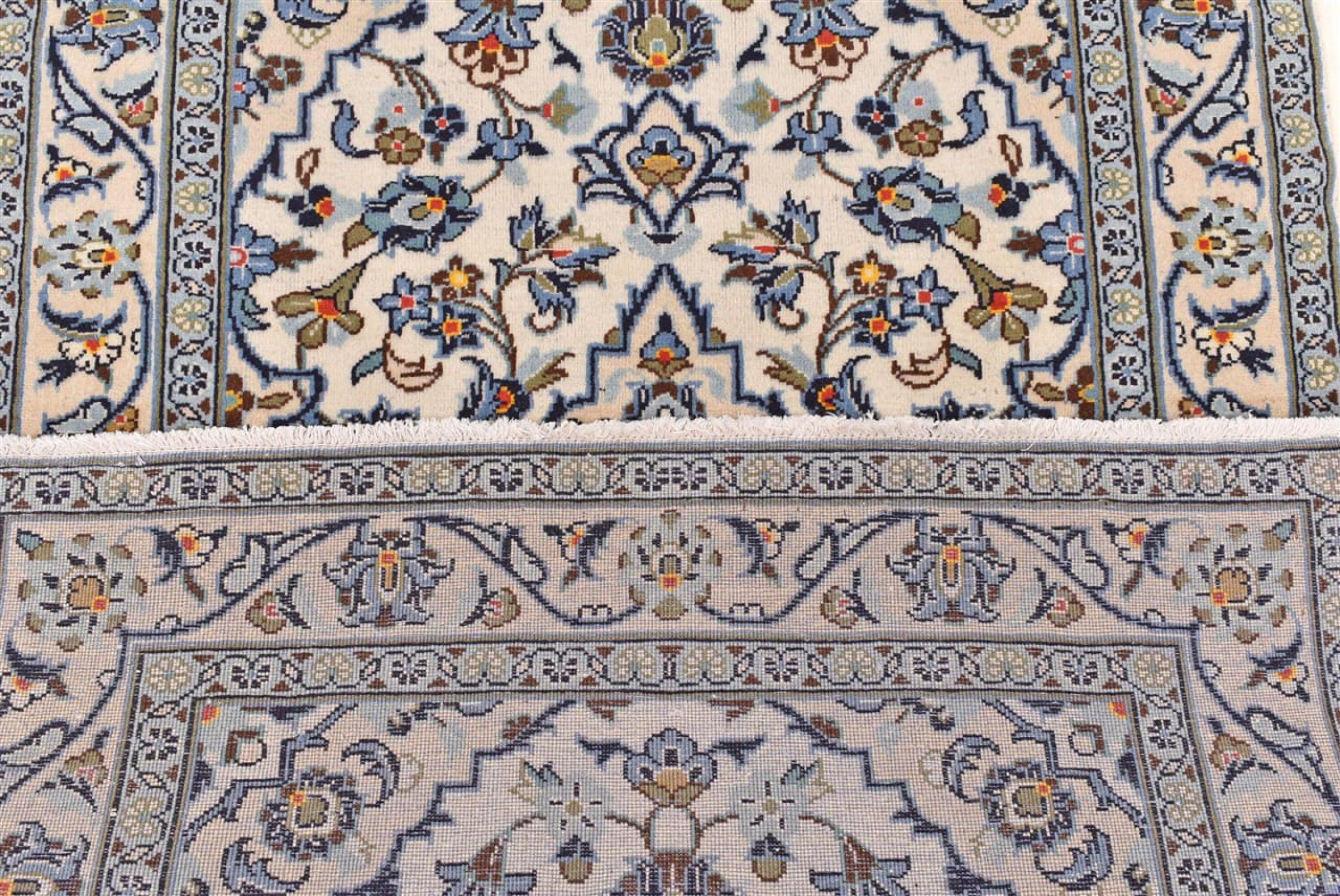 Dit tapijt van Kashan (Keshan) wordt gehouden in zijn zeer traditionele en typisch Perzische ontwerp met prachtige ornamenten. Kashan-tapijten zijn zeer populair vanwege hun uitzonderlijk elegante ontwerp. Deze tapijten zijn afkomstig uit Kashan, een stad aan de eeuwenoude Zijderoute. Dit tapijt is met de hand geknoopt van hoogwaardige schapenwol en wordt een uniek hoogtepunt in je huis.