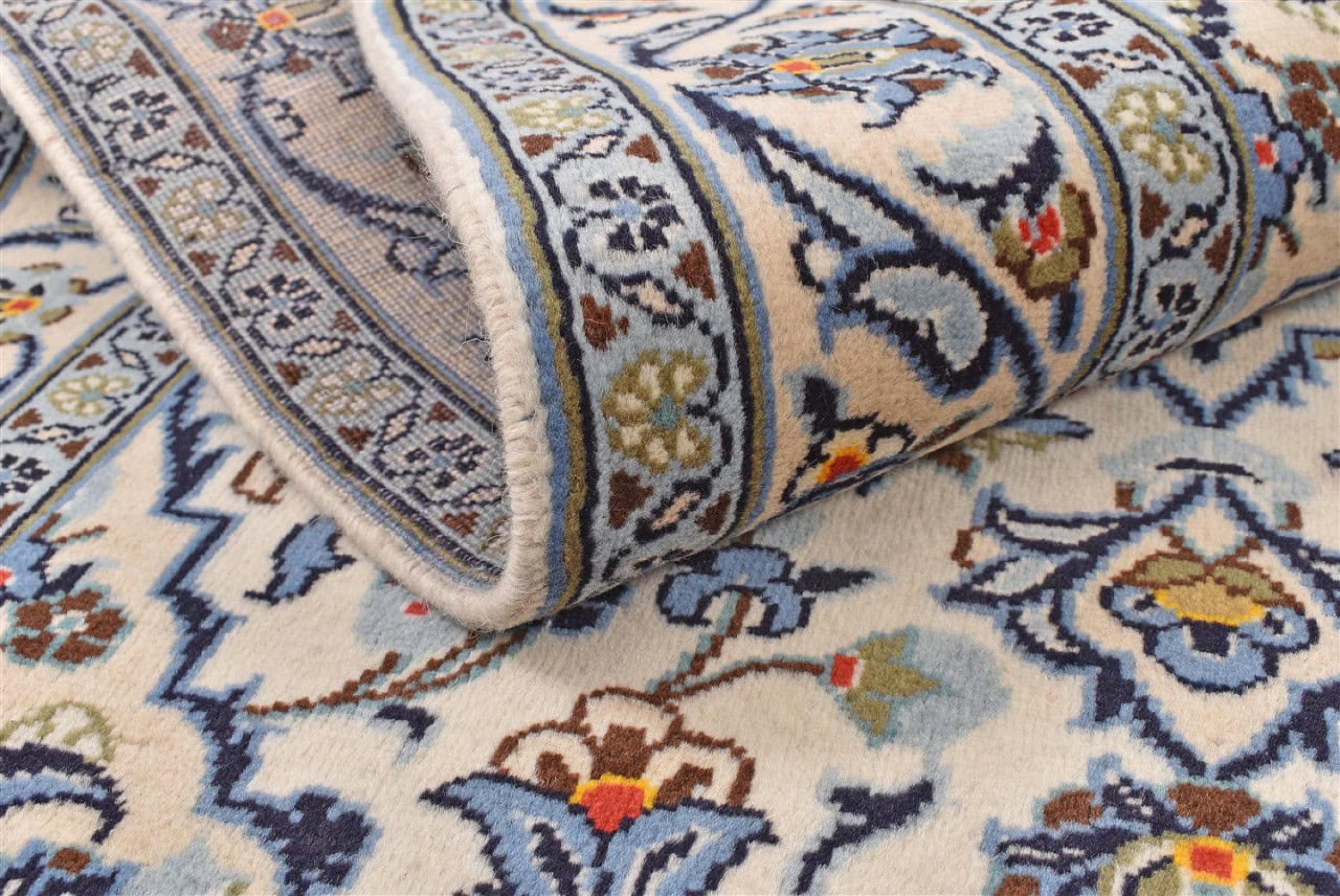 Dit tapijt is gemaakt van handgesponnen schapenwol van de hoogste kwaliteit. Vooral in Iran (voormalig Perzië), Afghanistan en Pakistan wordt de wol nog met de hand gesponnen voordat het eigenlijke knopen van het tapijt begint. Wol heeft zich door de eeuwen heen bewezen als een natuurlijk en extreem slijtvast materiaal. Het heeft onder andere vuilafstotende en warmte-isolerende eigenschappen. Tegelijkertijd is wol onvergelijkbaar zacht en heeft het een natuurlijke glans.