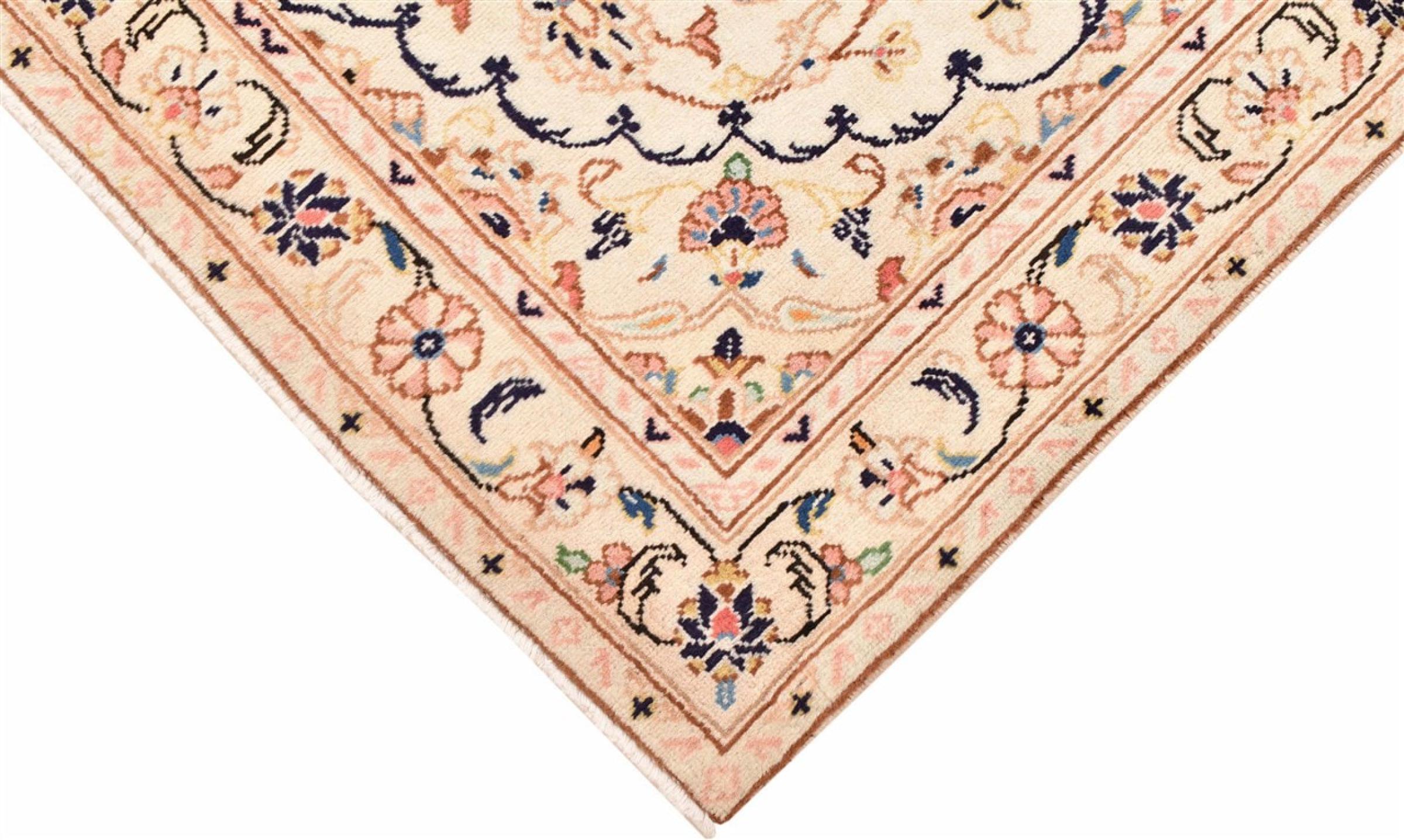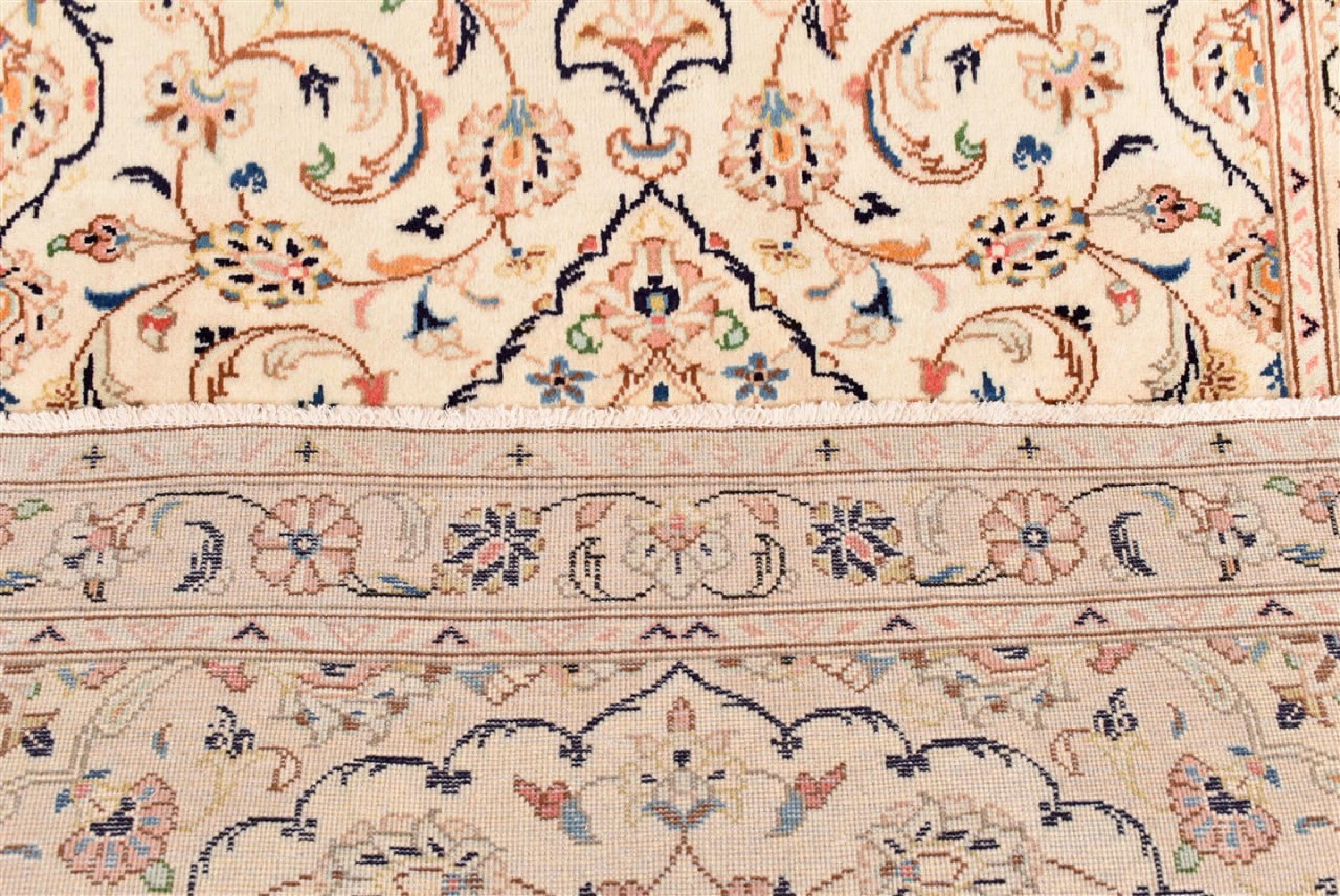 Dit tapijt van Kashan (Keshan) wordt gehouden in zijn zeer traditionele en typisch Perzische ontwerp met prachtige ornamenten. Kashan-tapijten zijn zeer populair vanwege hun uitzonderlijk elegante ontwerp. Deze tapijten zijn afkomstig uit Kashan, een stad aan de eeuwenoude Zijderoute. Dit tapijt is met de hand geknoopt van hoogwaardige schapenwol en wordt een uniek hoogtepunt in je huis.