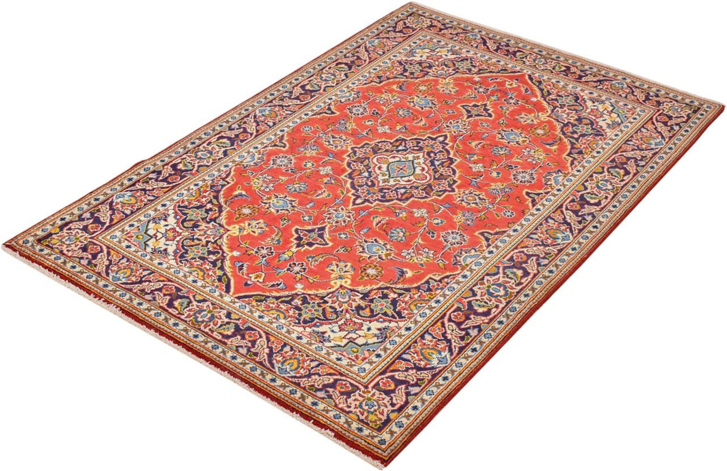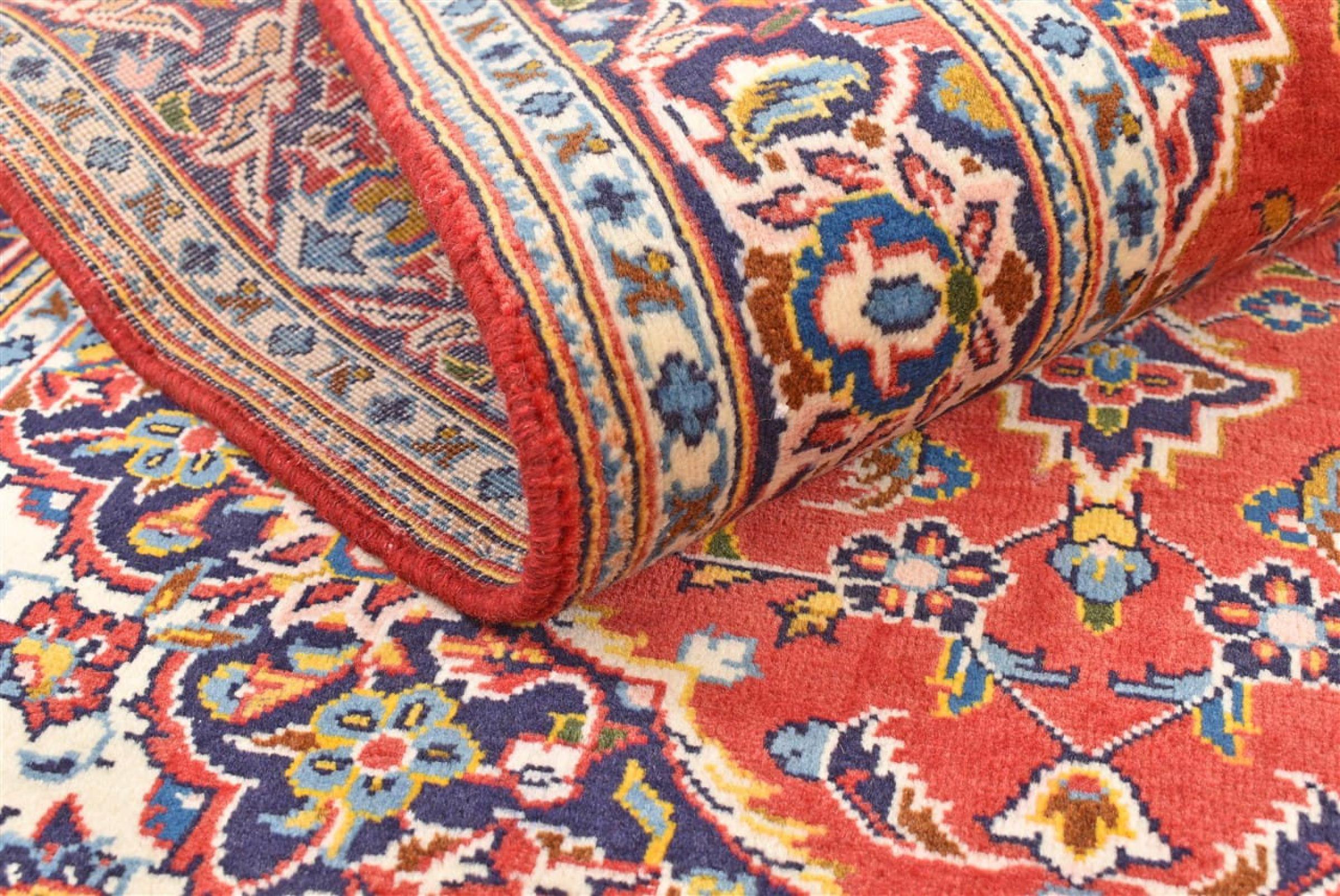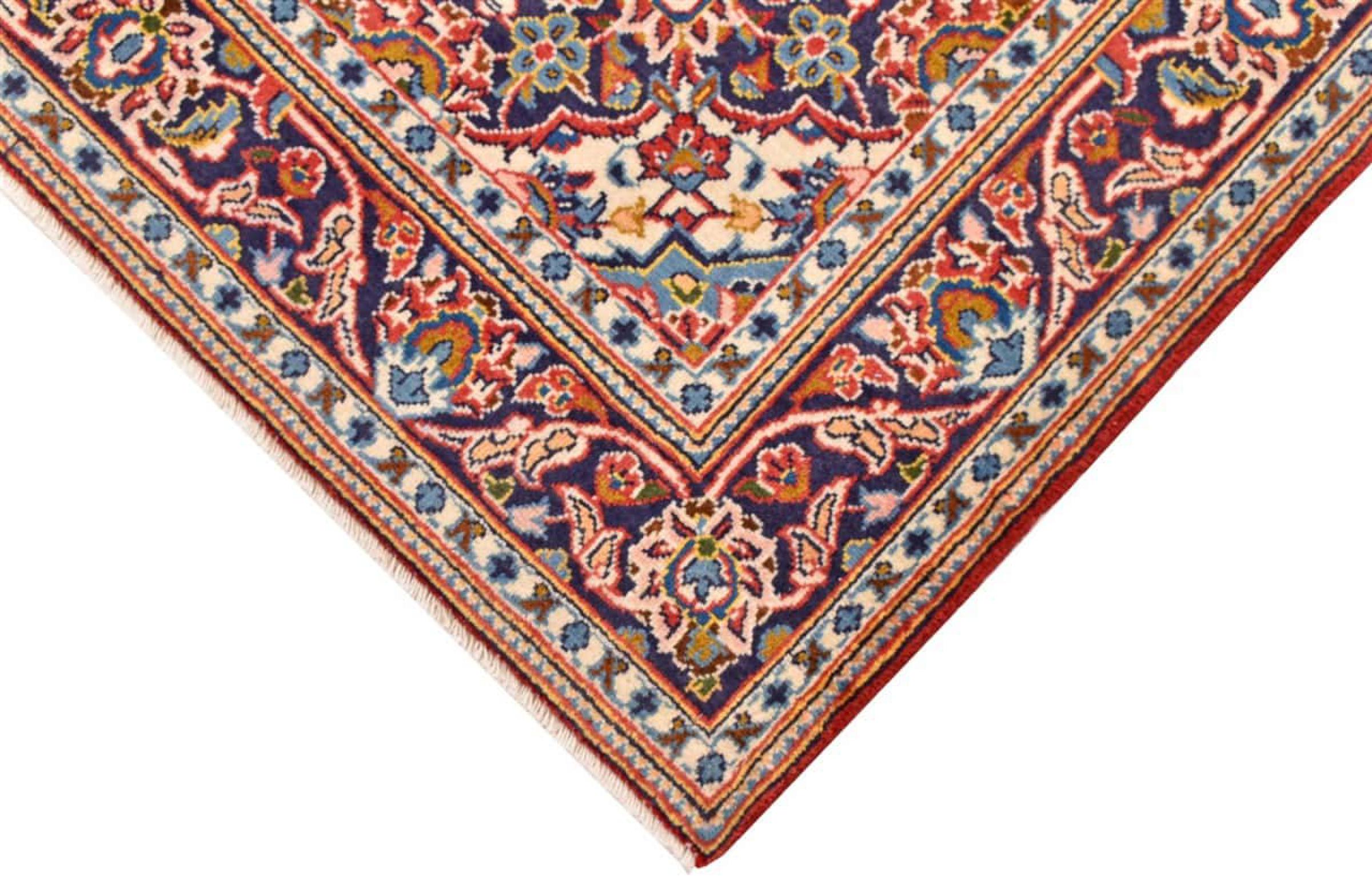 Dit tapijt van Kashan (Keshan) wordt gehouden in zijn zeer traditionele en typisch Perzische ontwerp met prachtige ornamenten. Kashan-tapijten zijn zeer populair vanwege hun uitzonderlijk elegante ontwerp. Deze tapijten zijn afkomstig uit Kashan, een stad aan de eeuwenoude Zijderoute. Dit tapijt is met de hand geknoopt van hoogwaardige schapenwol en wordt een uniek hoogtepunt in je huis.