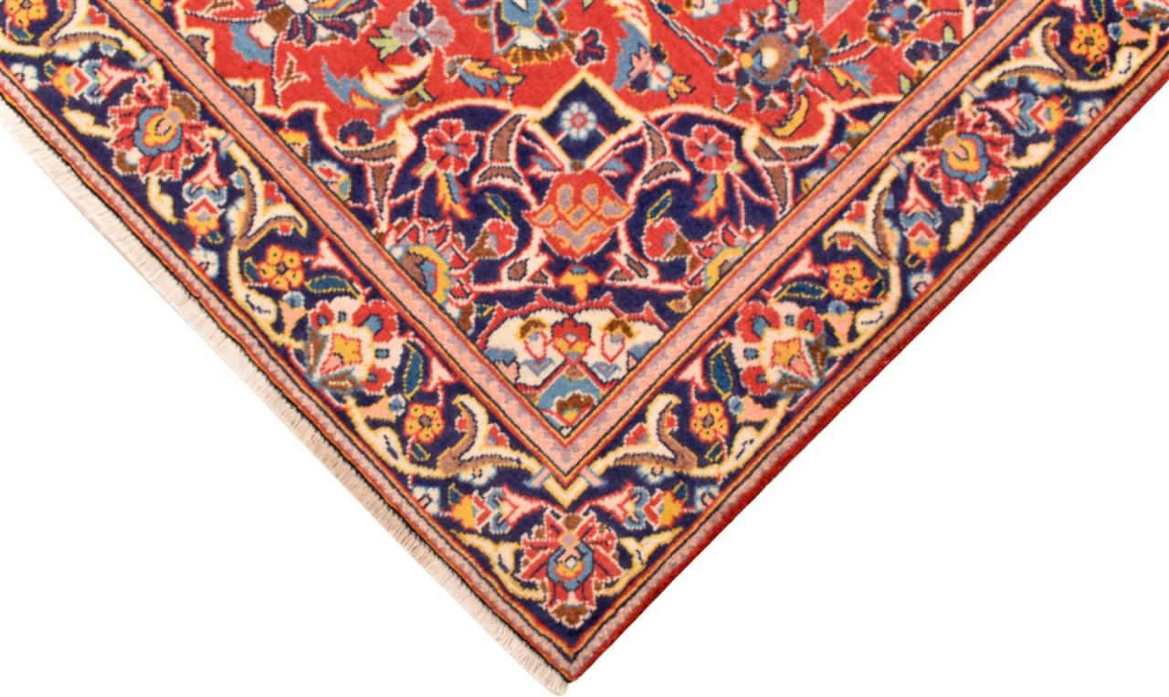 Dit tapijt van Kashan (Keshan) wordt gehouden in zijn zeer traditionele en typisch Perzische ontwerp met prachtige ornamenten. Kashan-tapijten zijn zeer populair vanwege hun uitzonderlijk elegante ontwerp. Deze tapijten zijn afkomstig uit Kashan, een stad aan de eeuwenoude Zijderoute. Dit tapijt is met de hand geknoopt van hoogwaardige schapenwol en wordt een uniek hoogtepunt in je huis.