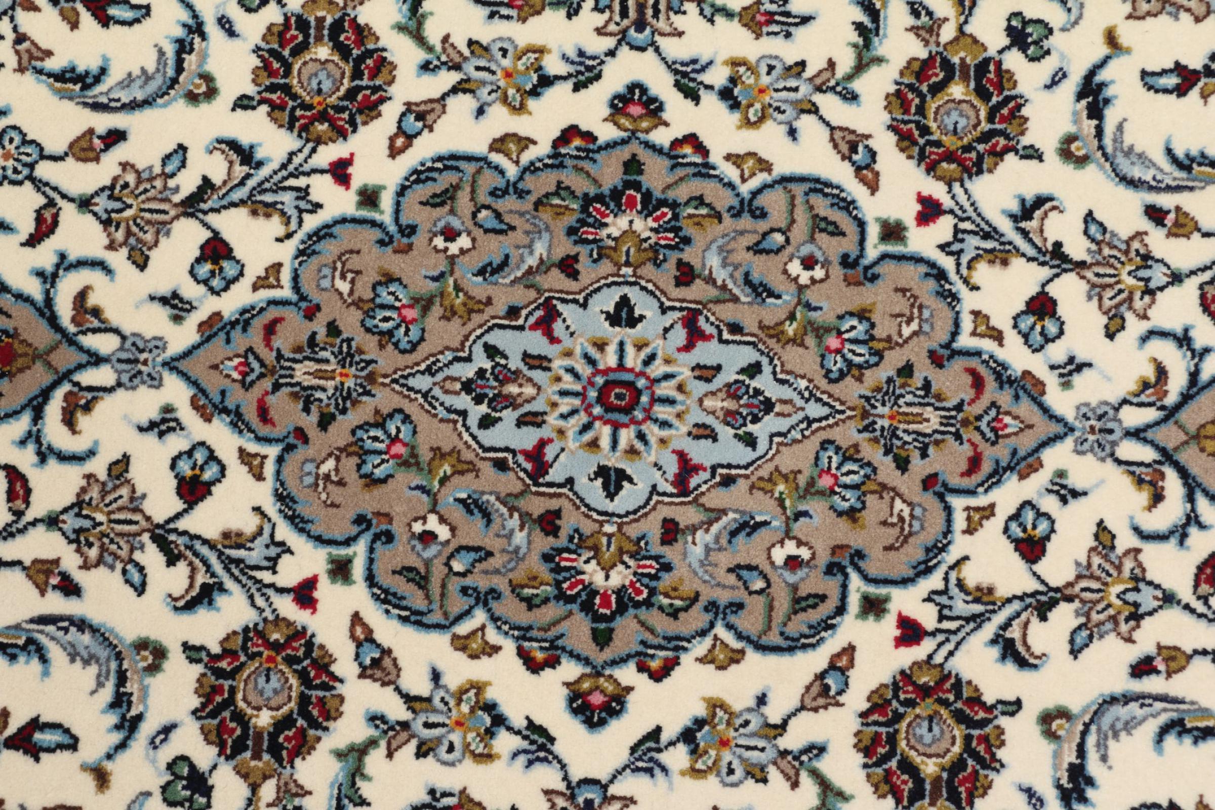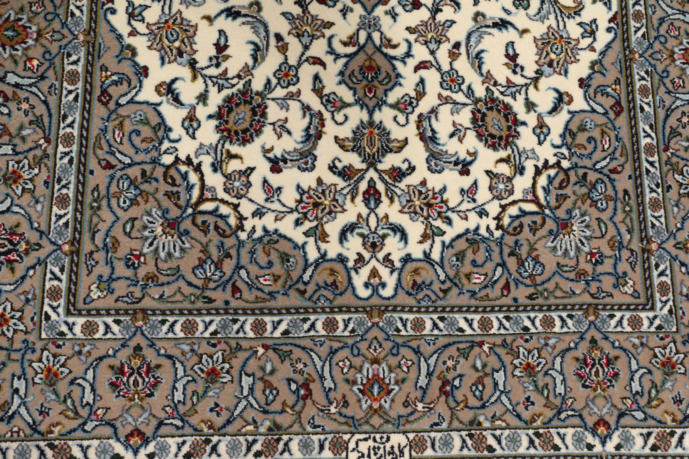 Dit tapijt van Kashan (Keshan) wordt gehouden in zijn zeer traditionele en typisch Perzische ontwerp met prachtige ornamenten. Kashan-tapijten zijn zeer populair vanwege hun uitzonderlijk elegante ontwerp. Deze tapijten zijn afkomstig uit Kashan, een stad aan de eeuwenoude Zijderoute. Dit tapijt is met de hand geknoopt van hoogwaardige schapenwol en wordt een uniek hoogtepunt in je huis.