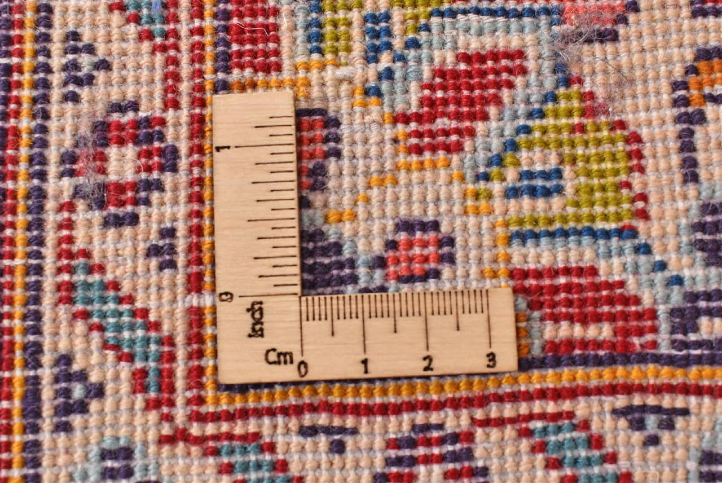 Dit tapijt is gemaakt van handgesponnen schapenwol van de hoogste kwaliteit. Vooral in Iran (voormalig Perzië), Afghanistan en Pakistan wordt de wol nog met de hand gesponnen voordat het eigenlijke knopen van het tapijt begint. Wol heeft zich door de eeuwen heen bewezen als een natuurlijk en extreem slijtvast materiaal. Het heeft onder andere vuilafstotende en warmte-isolerende eigenschappen. Tegelijkertijd is wol onvergelijkbaar zacht en heeft het een natuurlijke glans.