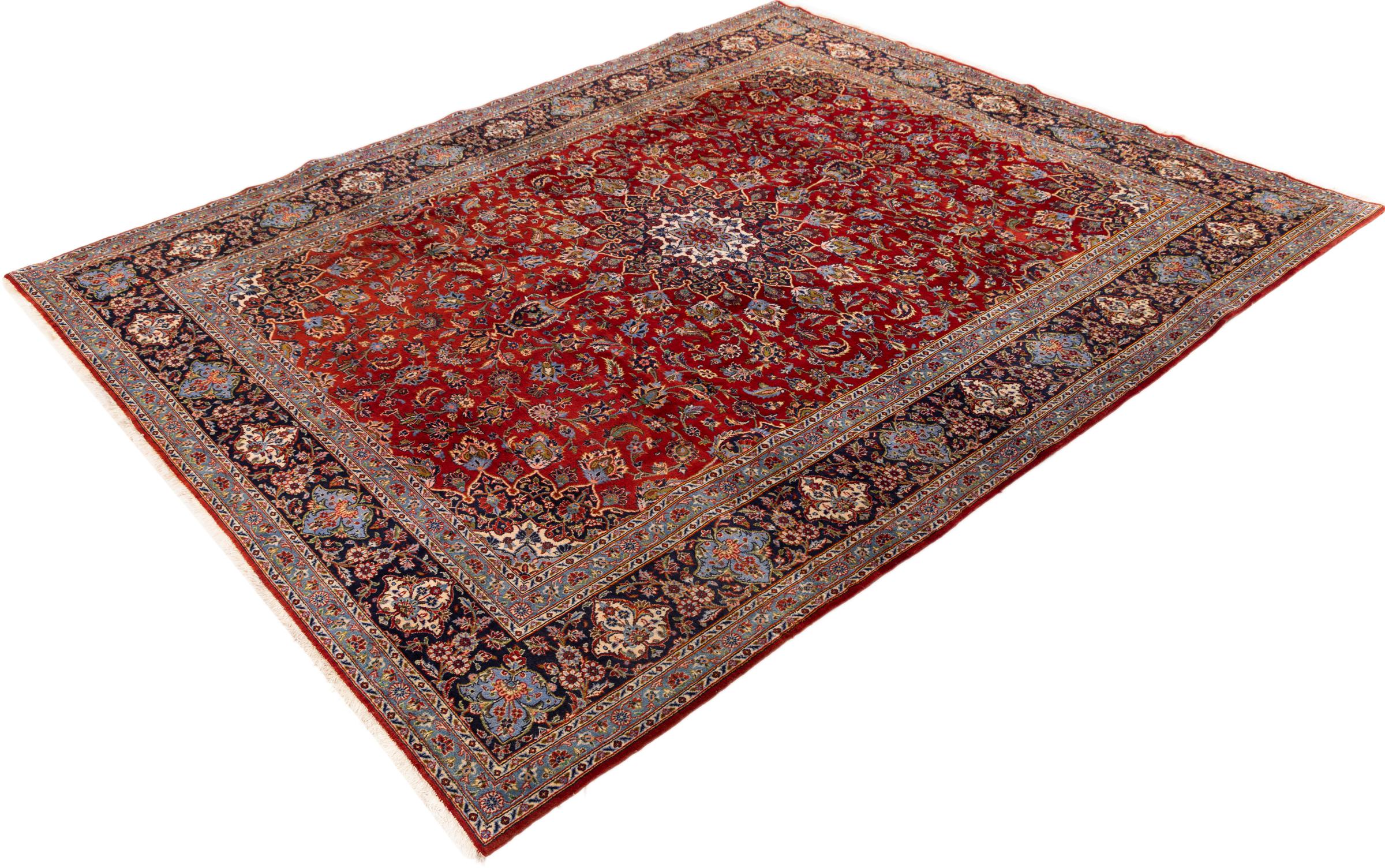 Dit tapijt van Kashan (Keshan) wordt gehouden in zijn zeer traditionele en typisch Perzische ontwerp met prachtige ornamenten. Kashan-tapijten zijn zeer populair vanwege hun uitzonderlijk elegante ontwerp. Deze tapijten zijn afkomstig uit Kashan, een stad aan de eeuwenoude Zijderoute. Dit tapijt is met de hand geknoopt van hoogwaardige schapenwol en wordt een uniek hoogtepunt in je huis.