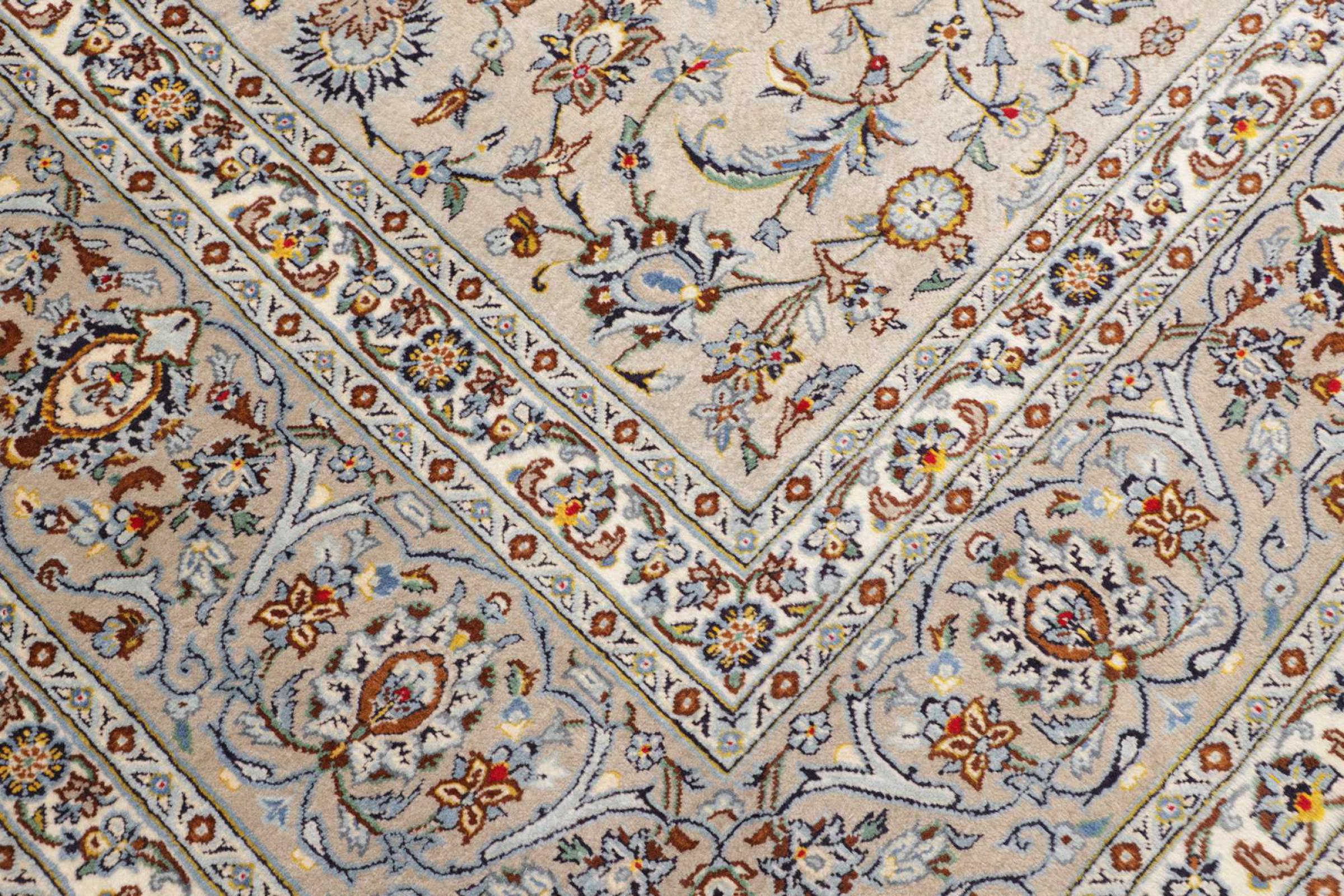 Dit tapijt van Kashan (Keshan) wordt gehouden in zijn zeer traditionele en typisch Perzische ontwerp met prachtige ornamenten. Kashan-tapijten zijn zeer populair vanwege hun uitzonderlijk elegante ontwerp. Deze tapijten zijn afkomstig uit Kashan, een stad aan de eeuwenoude Zijderoute. Dit tapijt is met de hand geknoopt van hoogwaardige schapenwol en wordt een uniek hoogtepunt in je huis.
