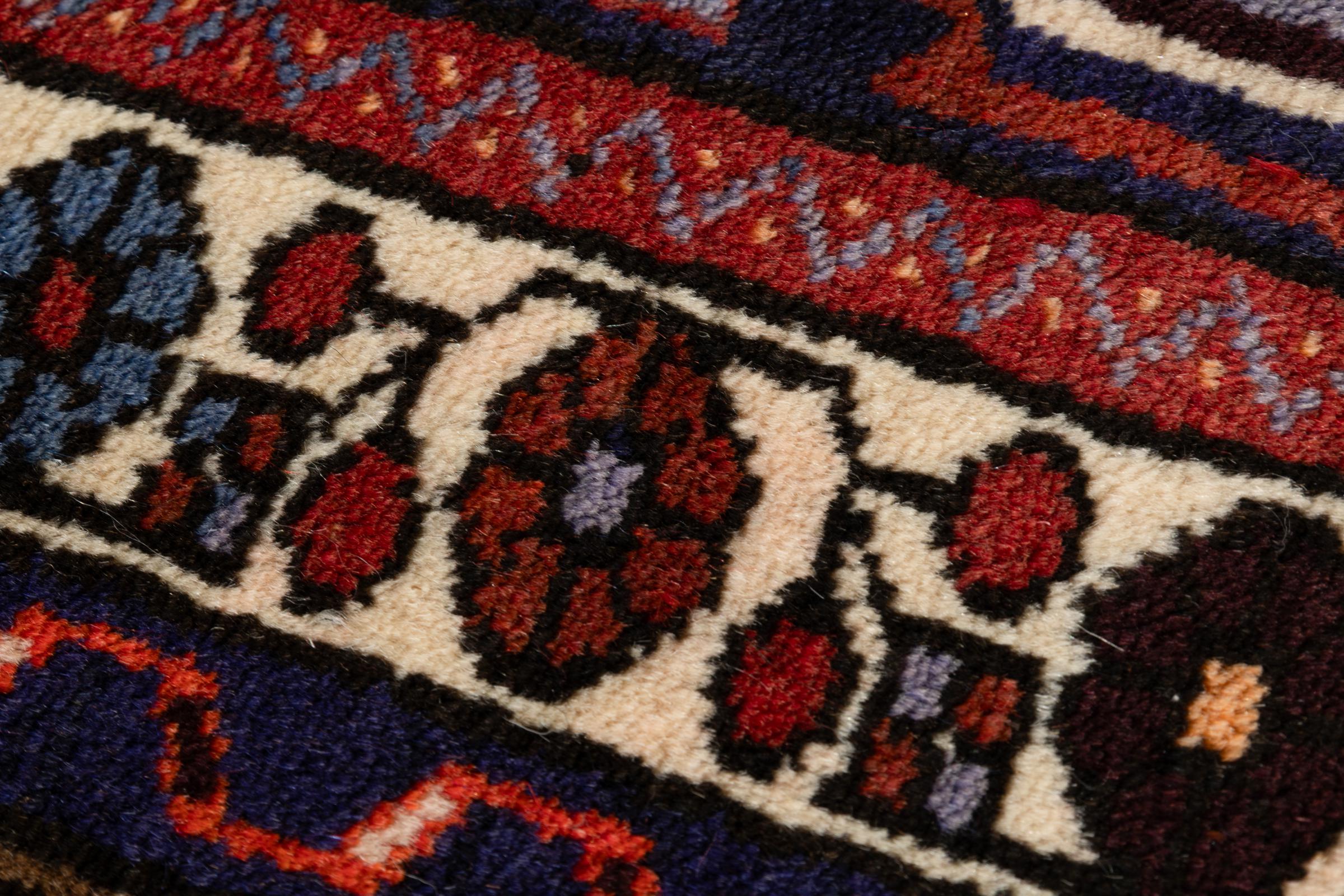 Dit tapijt behoort tot de dorps- en nomadentapijten uit Iran, het vroegere Perzië. Dit type tapijt wordt met de hand geknoopt in kleinere steden en dorpen in de oude traditie. Zelfs nomaden knopen nog steeds Perzische tapijten in de open lucht. De tapijten worden geknoopt zonder patroon en volledig vanaf de kop. Ze worden gekenmerkt door klassieke ornamenten, die in rechte en geometrische patronen zijn gerangschikt. Dankzij hun cultureel-traditionele oorsprong hebben deze tapijten een uniek karakter dat het oude Perzië belichaamt.