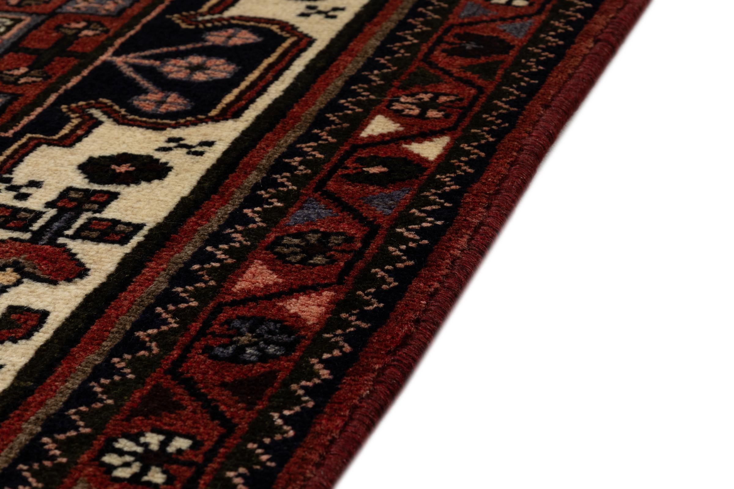 Dit tapijt behoort tot de dorps- en nomadentapijten uit Iran, het vroegere Perzië. Dit type tapijt wordt met de hand geknoopt in kleinere steden en dorpen in de oude traditie. Zelfs nomaden knopen nog steeds Perzische tapijten in de open lucht. De tapijten worden geknoopt zonder patroon en volledig vanaf de kop. Ze worden gekenmerkt door klassieke ornamenten, die in rechte en geometrische patronen zijn gerangschikt. Dankzij hun cultureel-traditionele oorsprong hebben deze tapijten een uniek karakter dat het oude Perzië belichaamt.